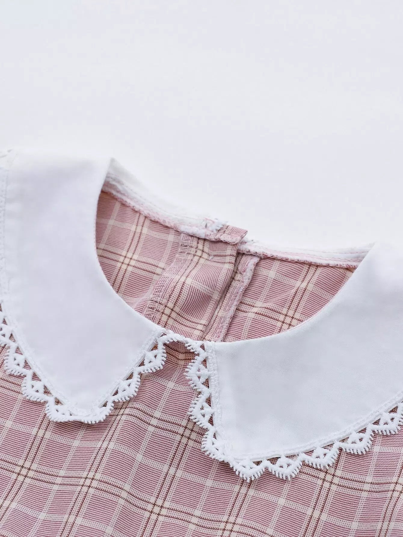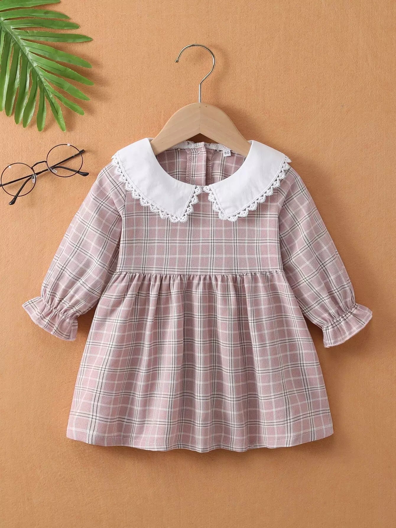 فستان بيبي منقوش بياقة بلون مغاير بياقة بيبي