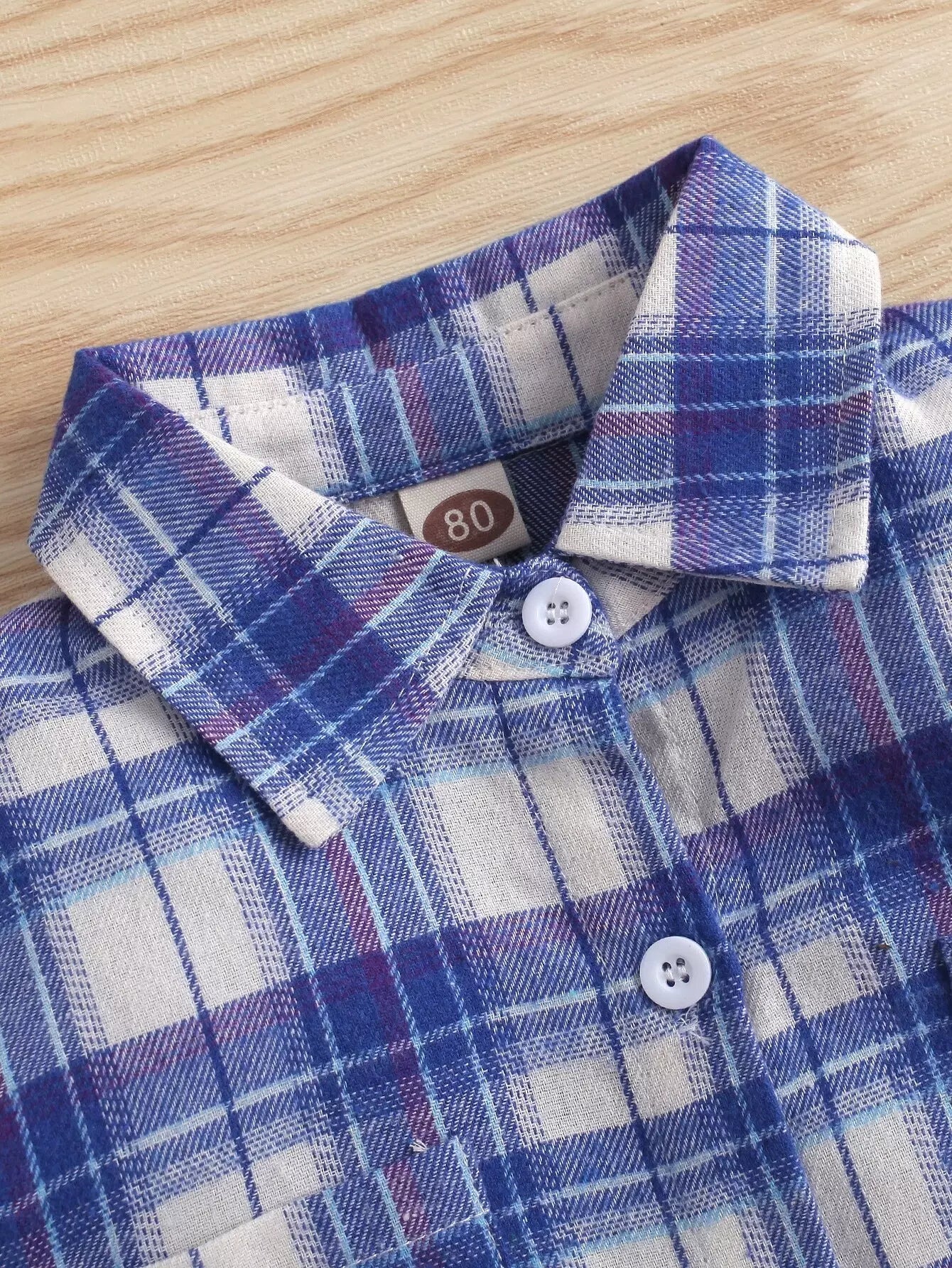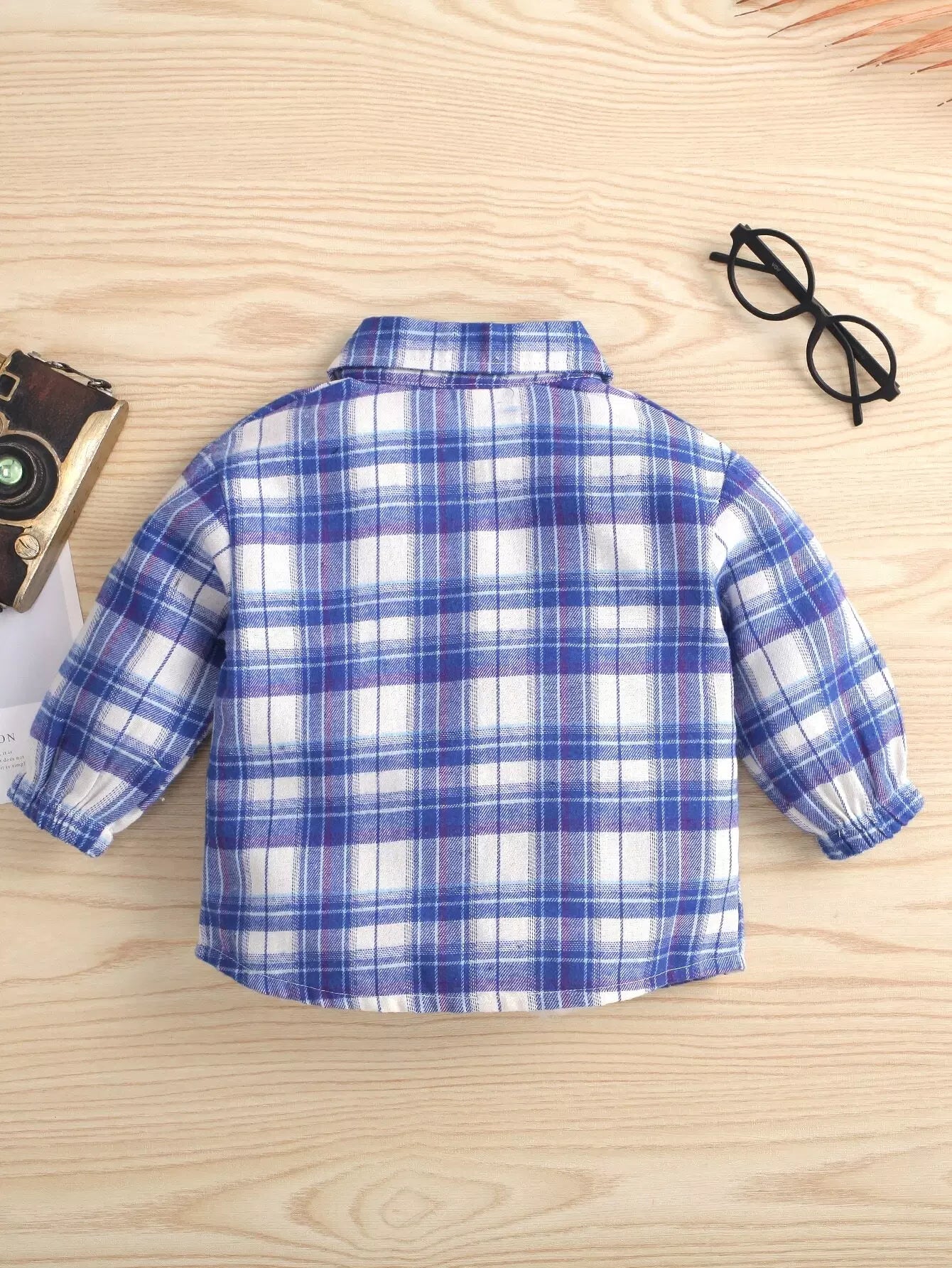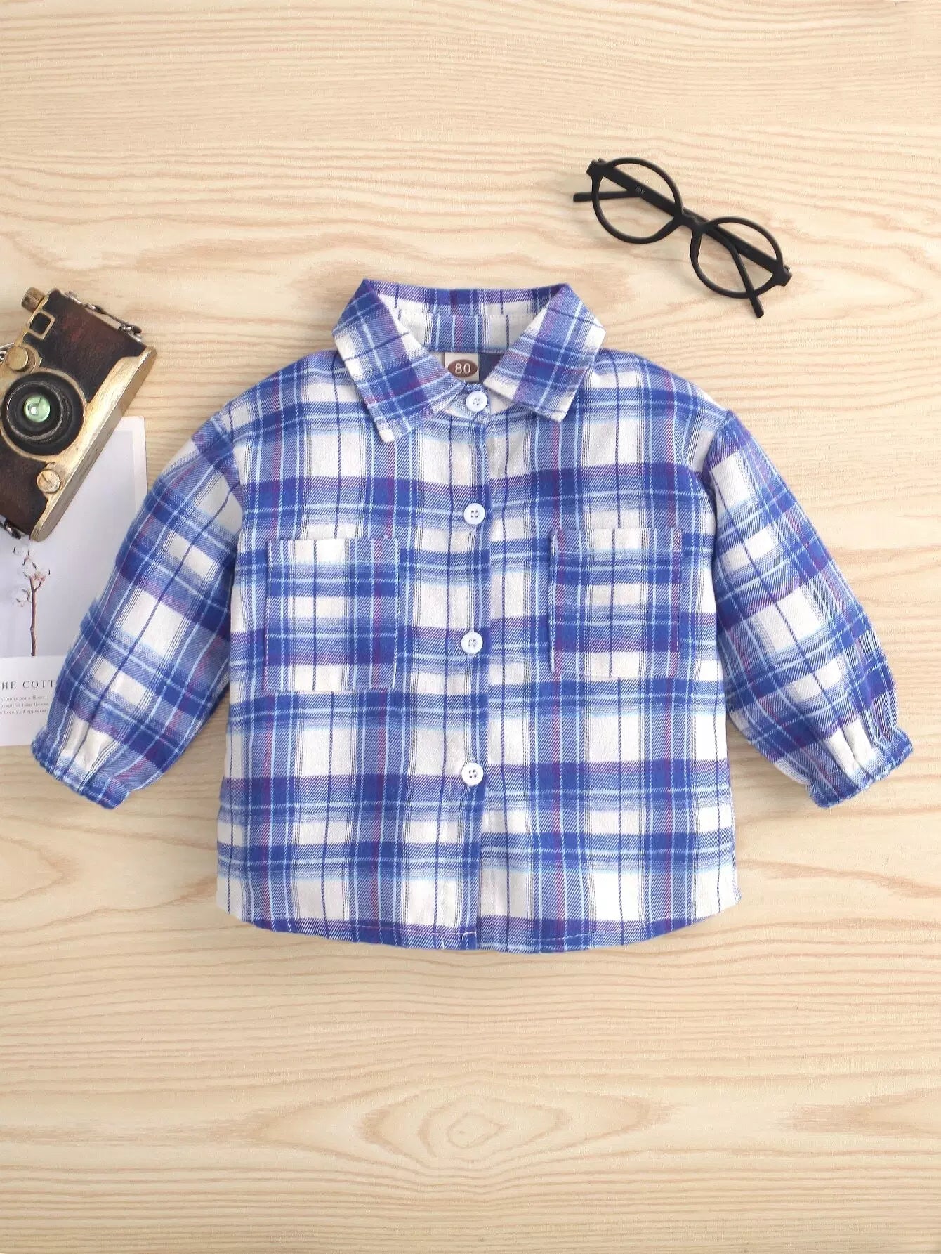معطف أطفال منقوش بجيب مزدوج منقوش