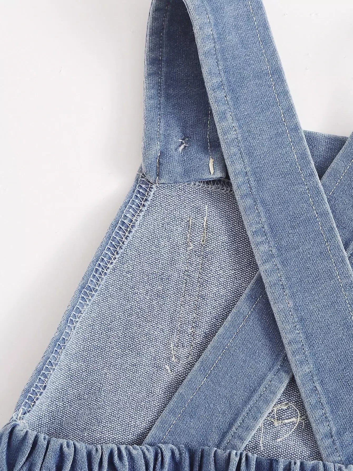 بدلة دنيم شاملة للجنسين للجنسين بقطعة قماش دنيم متقاطعة من الخلف