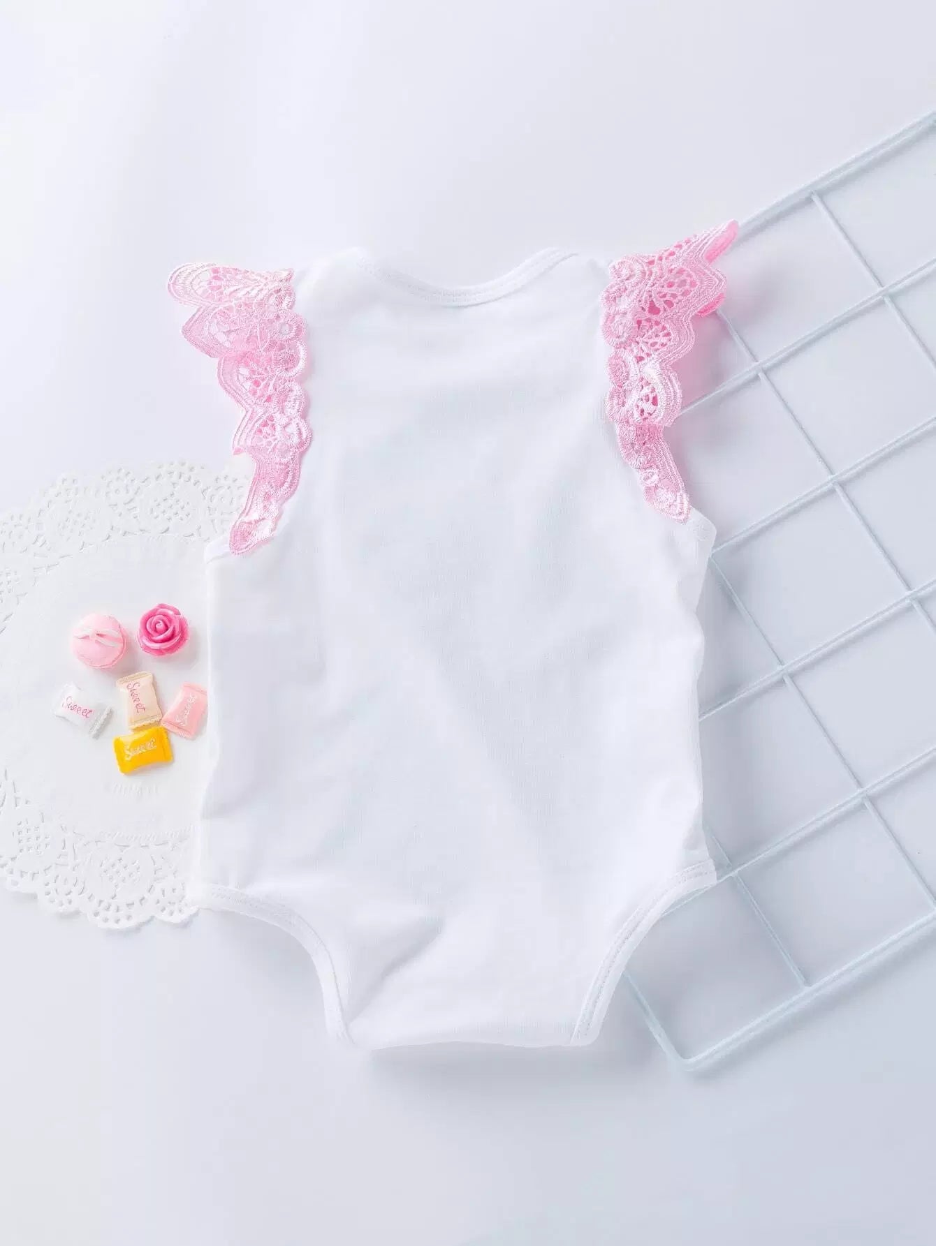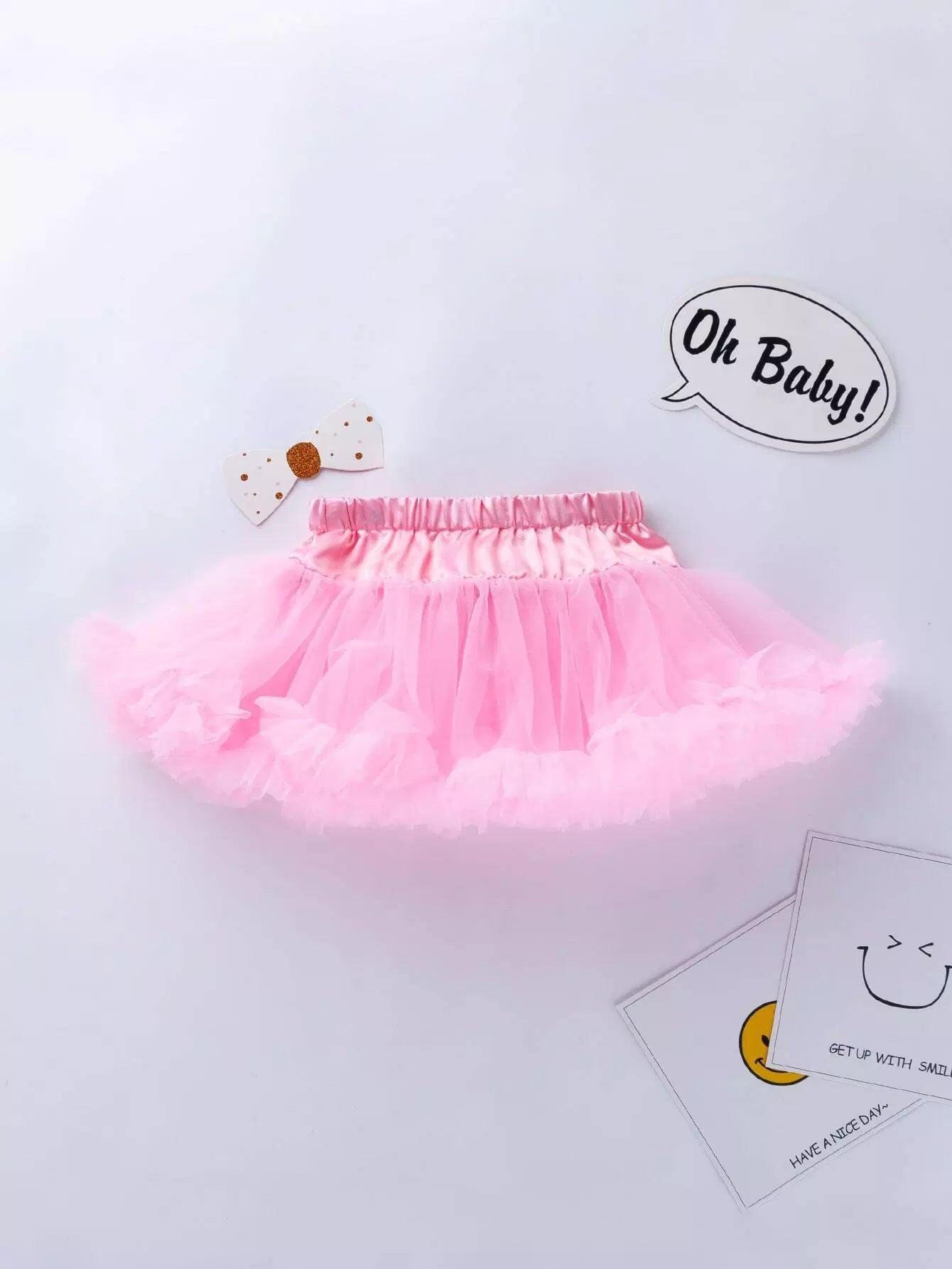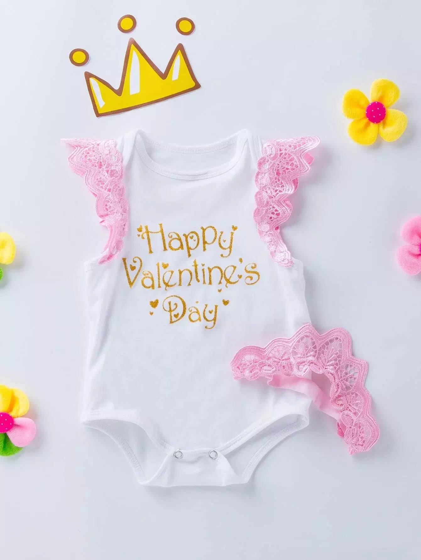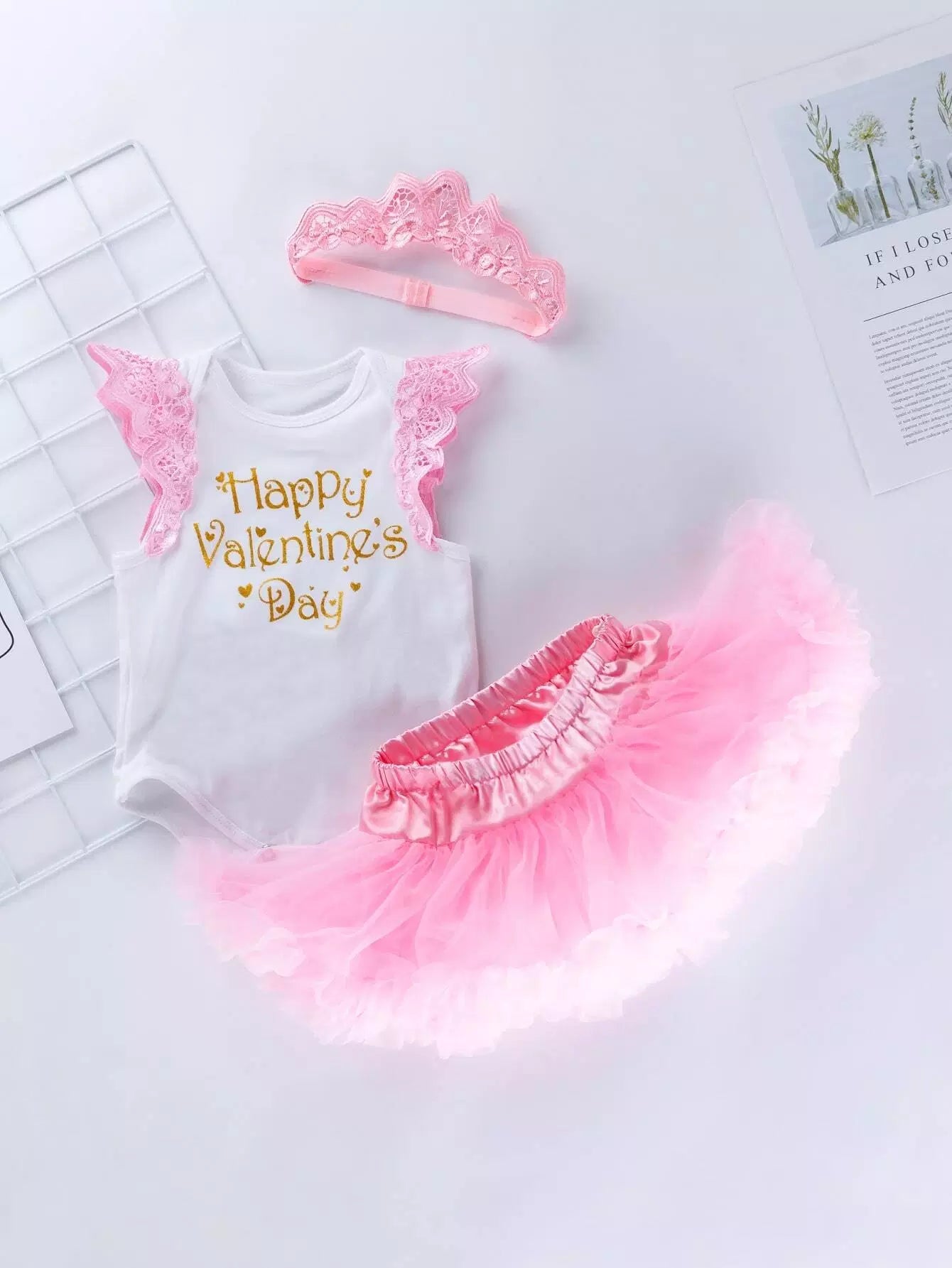 لباس قطعة واحدة للطفلة الرضيعة مزين بشعار طفلة رضيعة، وتنورة شبكية وعصابة رأس