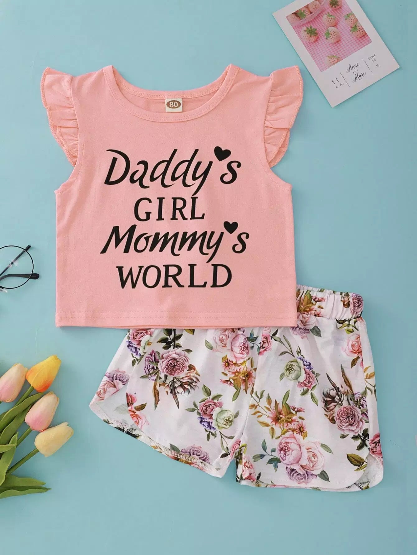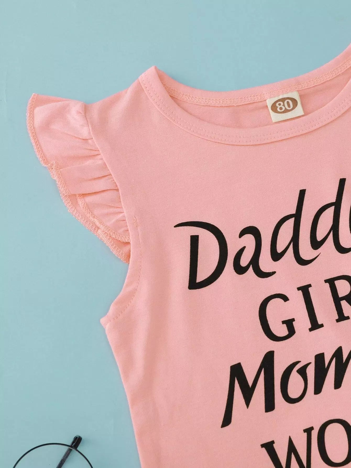 تي شيرت جرافيك بشعار طفلة رضيع مع شورت زهري