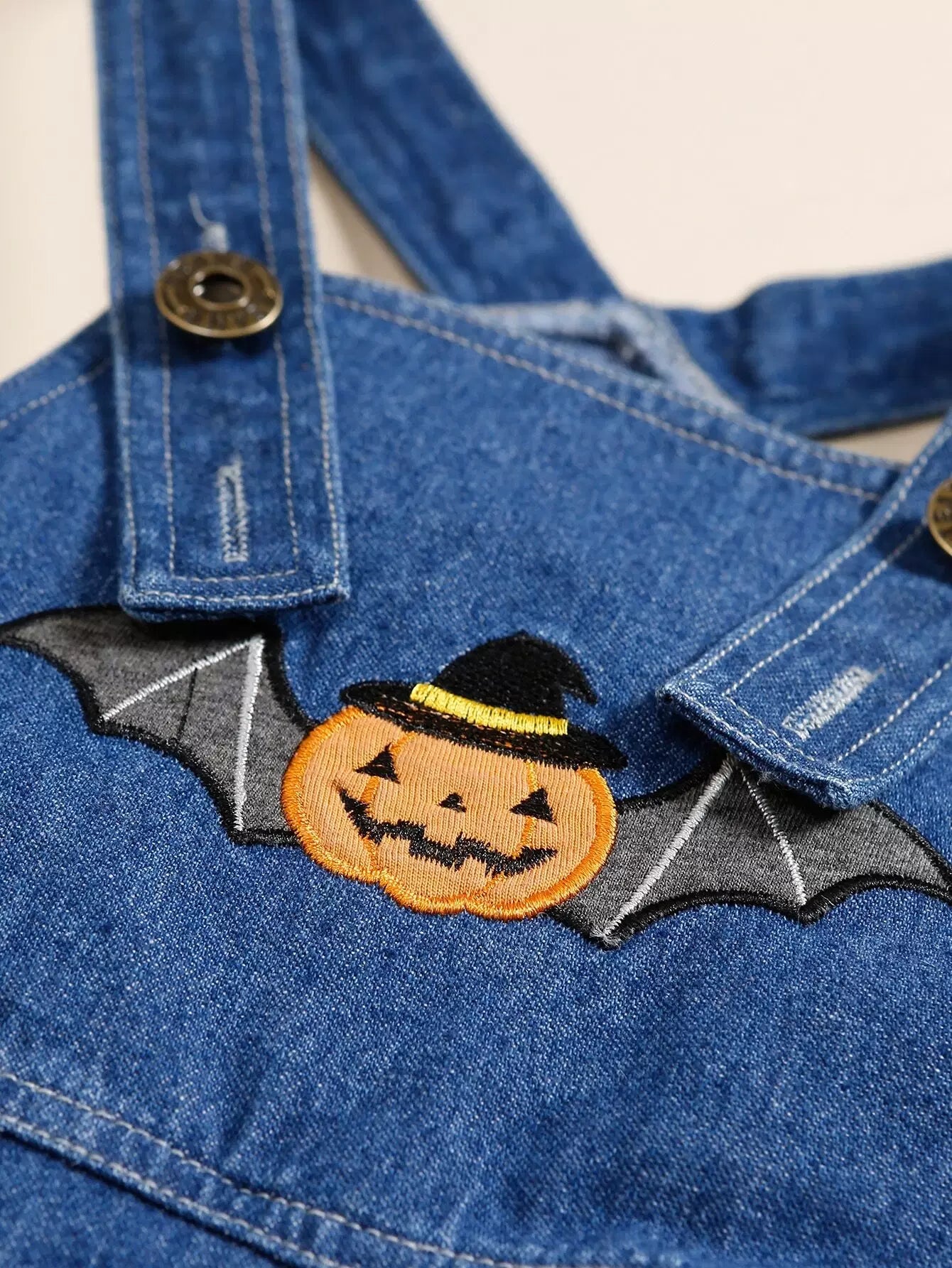 الأطفال - ملابس دينم مطرزة على شكل خفاش ويقطين للهالوين للأطفال