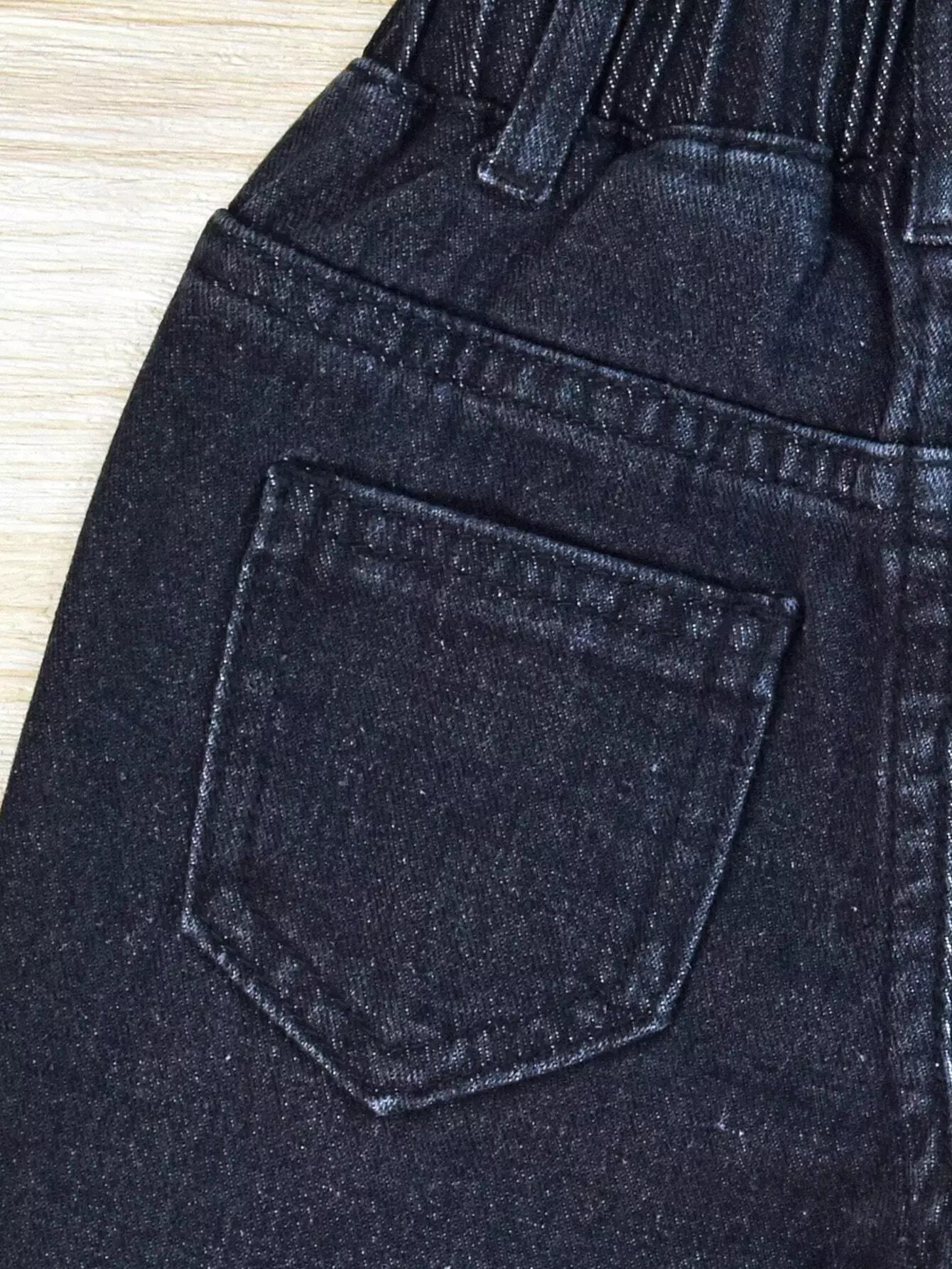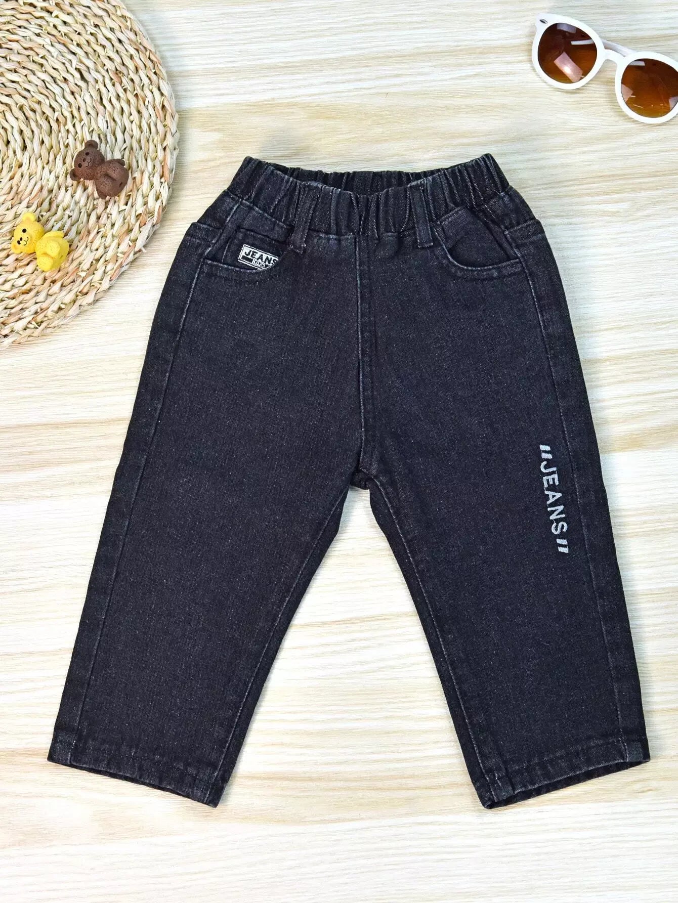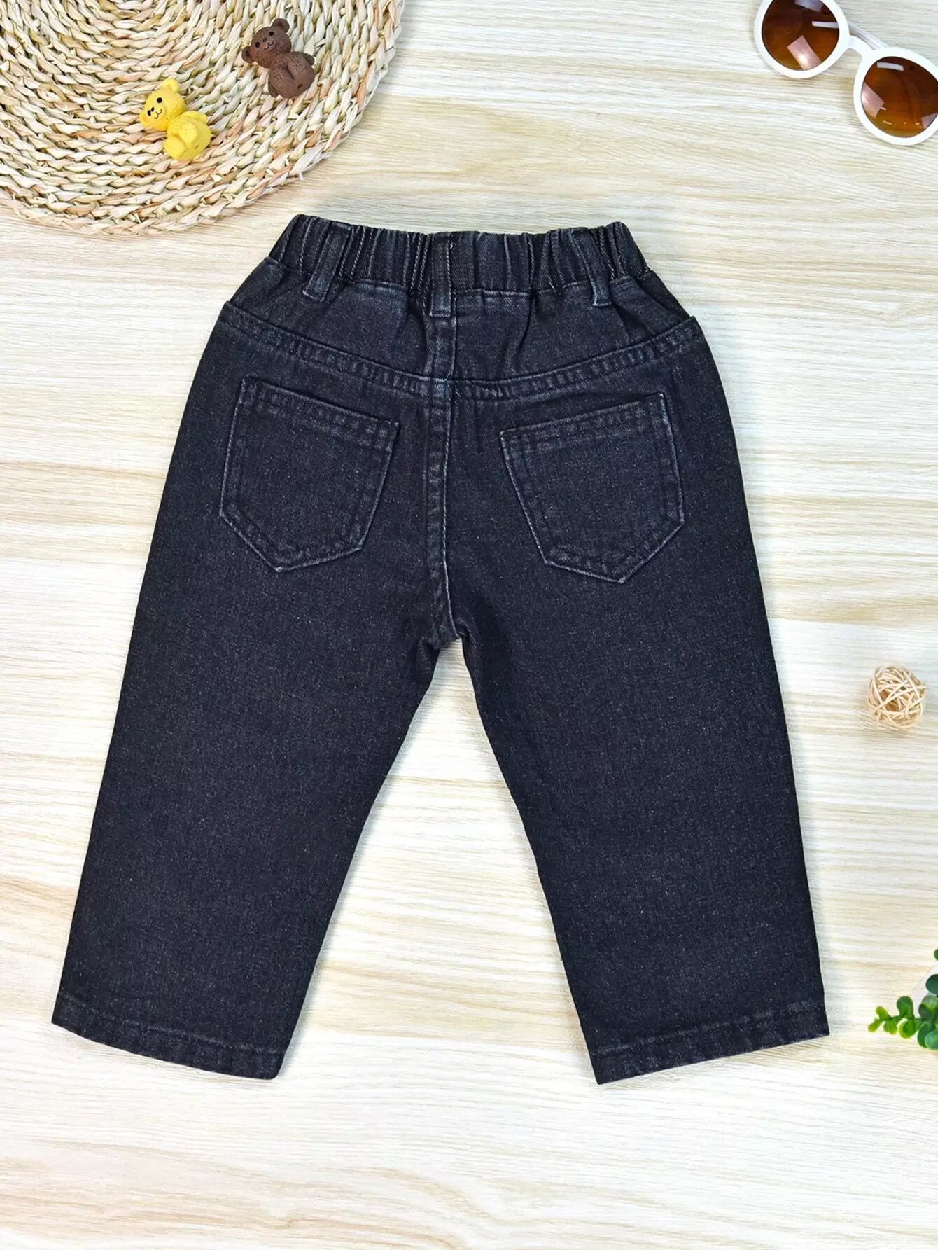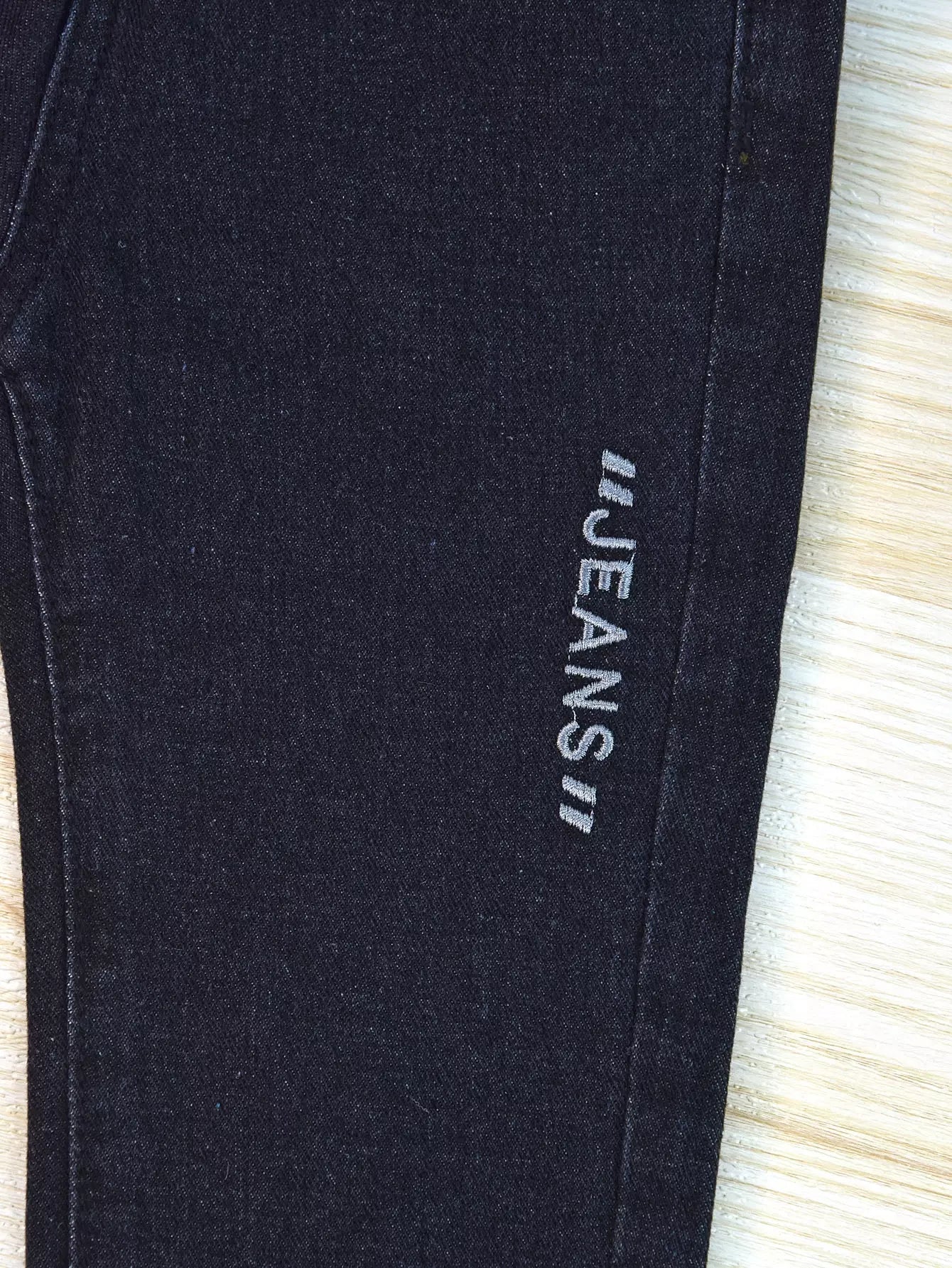 بنطلون جينز بتطريز حروف على شكل حرف صغير مرقع التفاصيل