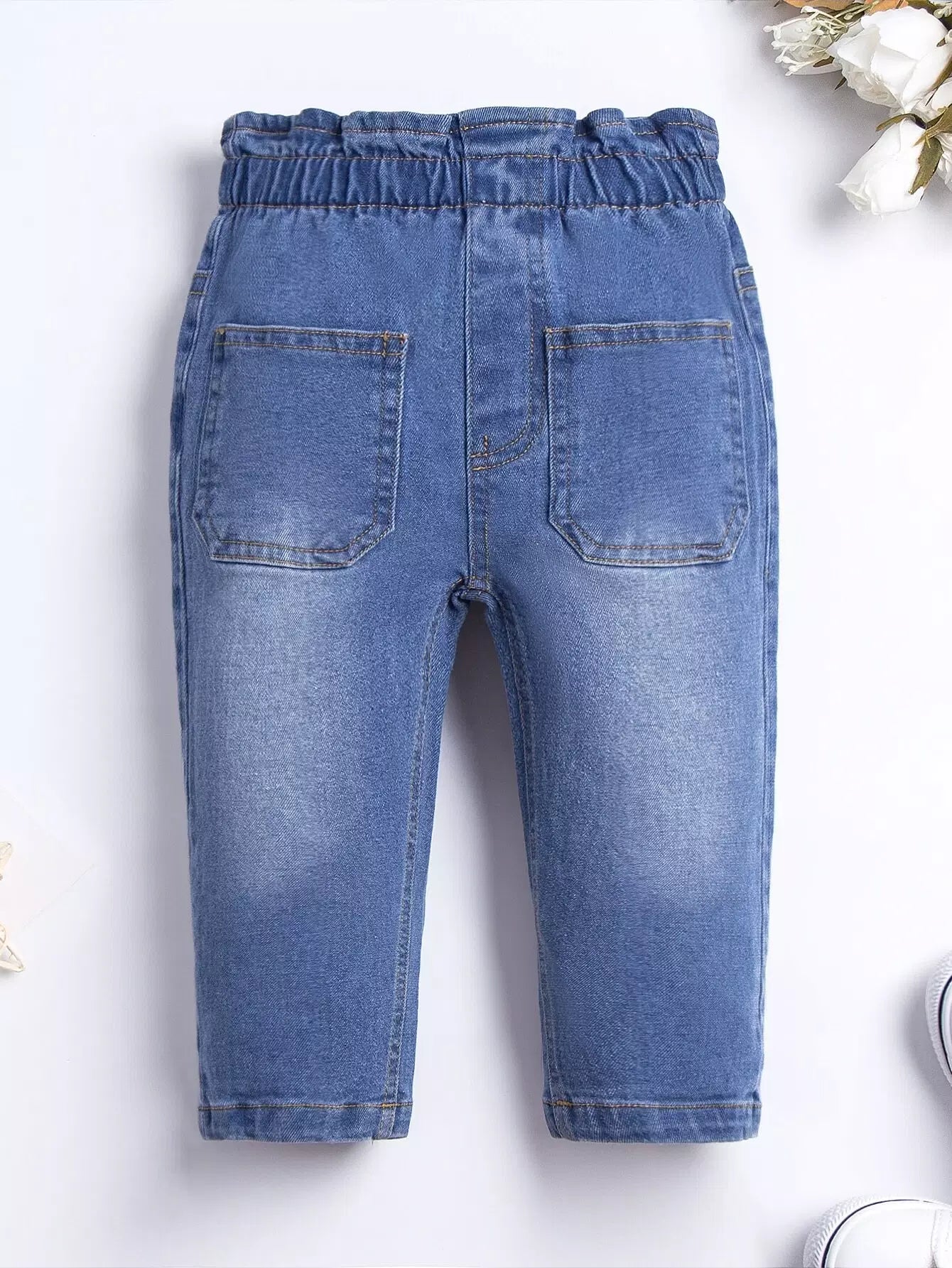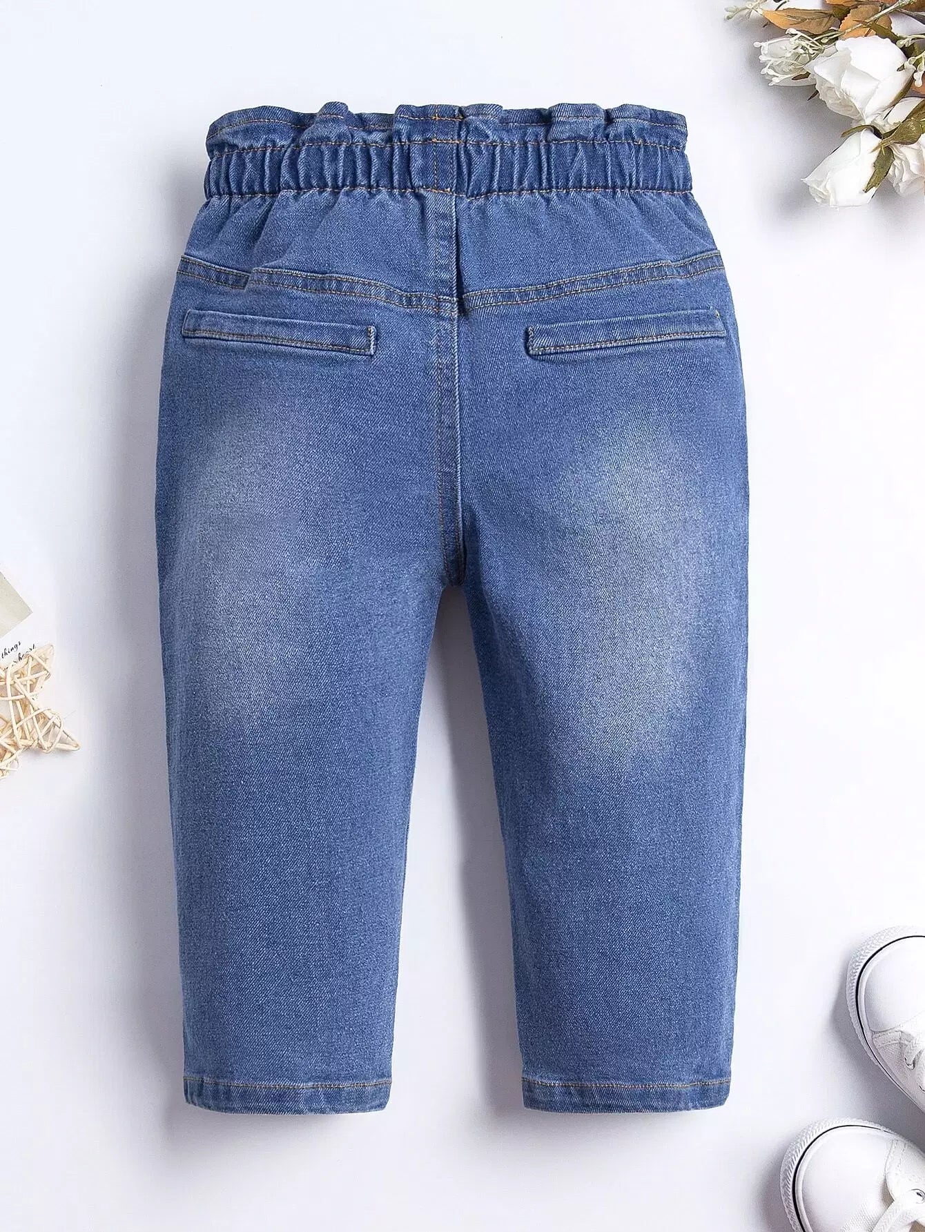 بنطلون جينز مرقع الخصر بكيس ورقي صغير