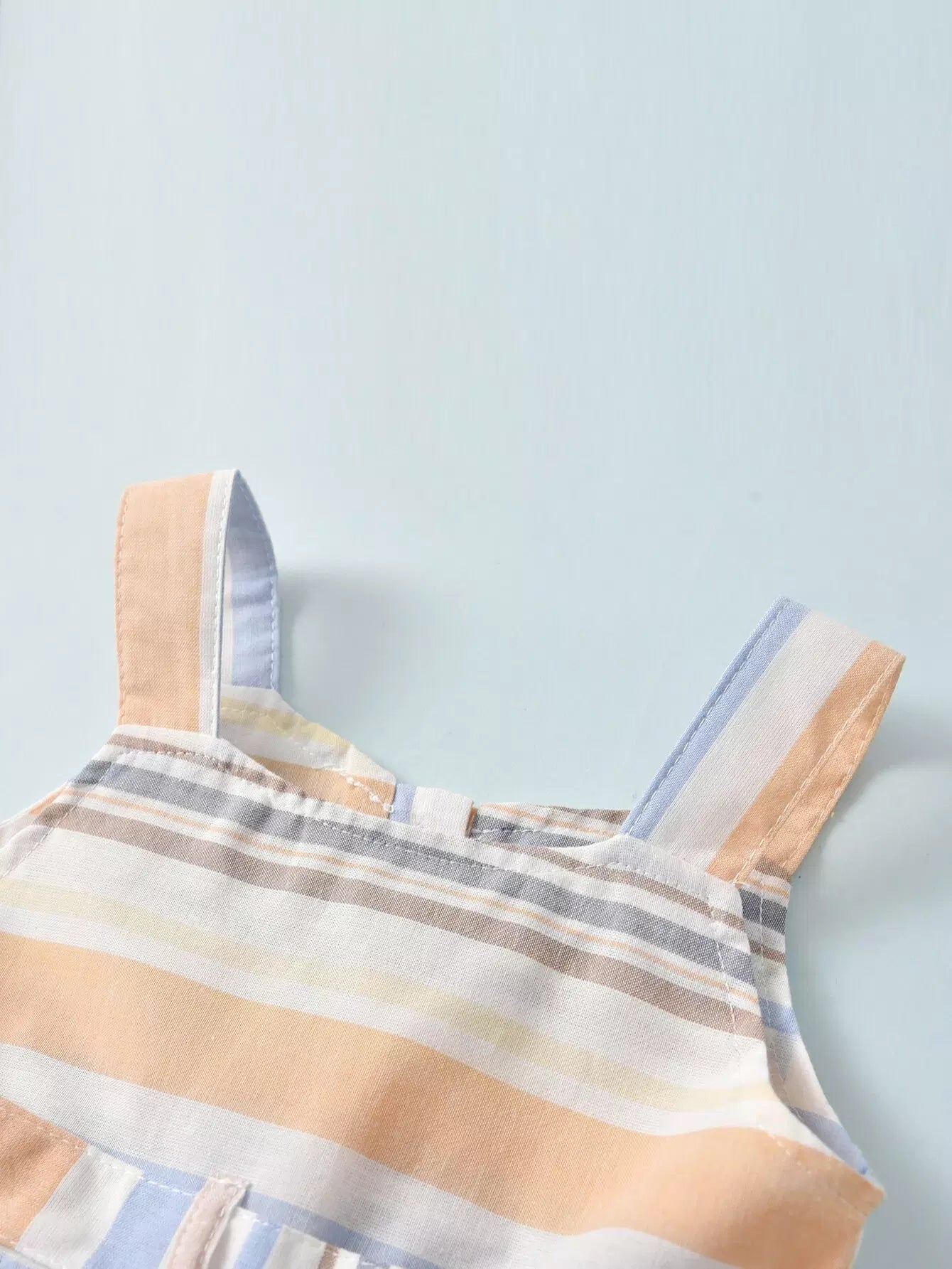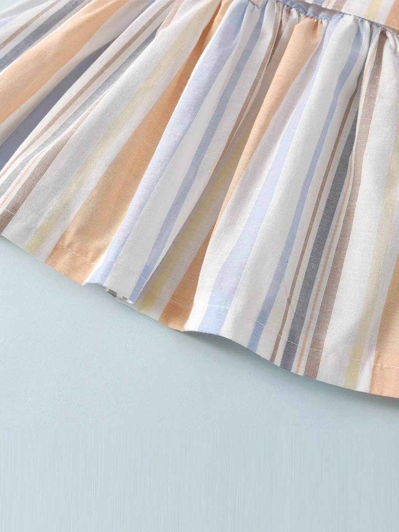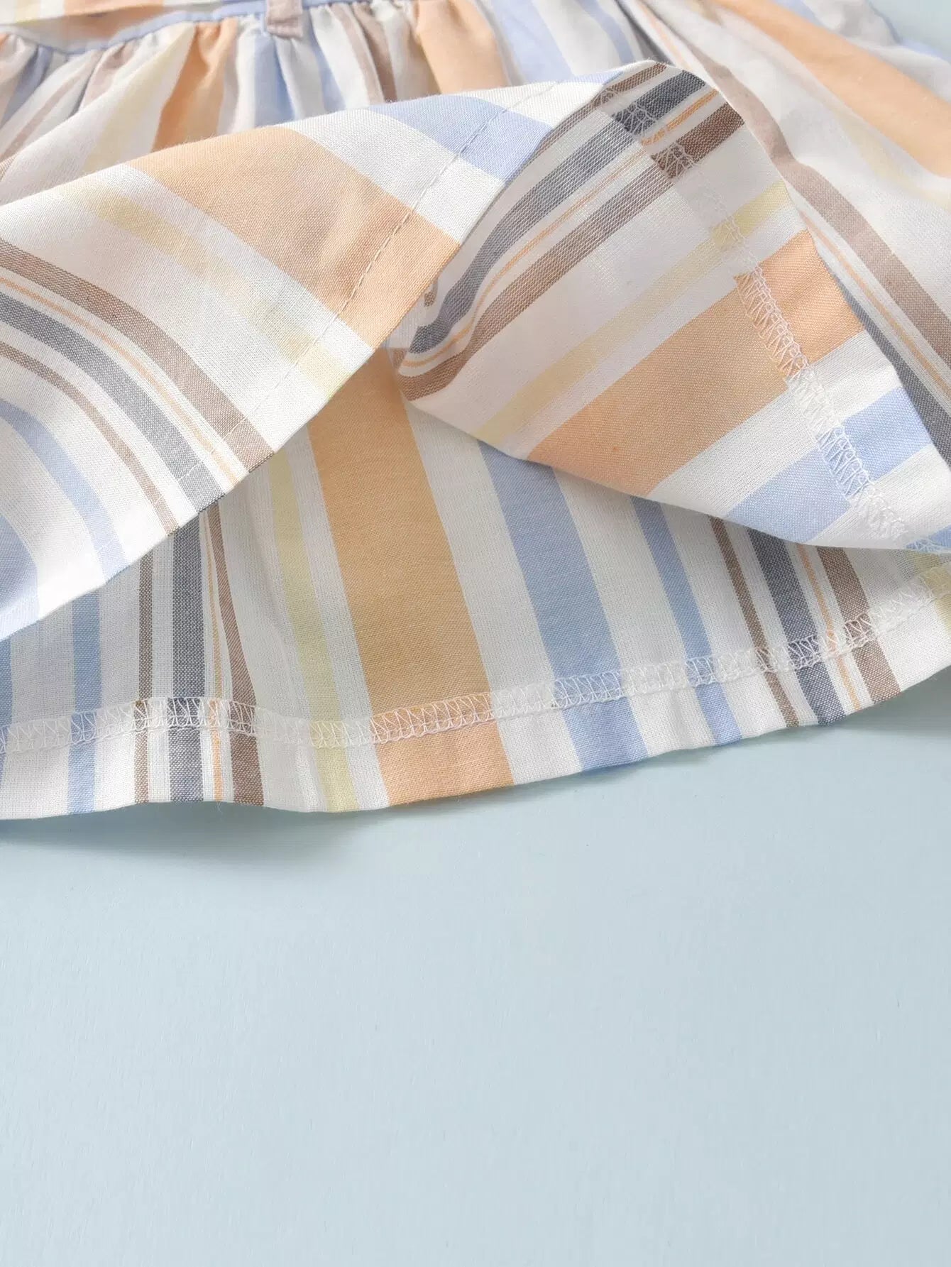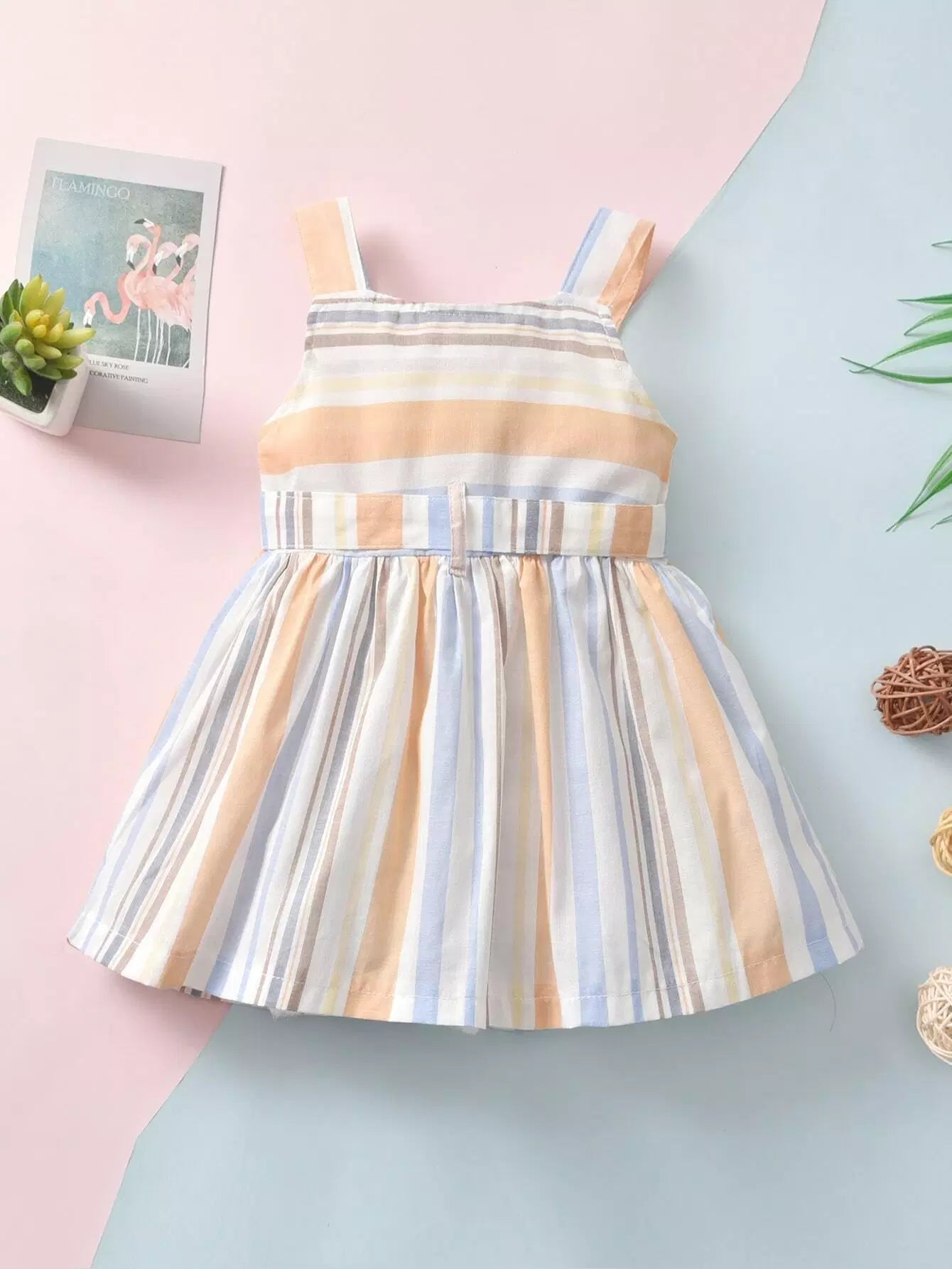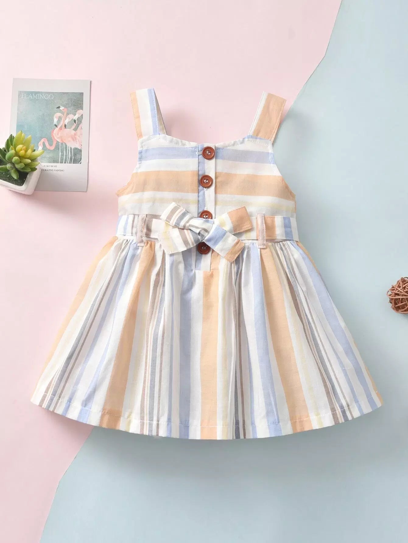 فستان كامي مخطط من الأمام بعقدة للطفلة الرضيعة
