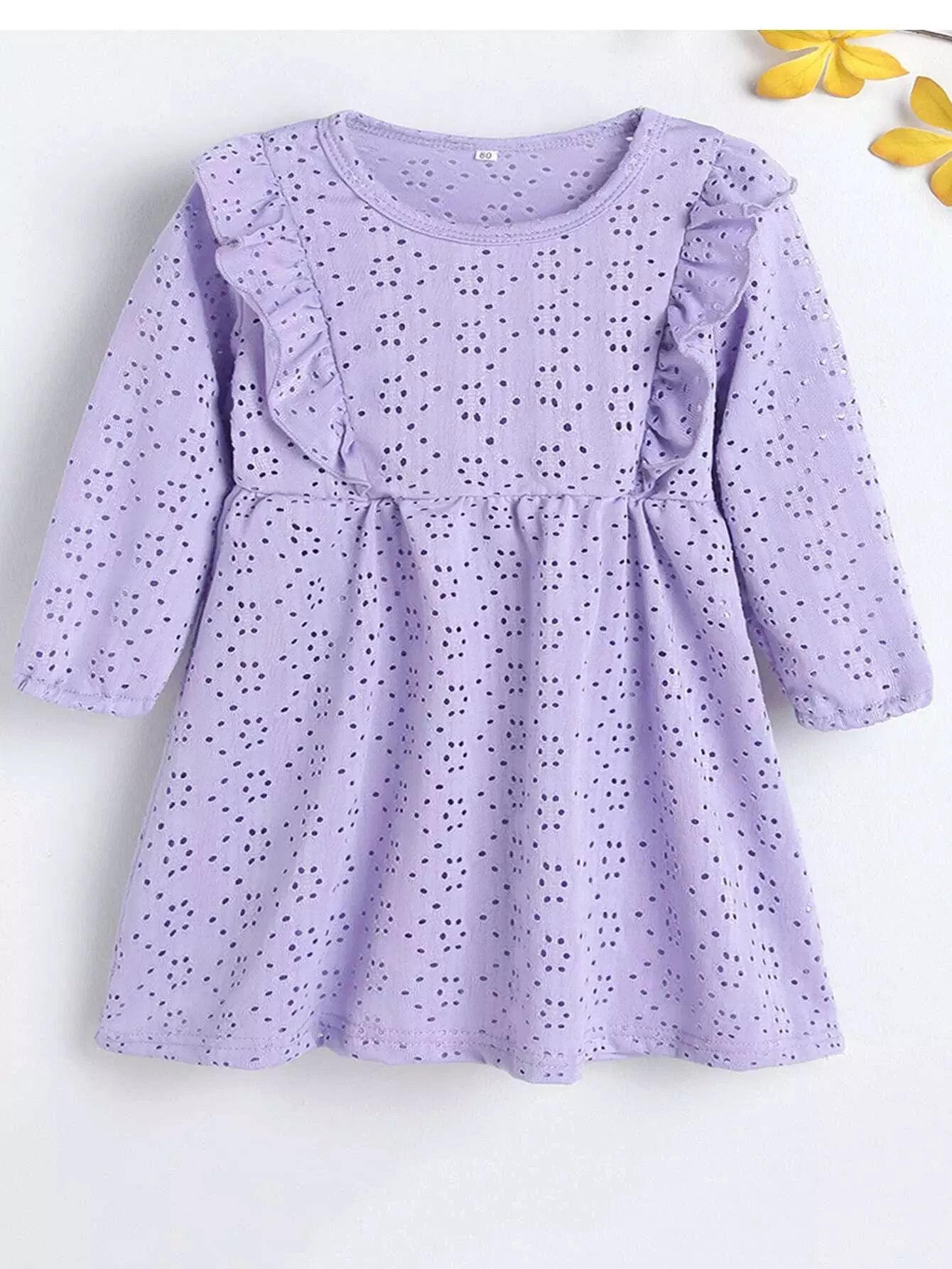 فستان طفلة رضيعة، فستان كشكش مطرز بتطريزات على شكل كشكش