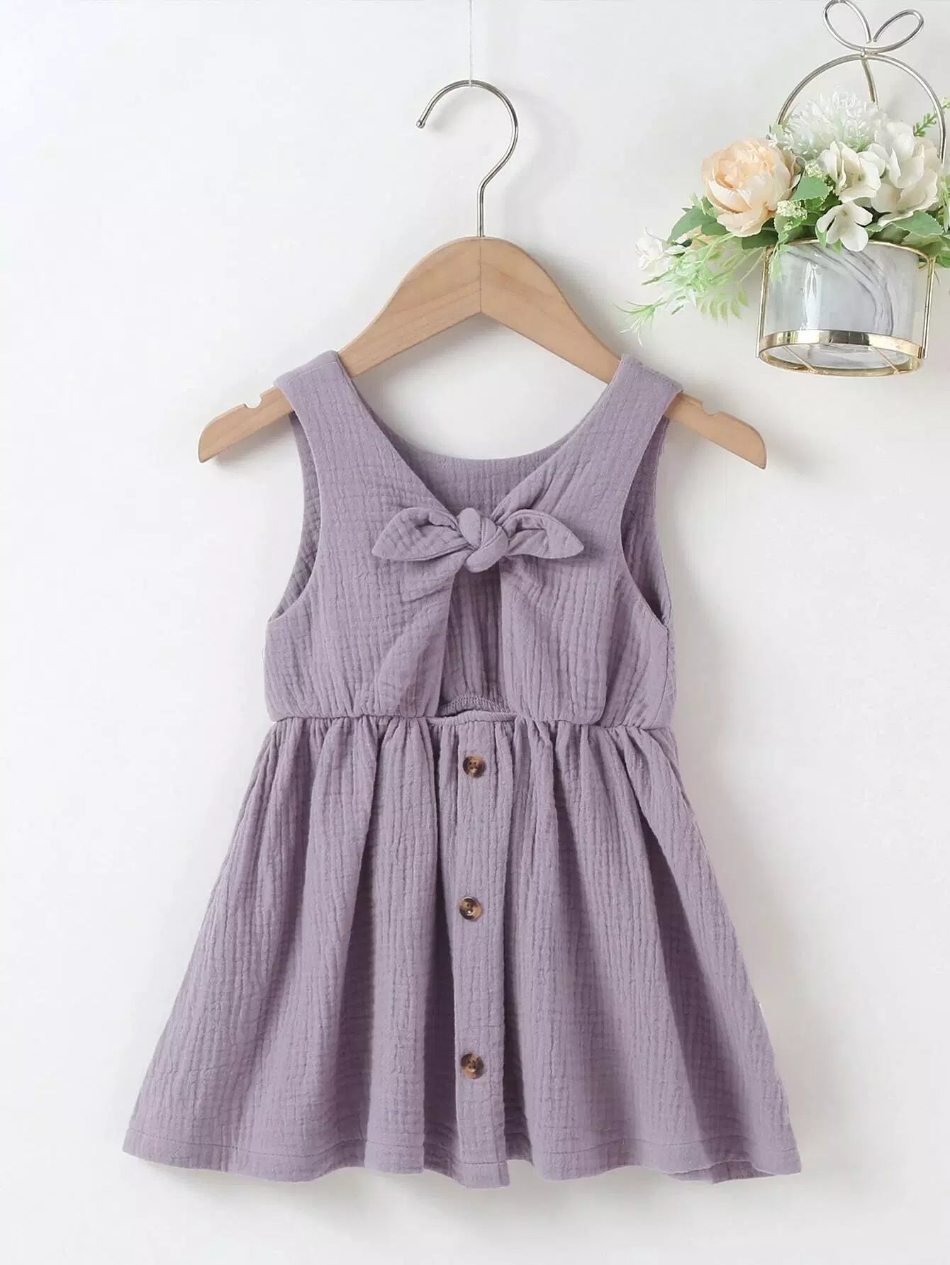 فستان طفلة رضيعة بربطة عنق أمامية بنصف زر