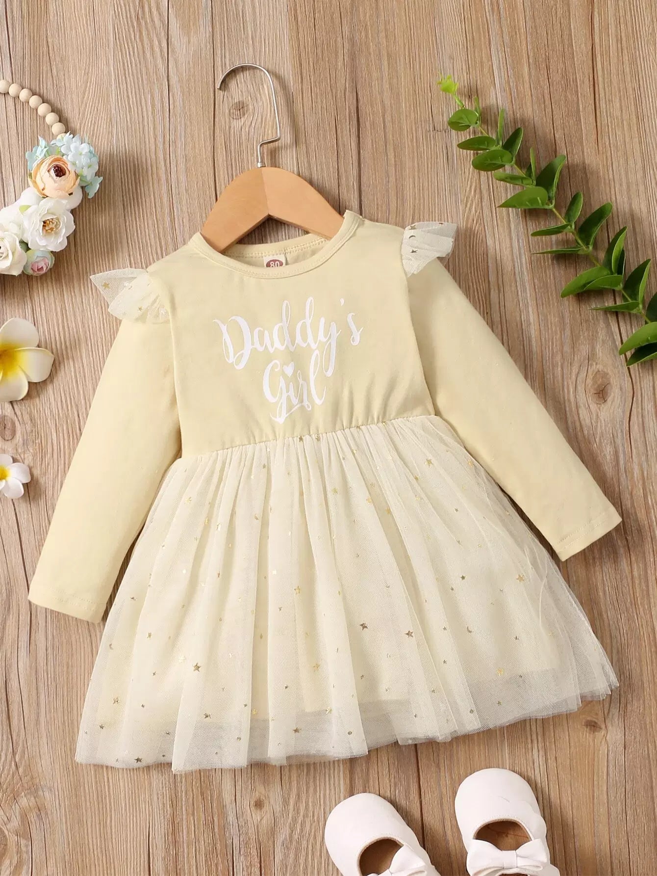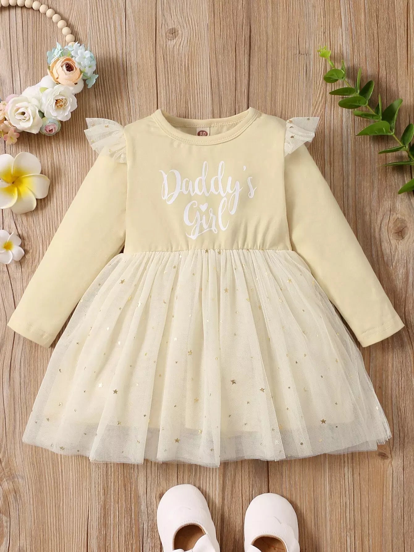 فستان برسومات على شكل نجمة شبكية بنقشة حروف بيبي