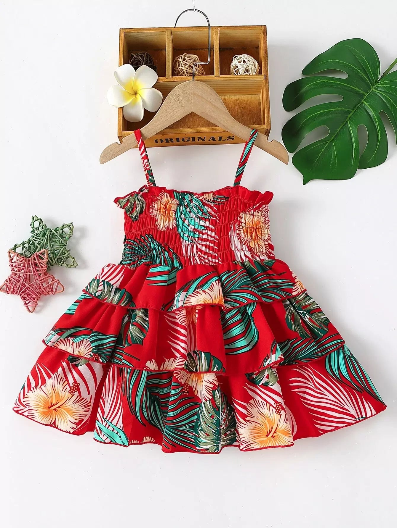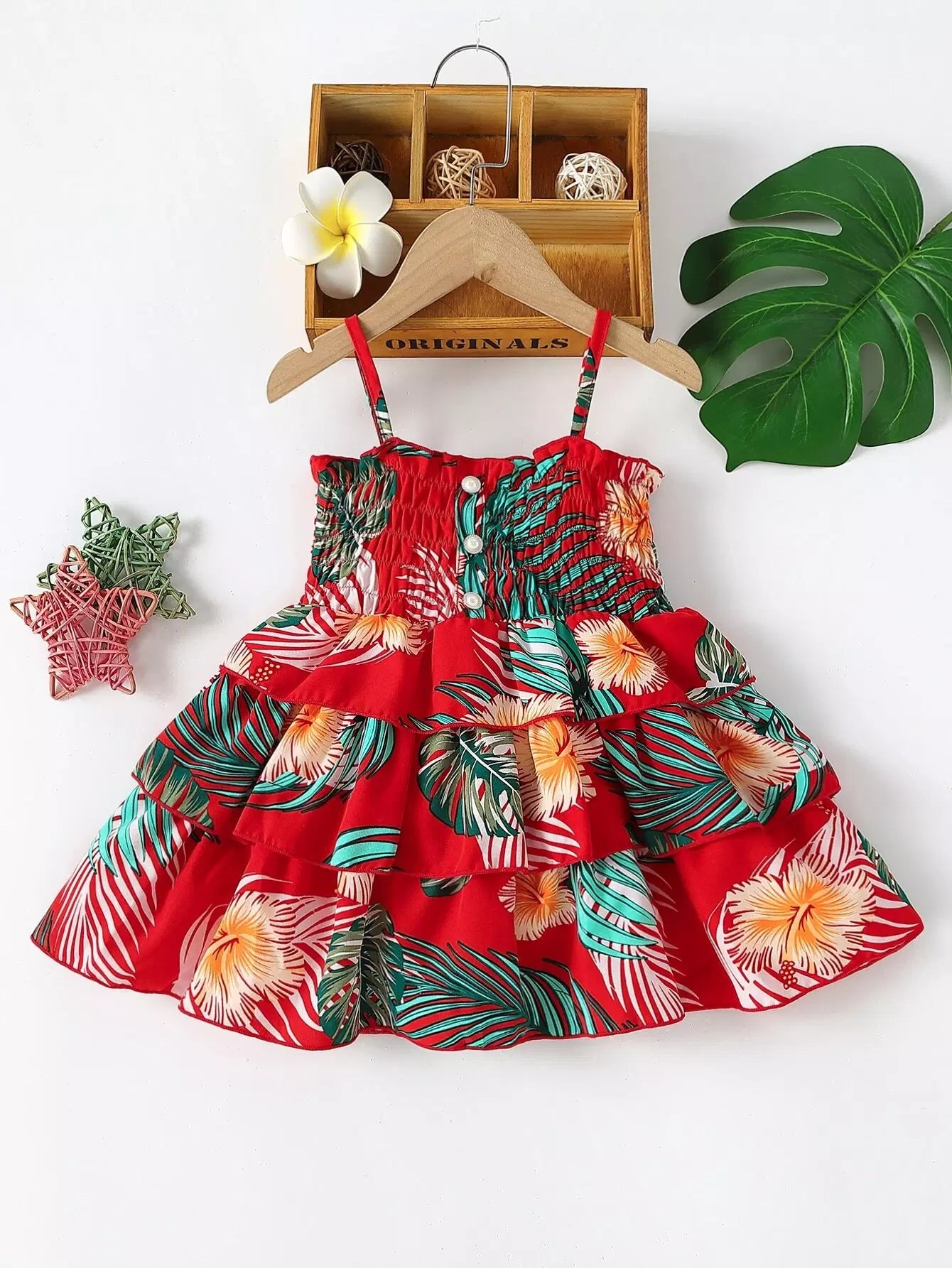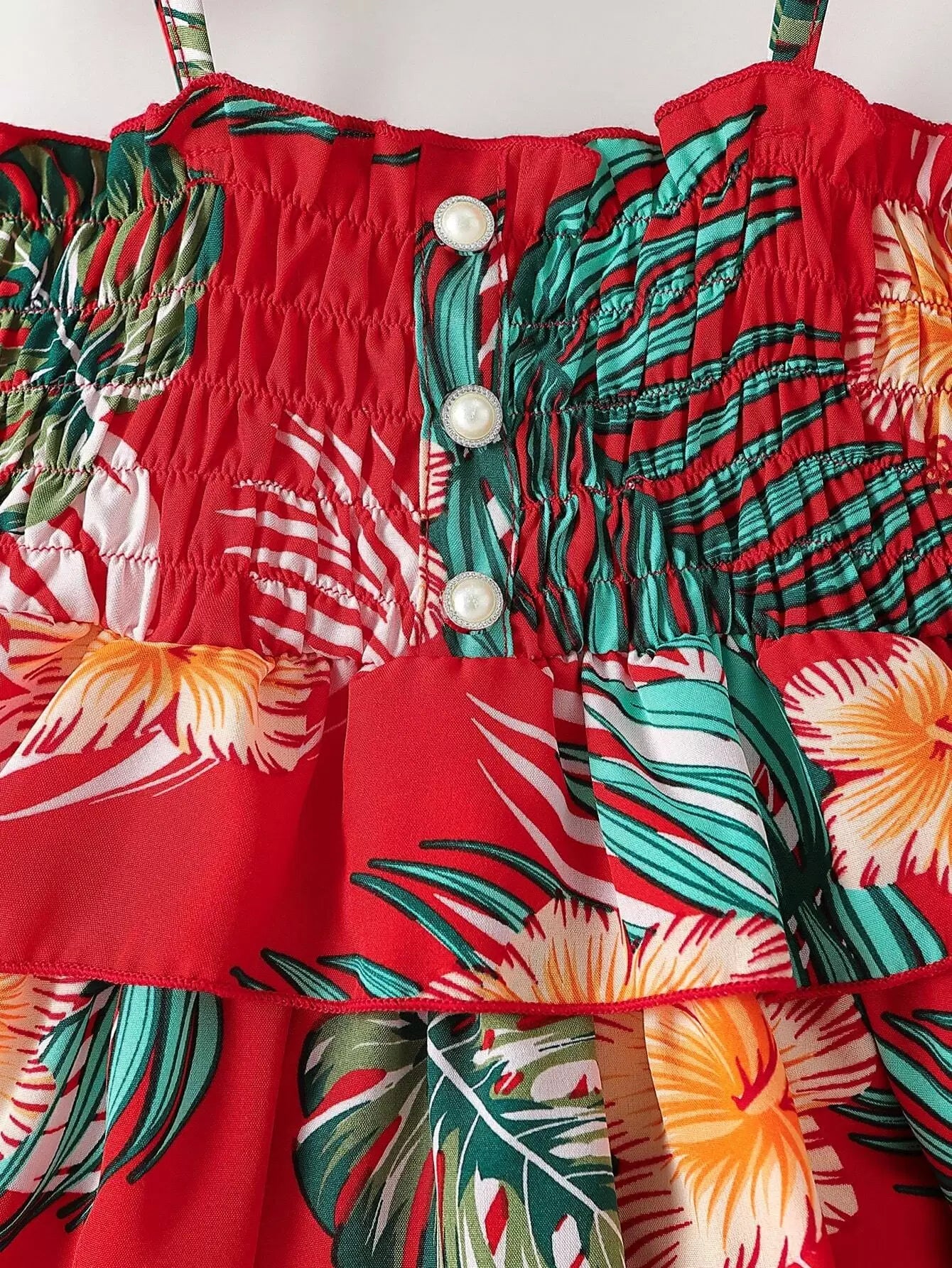 فستان كامي بطبعة استوائية للأطفال بطباعة استوائية بطبقات