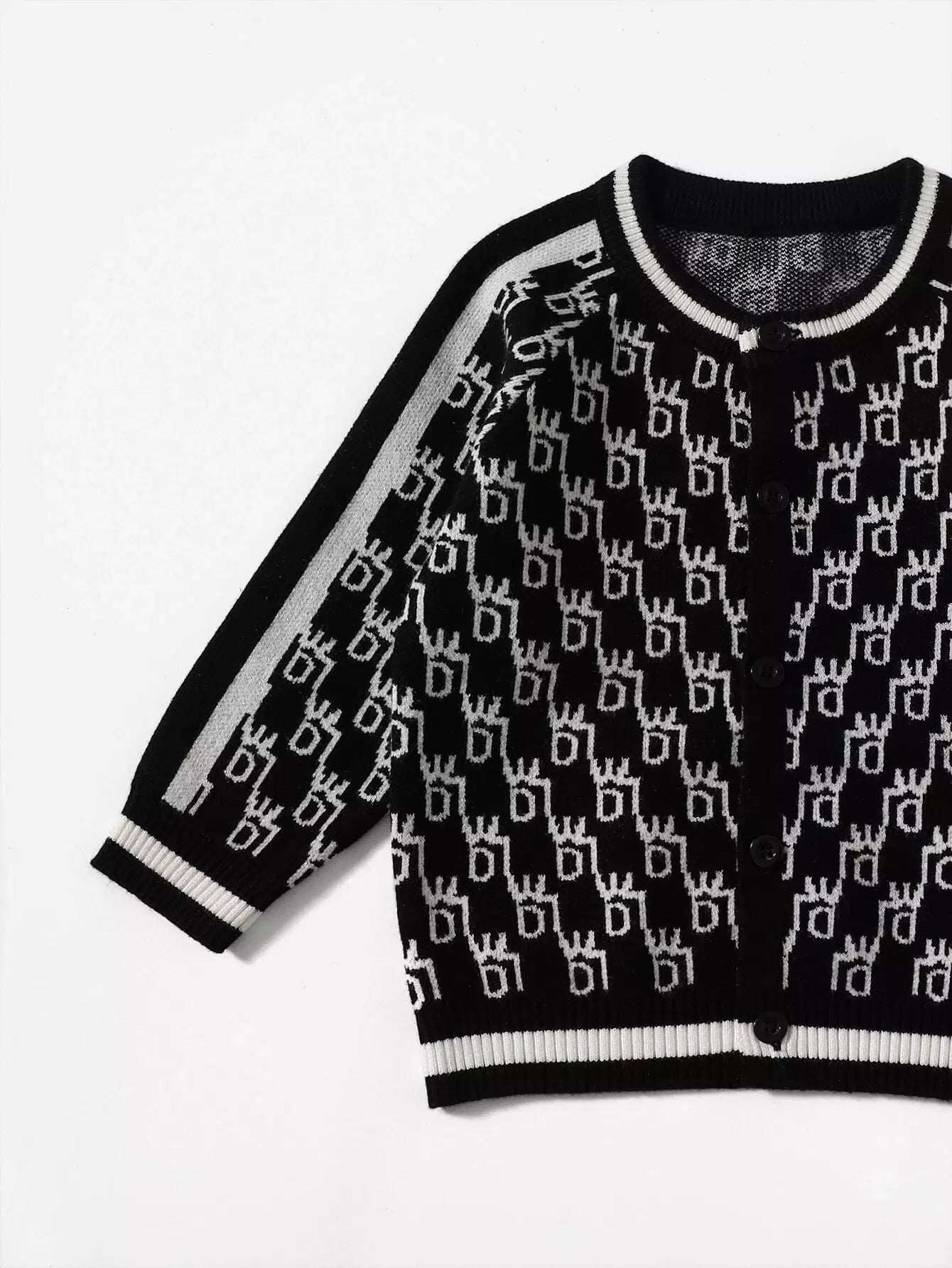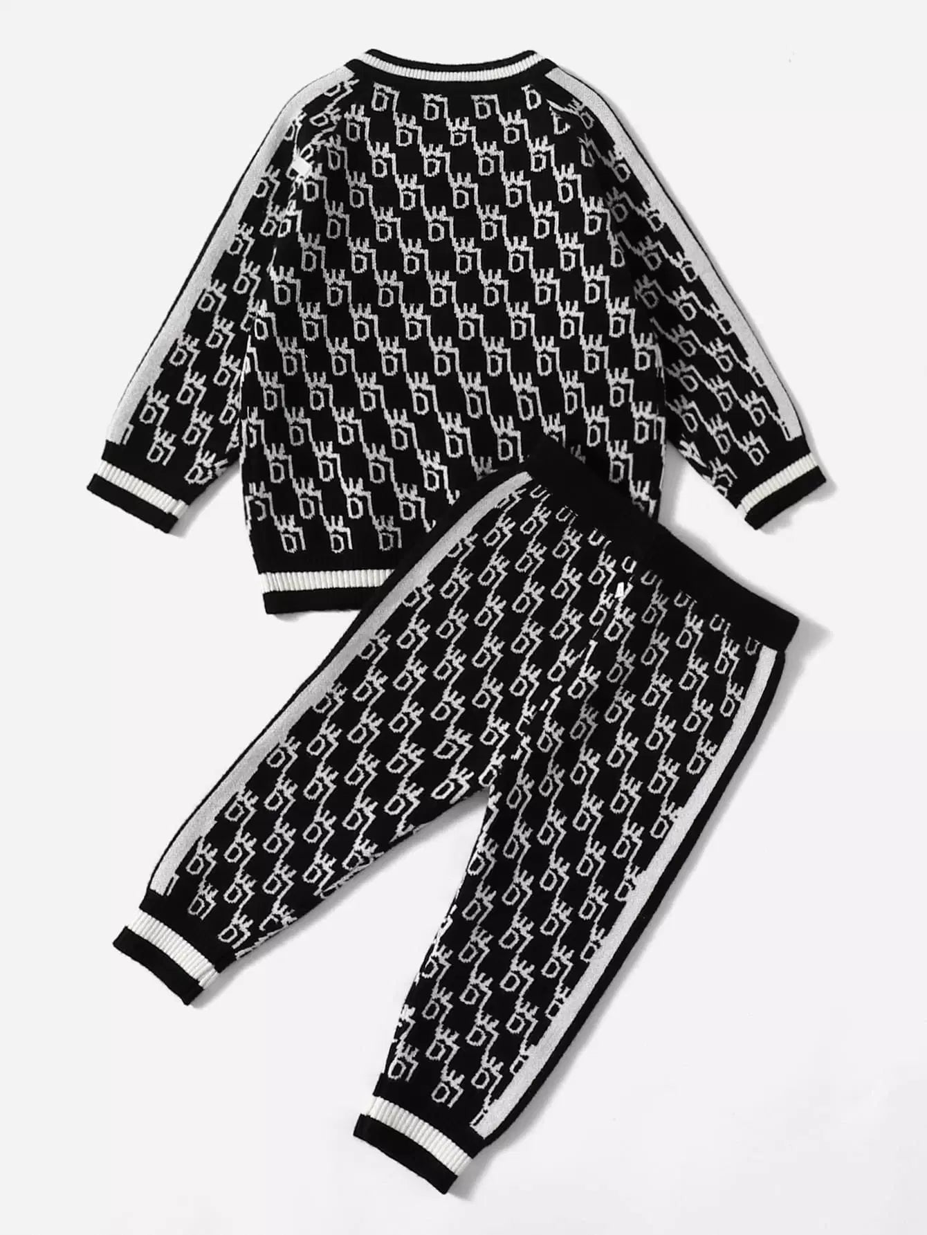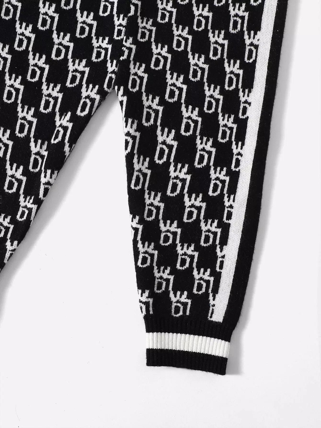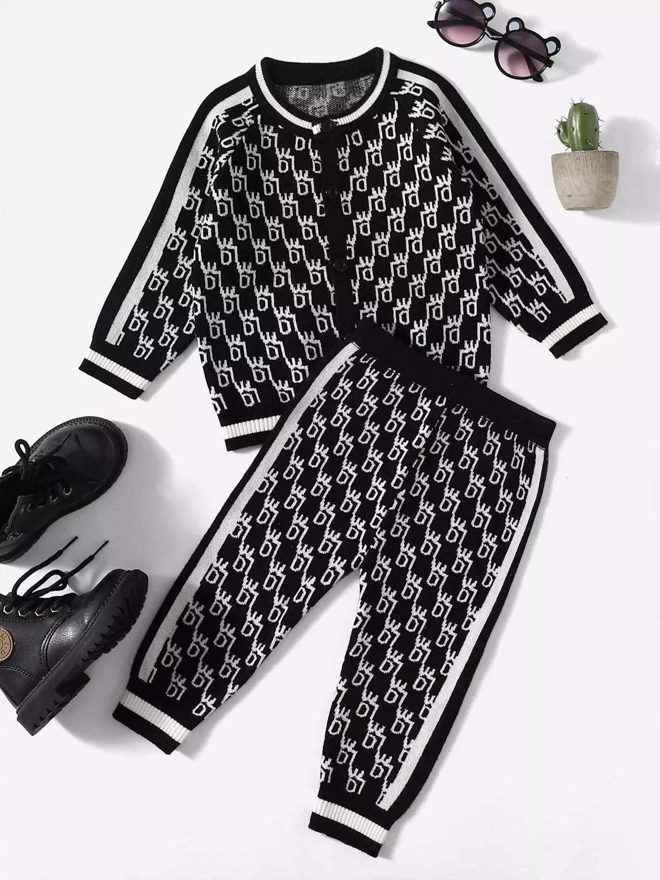 كارديغان مخطط بنقشة مخططة بالكامل وبنطلون محبوك