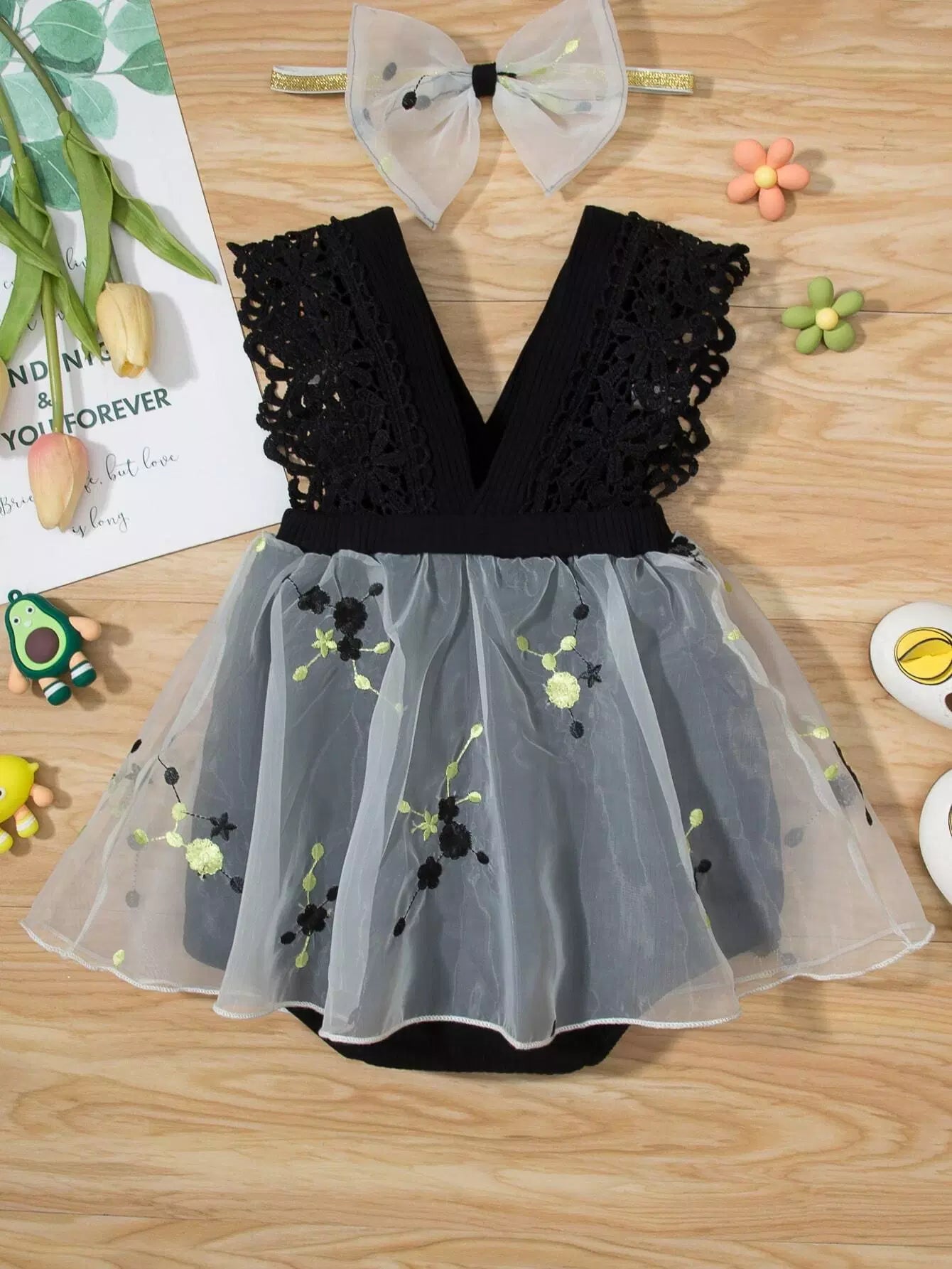 لباس قطعة واحدة للطفلة الرضيعة مطرز بطبقة شبكية
