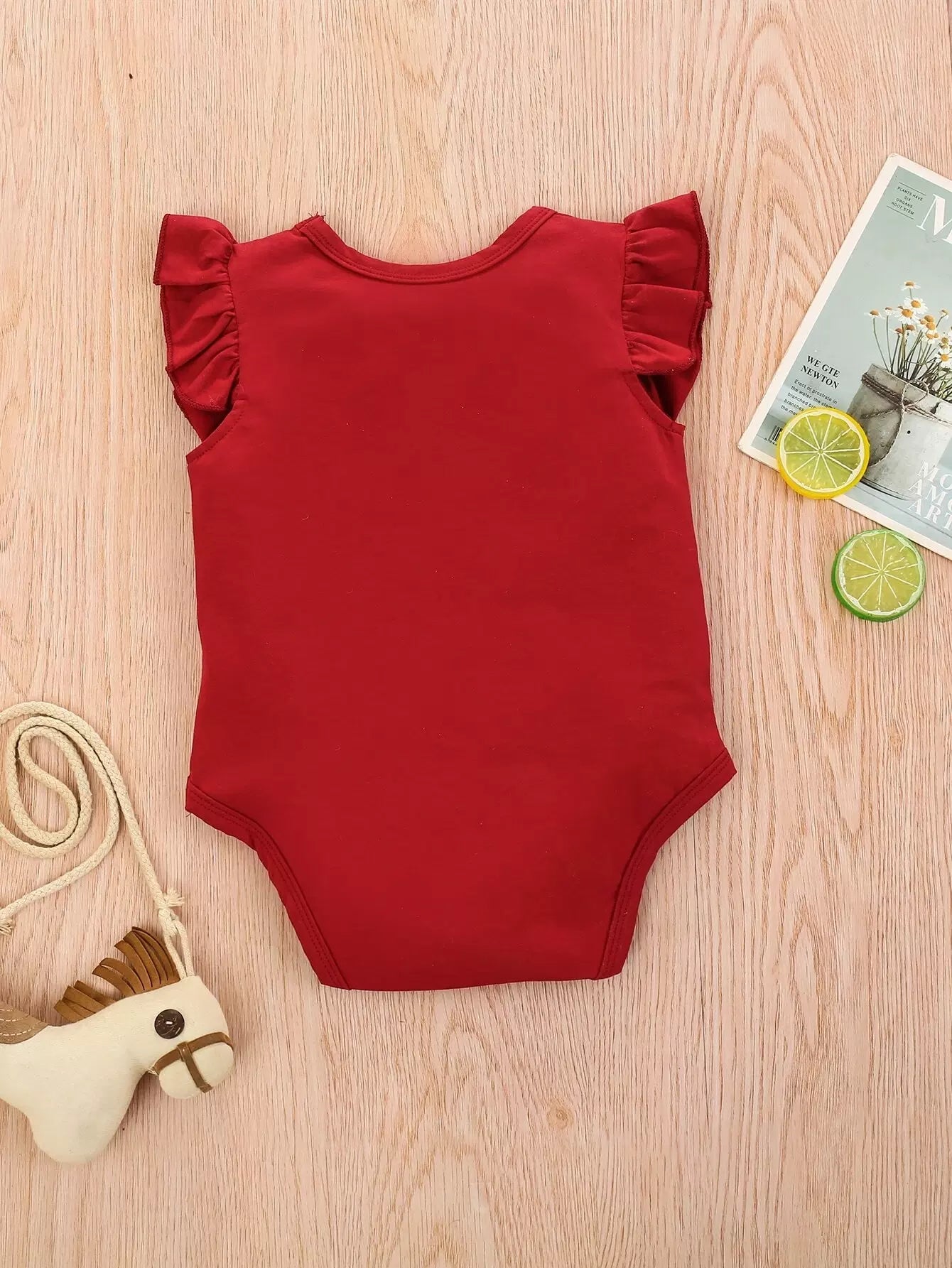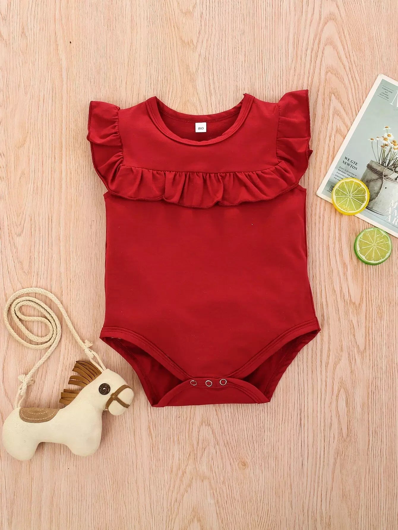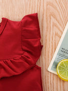 لباس قطعة واحدة سادة بحواف مكشكشة للطفلة الرضيعة