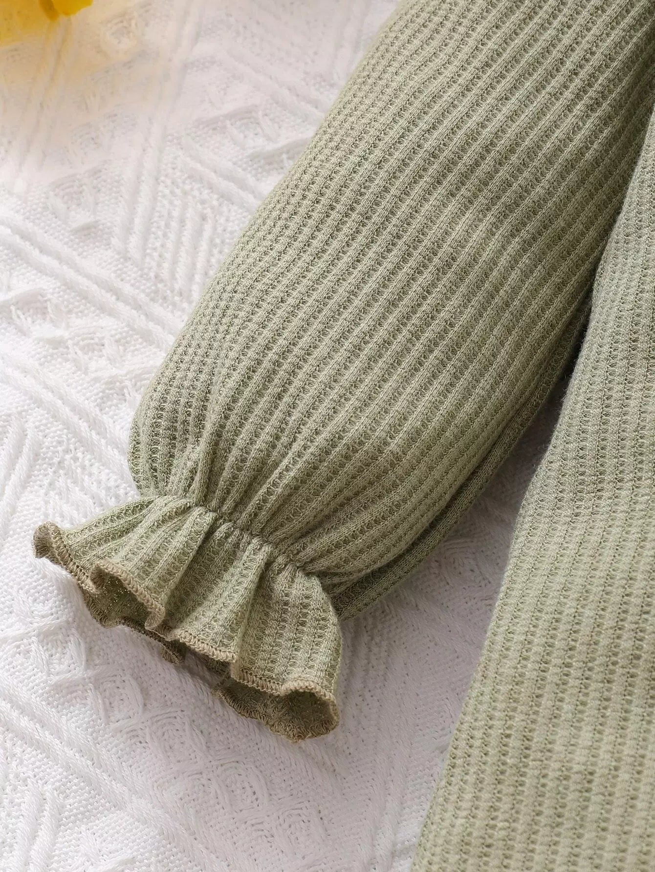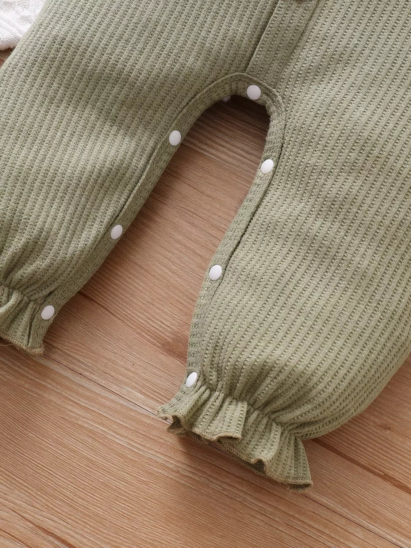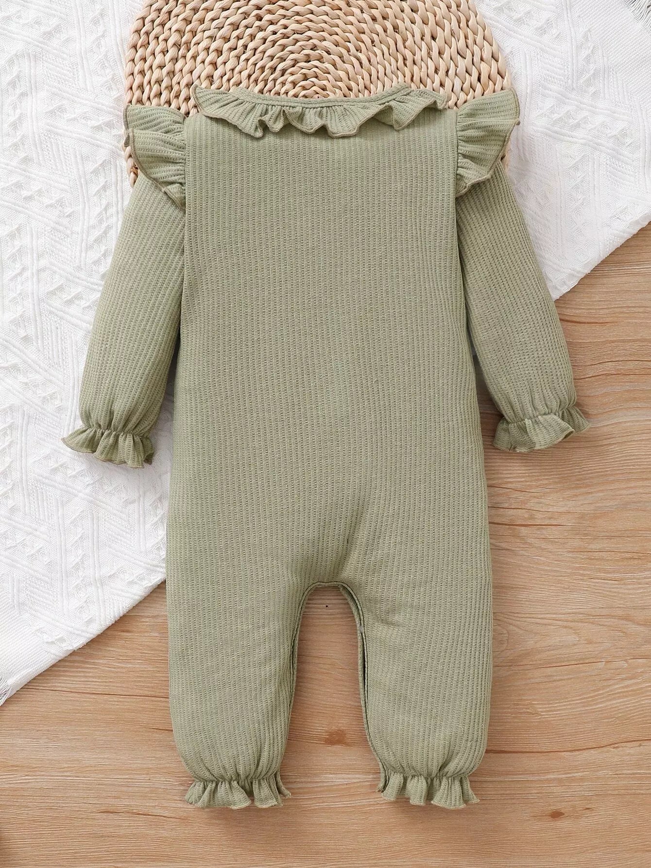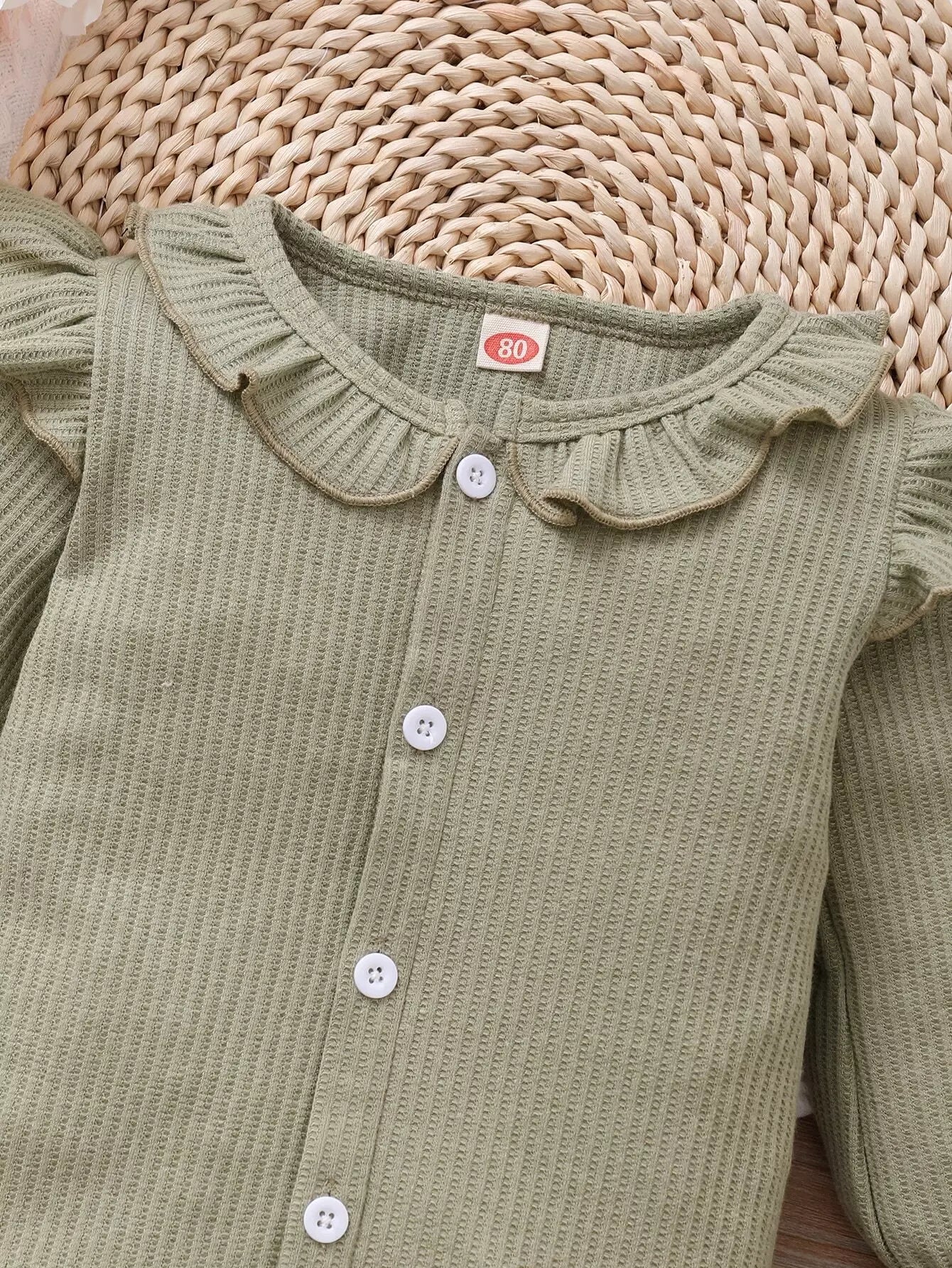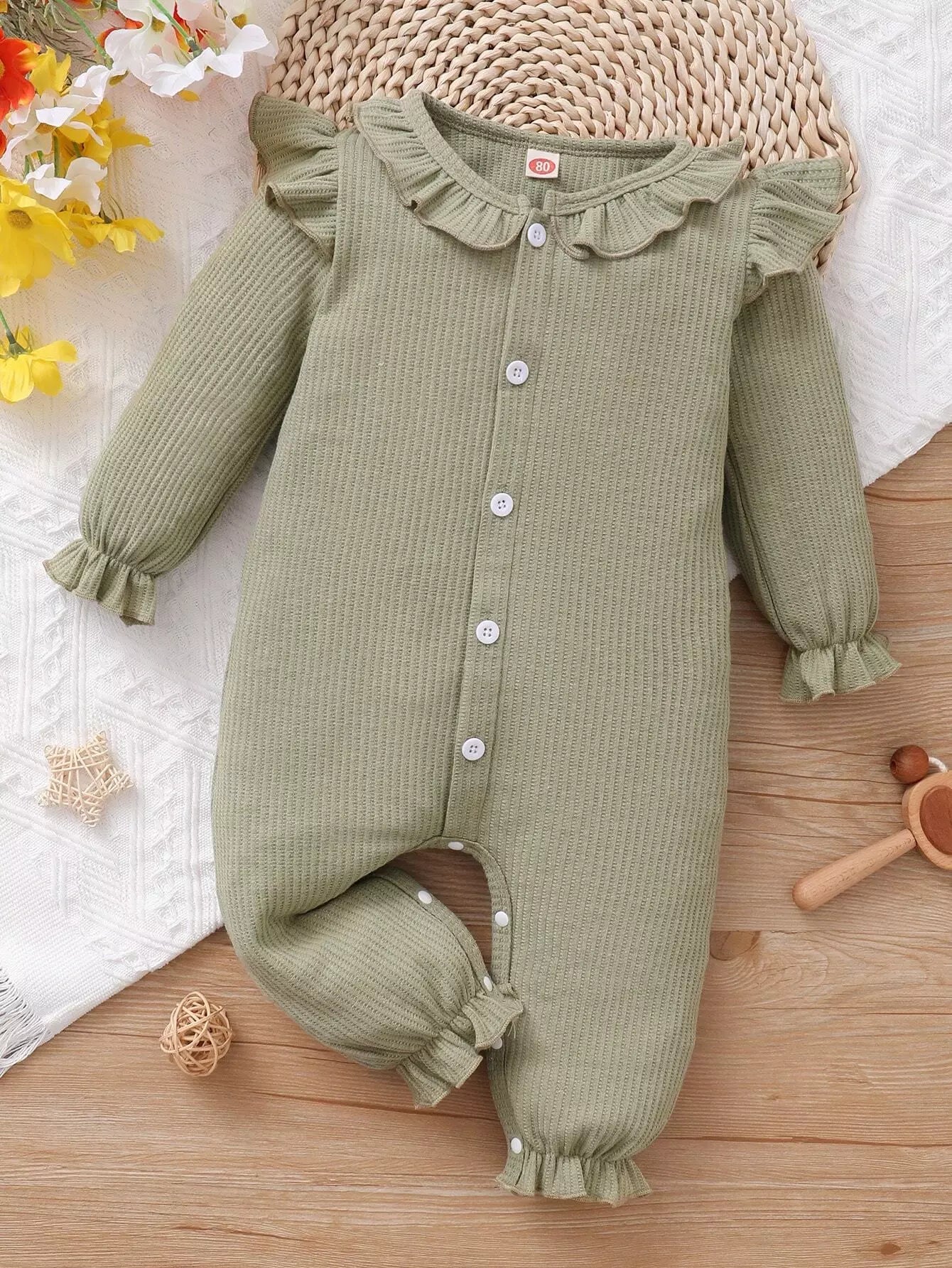 جامبسوت بتصميم كشكش أمامي بأزرار للطفلة الرضيعة