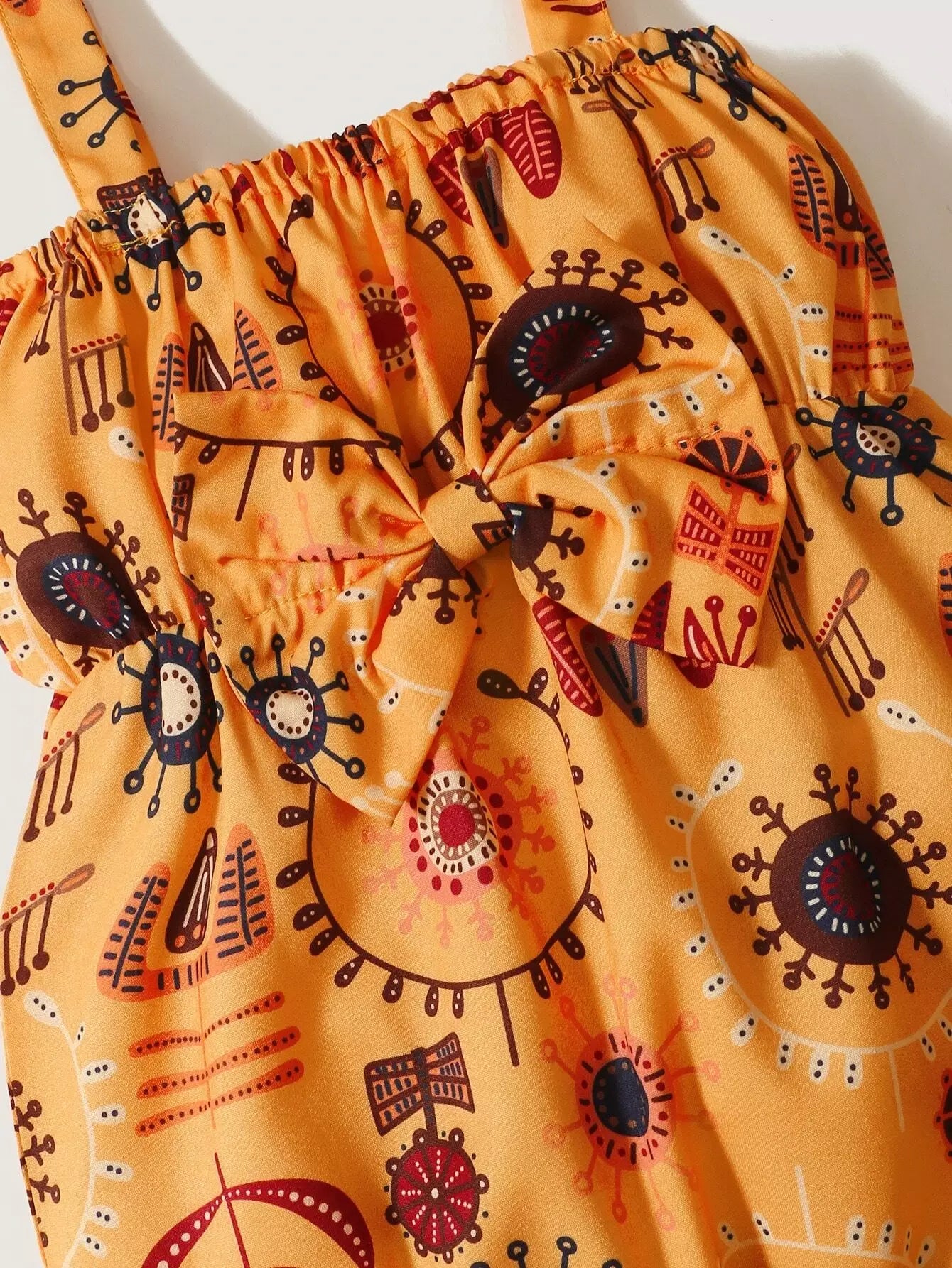 جمبسوت كرتوني جرافيك كرتوني أمامي بعقدة طفلة رضيعة، جمبسوت قصير قصير أمامي بعقدة