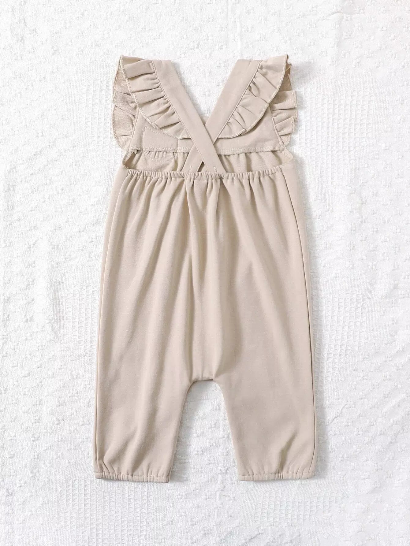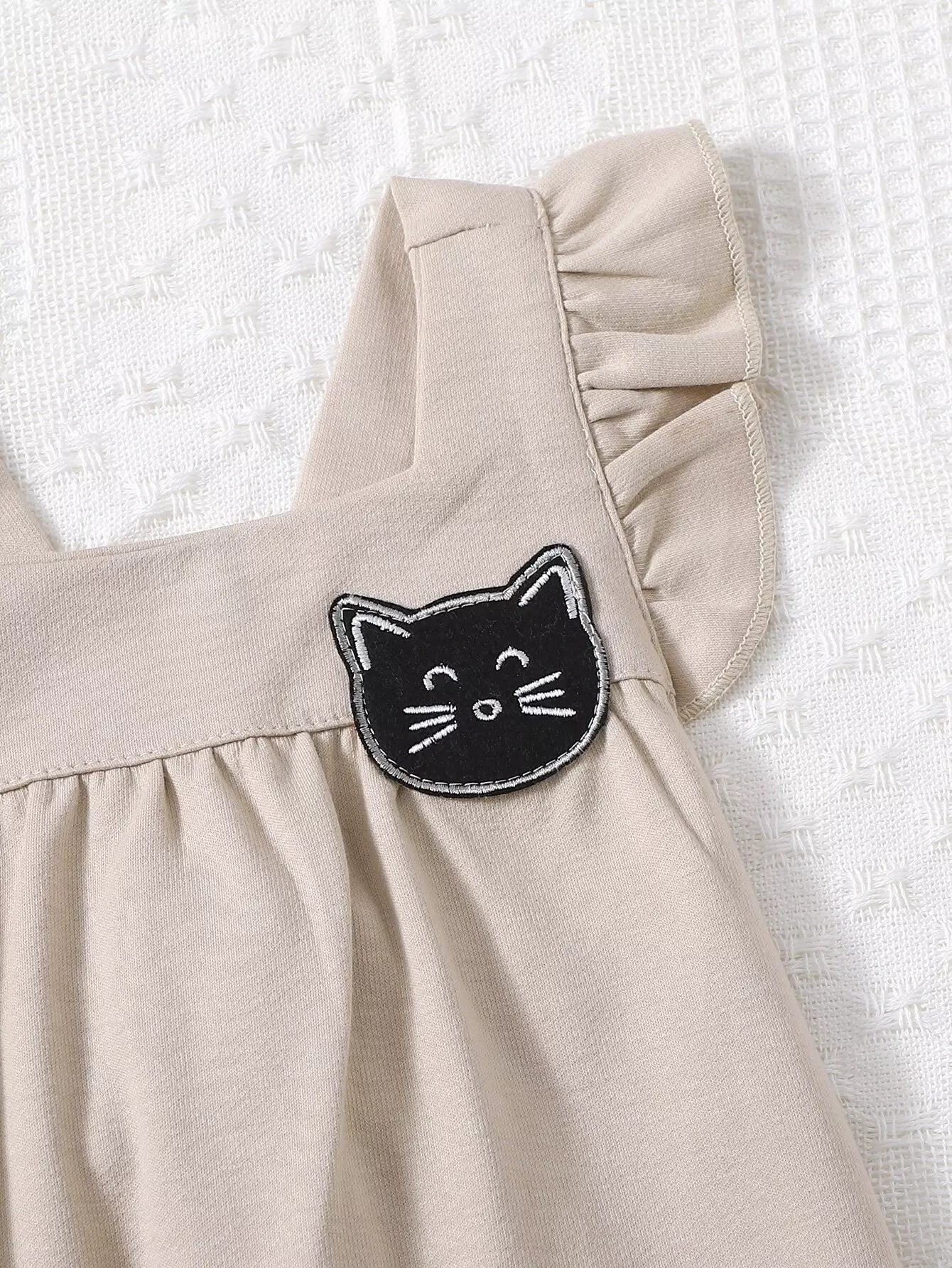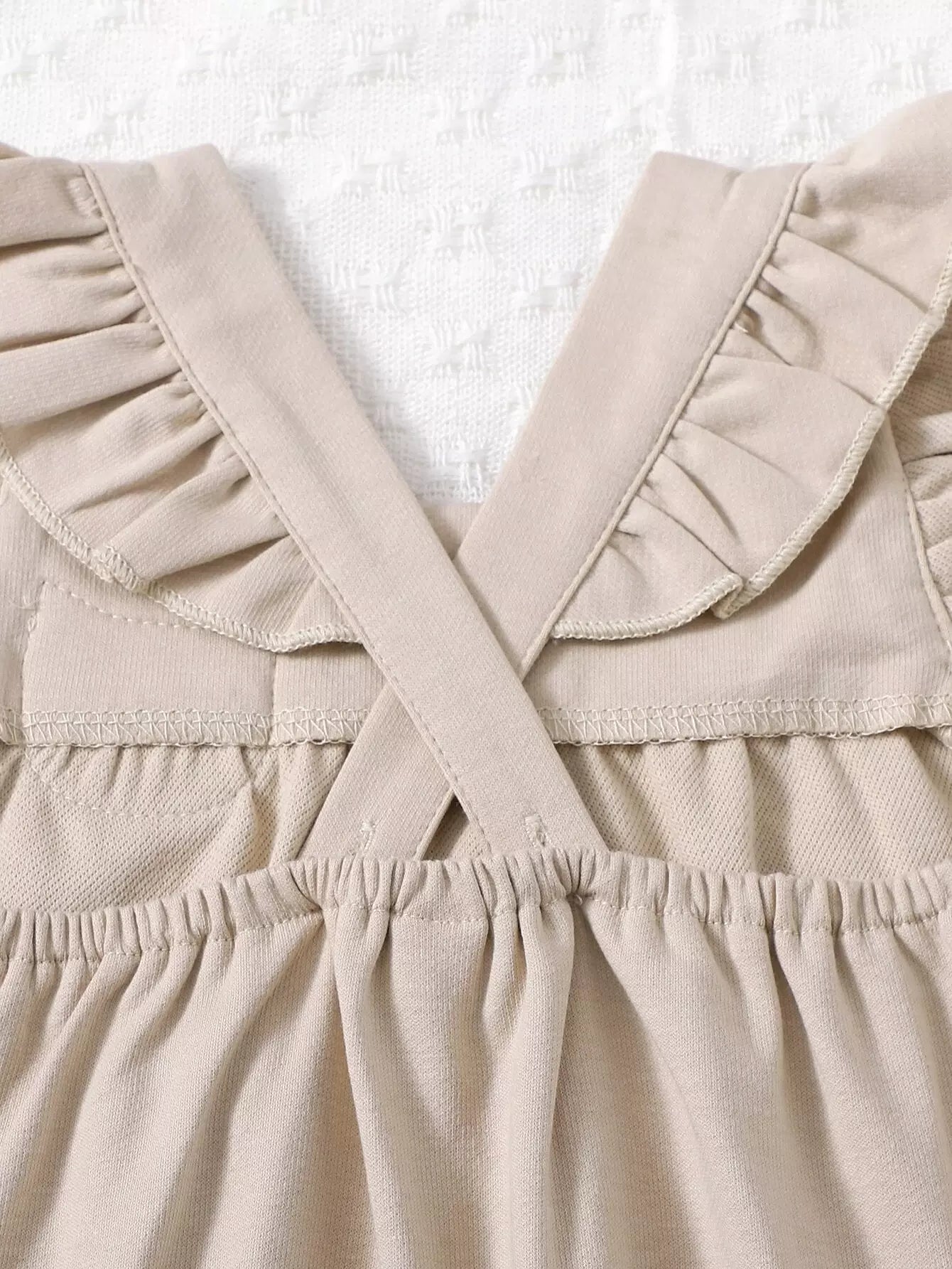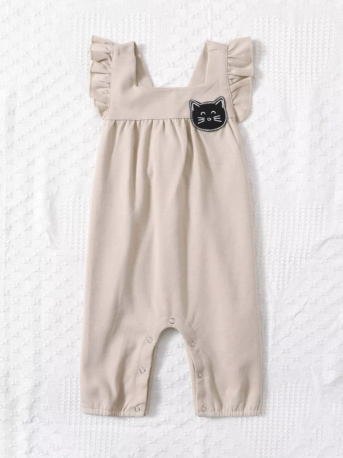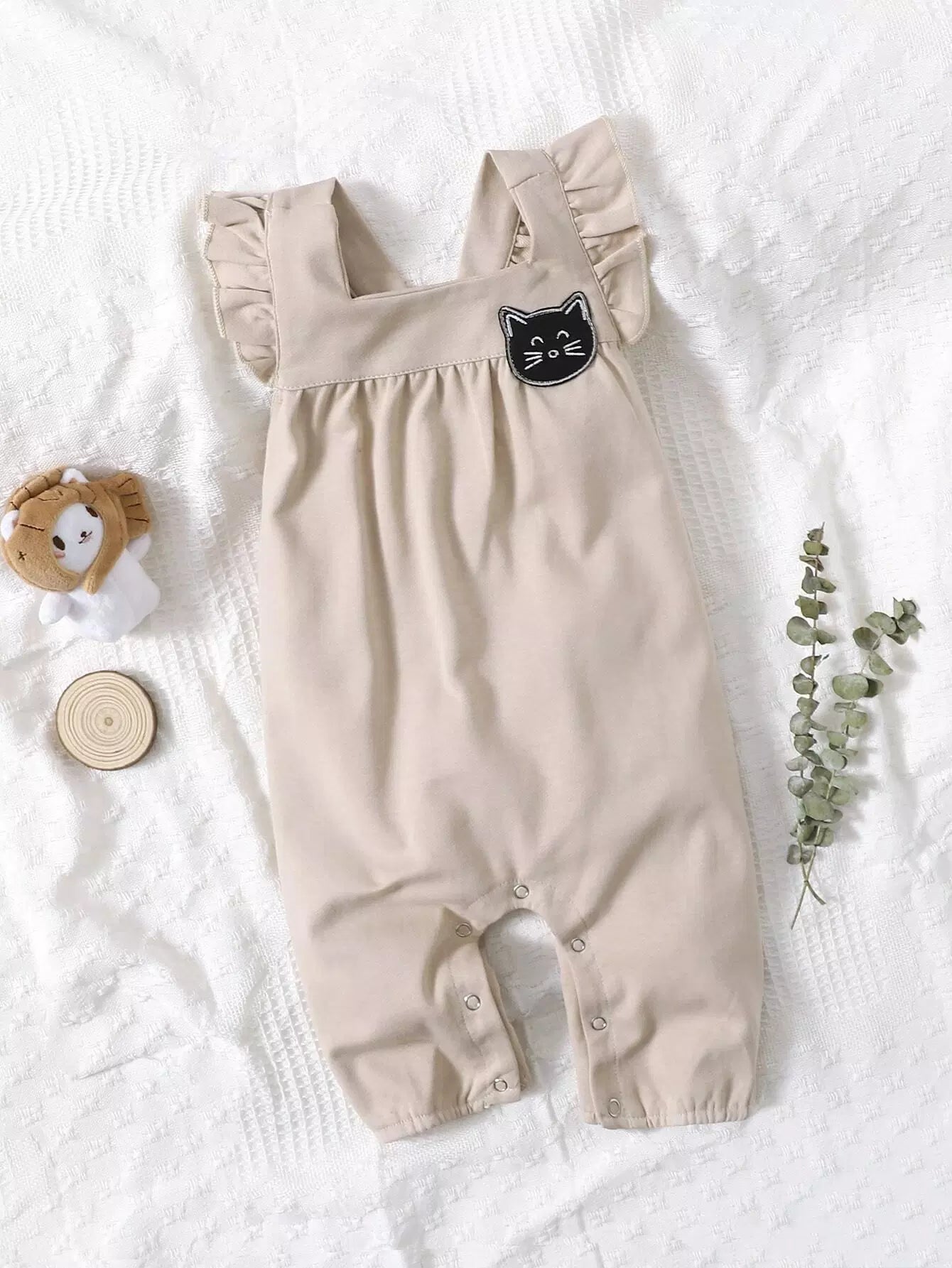 جمبسوت كرتوني مرقع بحواف كشكش للطفلة الرضيعة