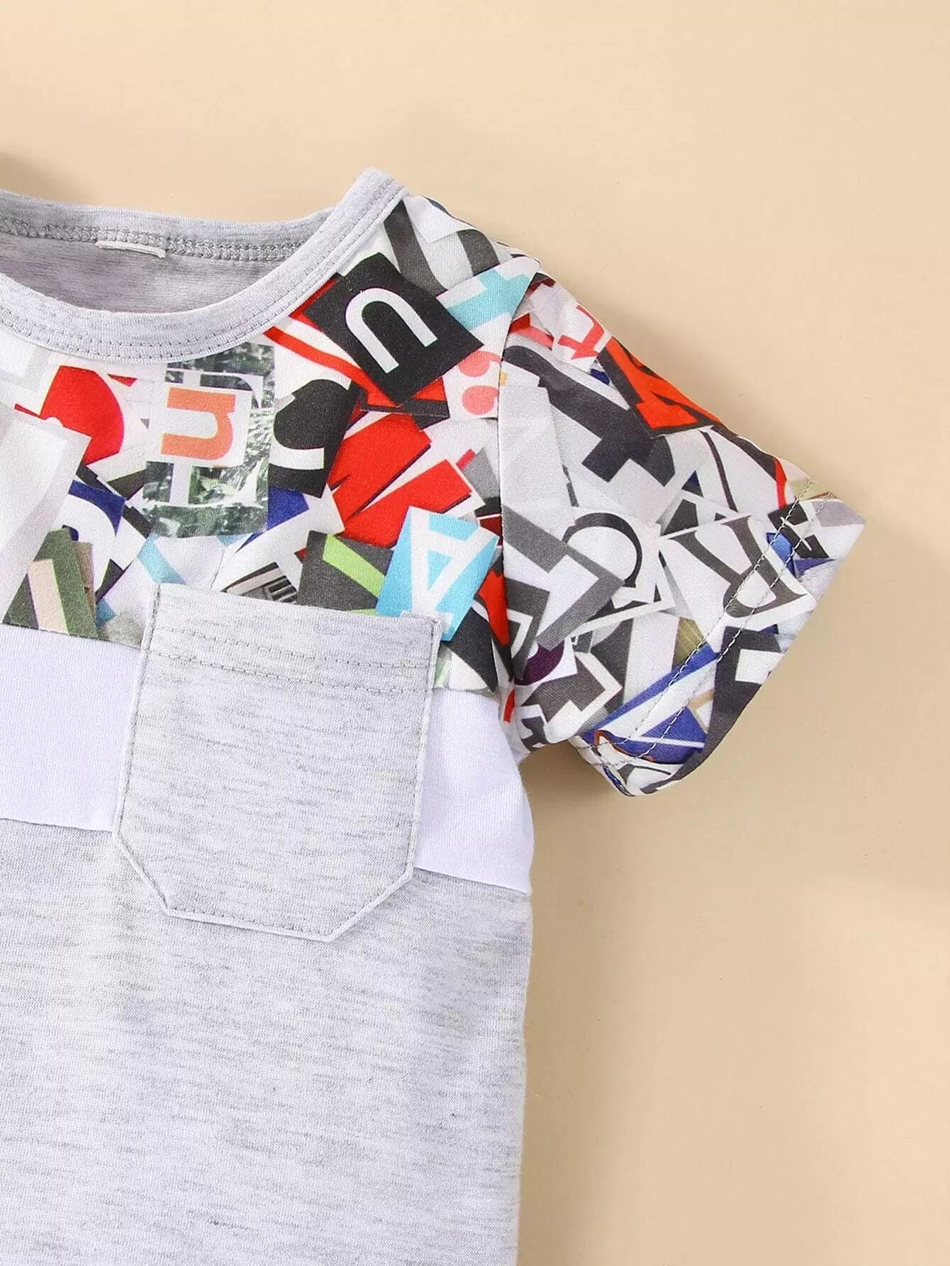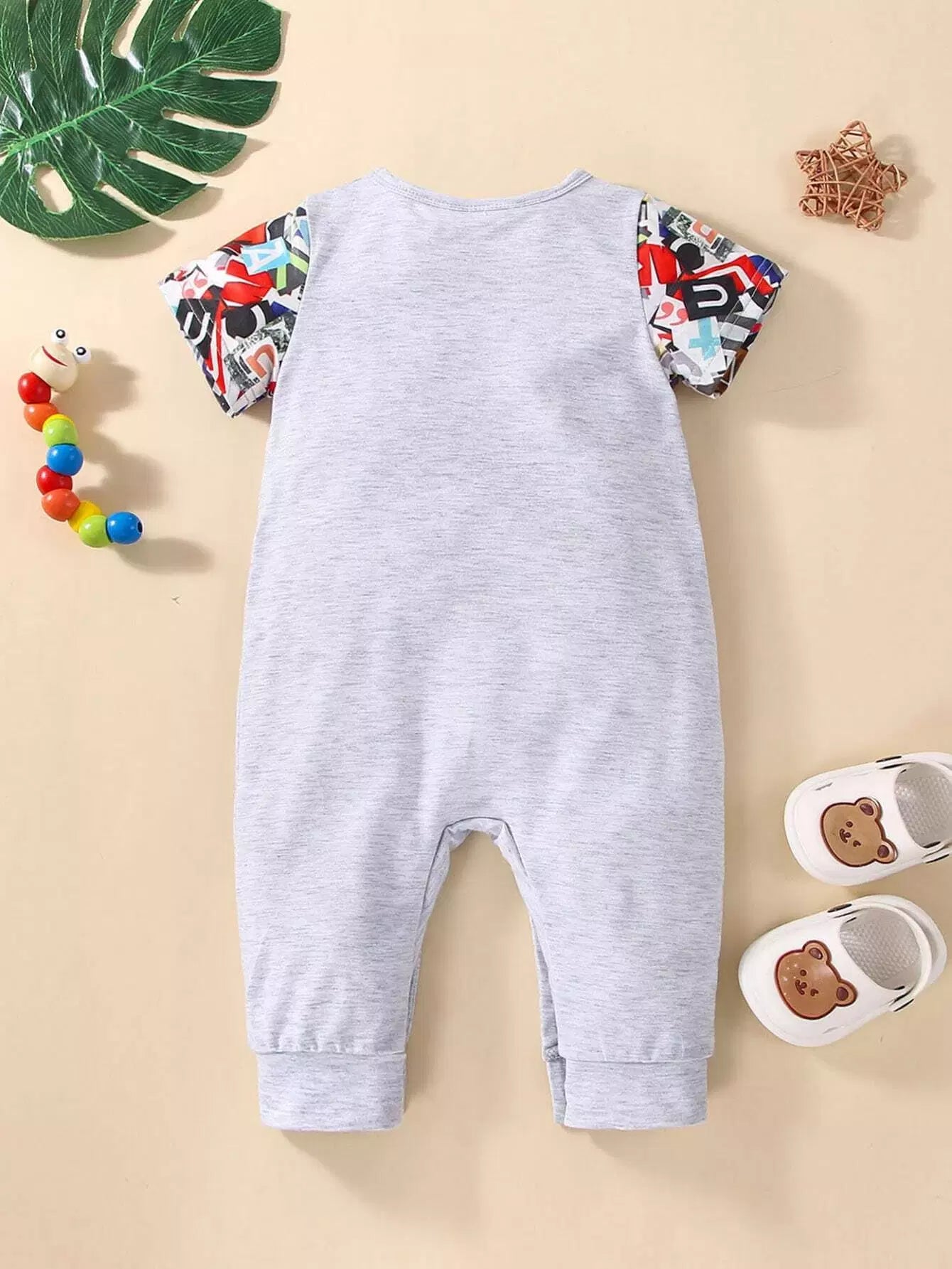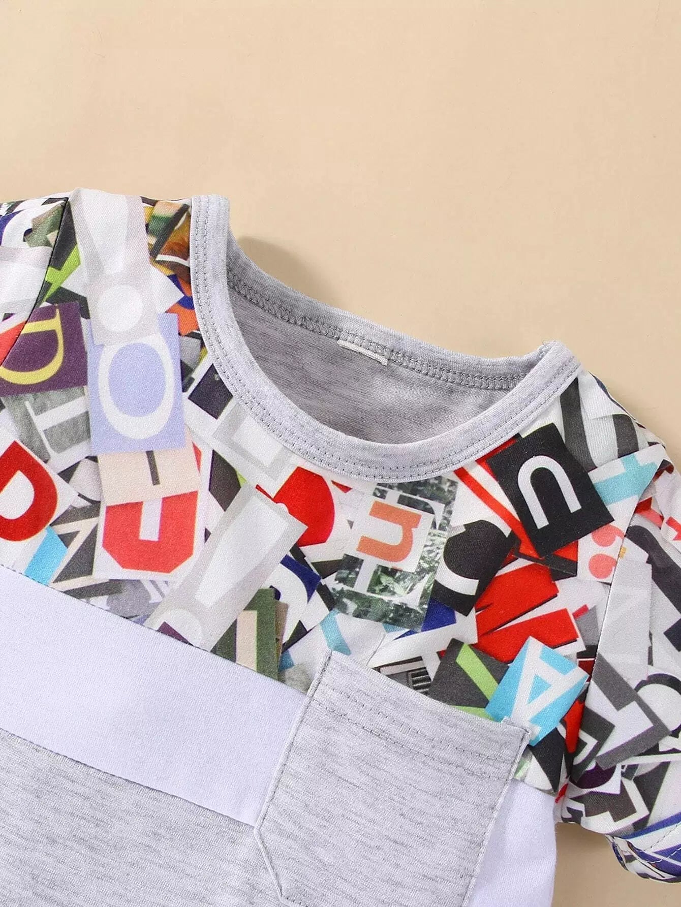 جمبسوت مرقع بجيب مرقع برسوم حروف للأطفال