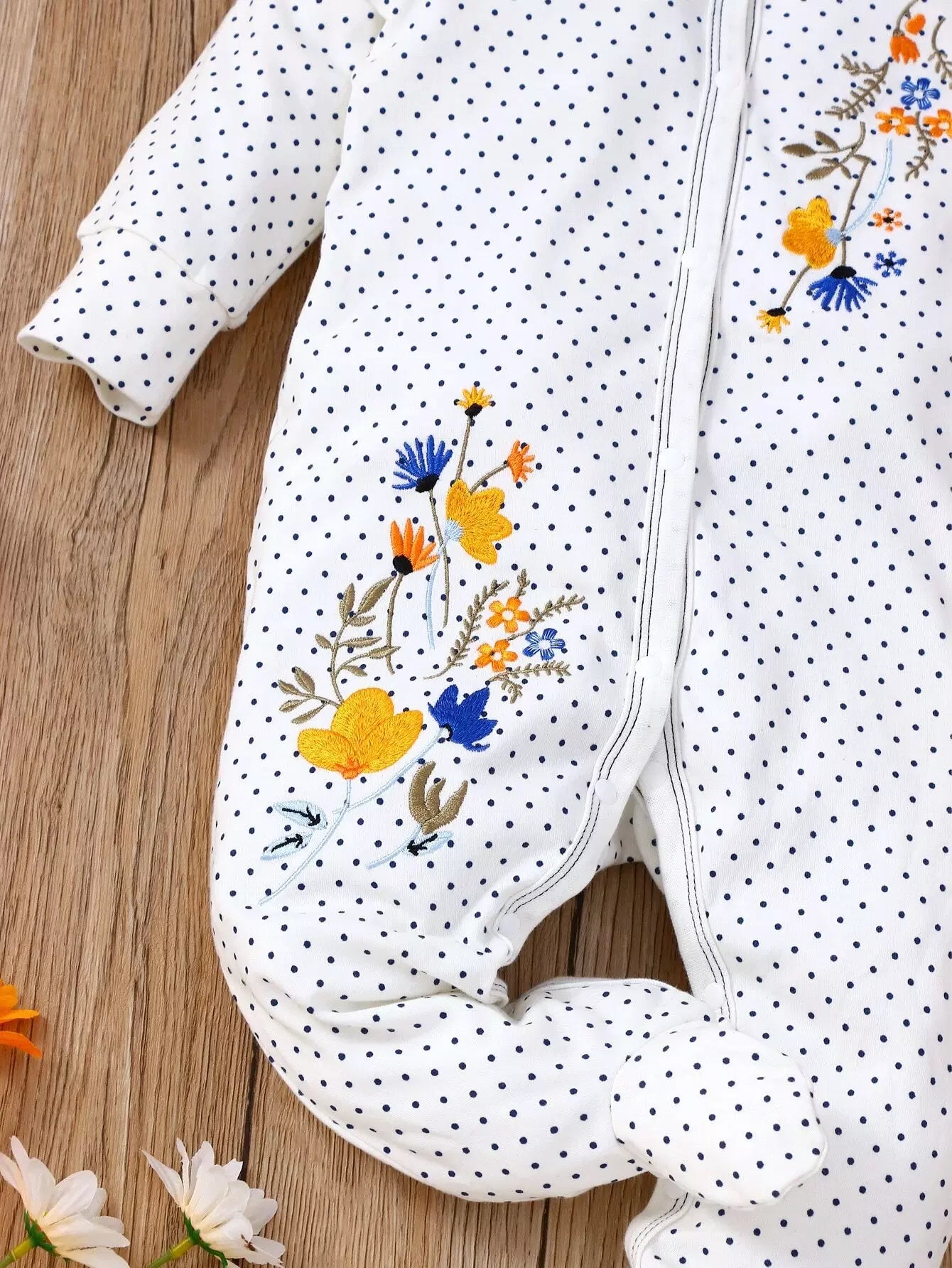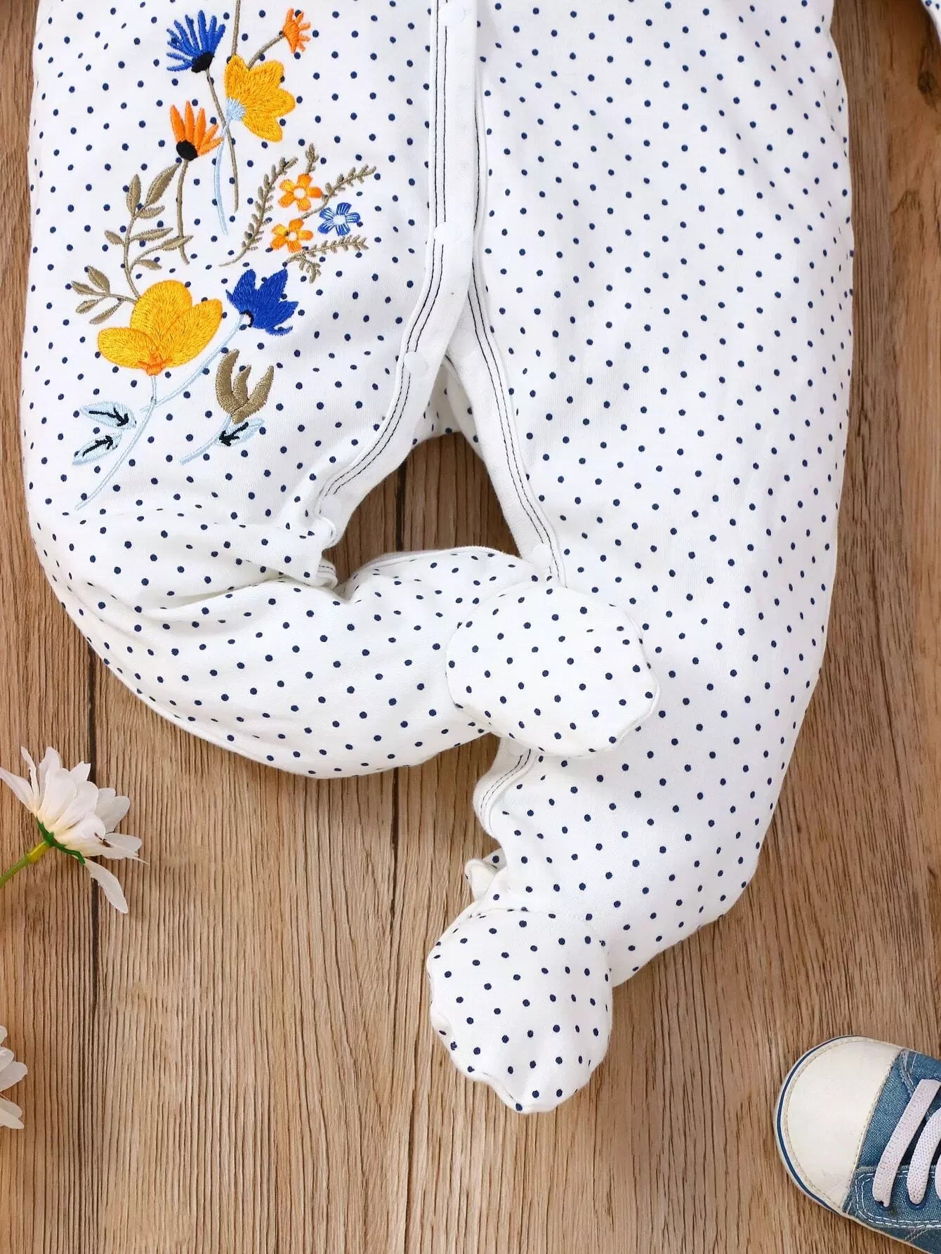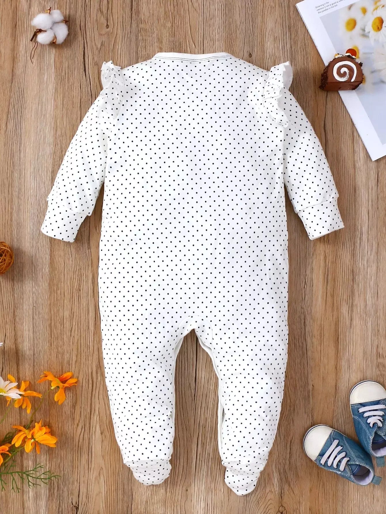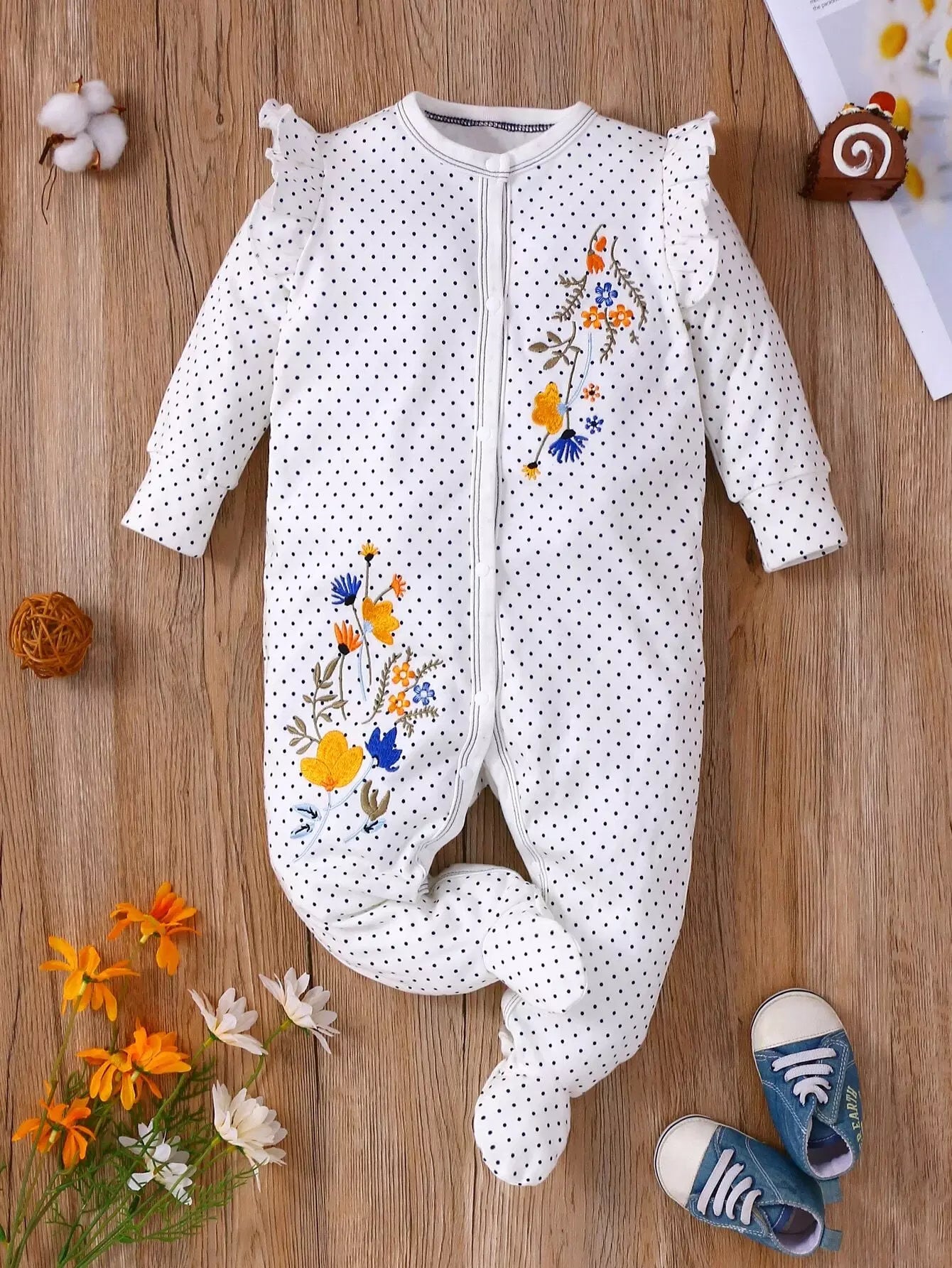 جمبسوت أطفال منقّطة بنقشة زهور ومطرزة بكشكش مزين بكشكش