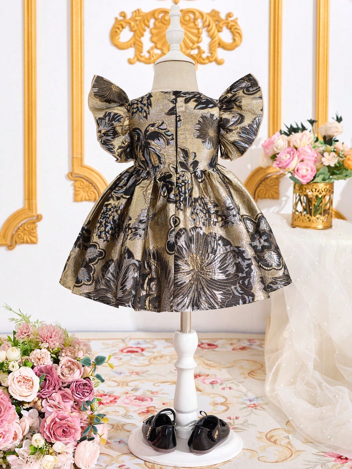 Baby Girl Cute Floral Print Cap Sleeve Party Dress