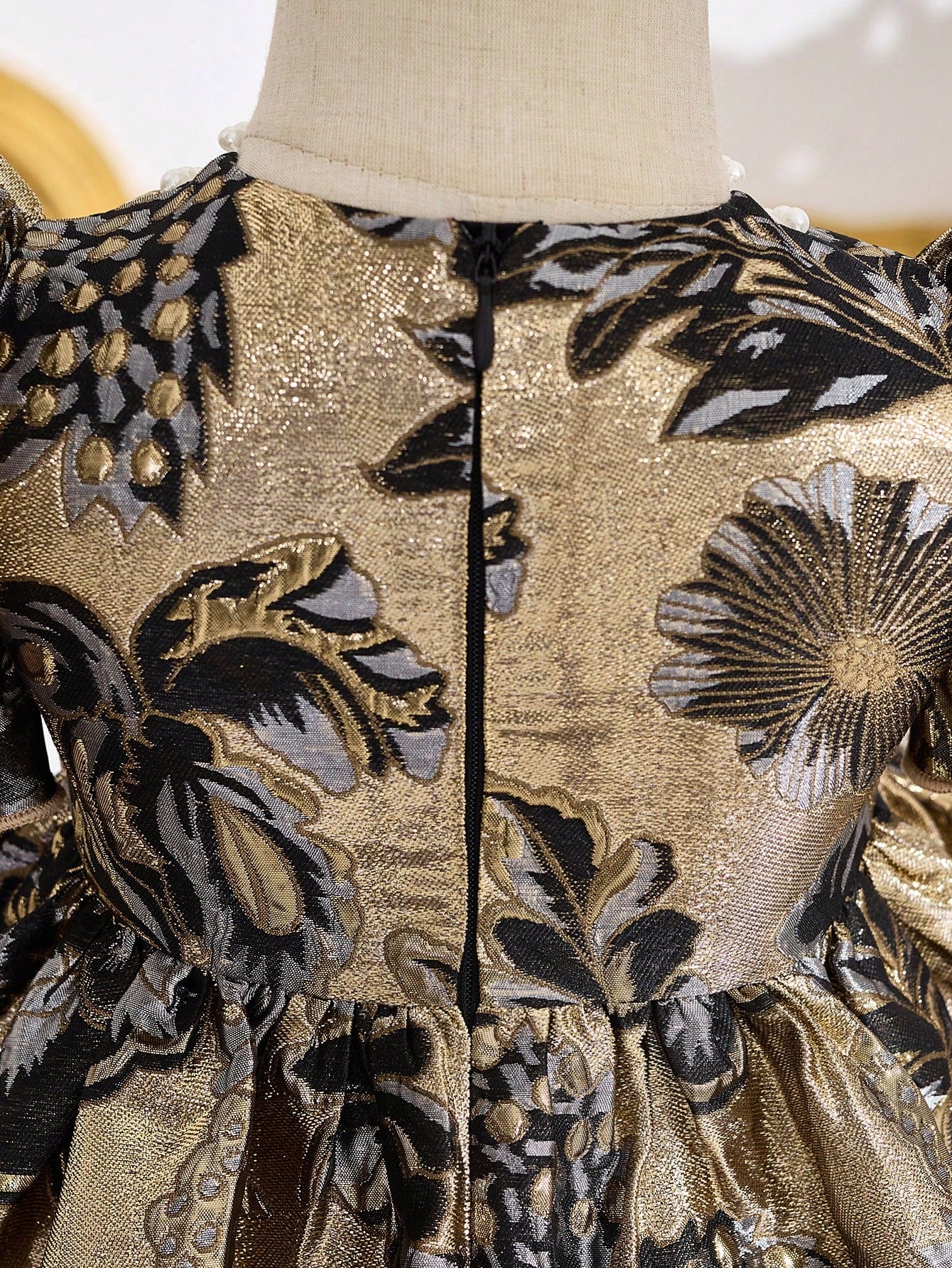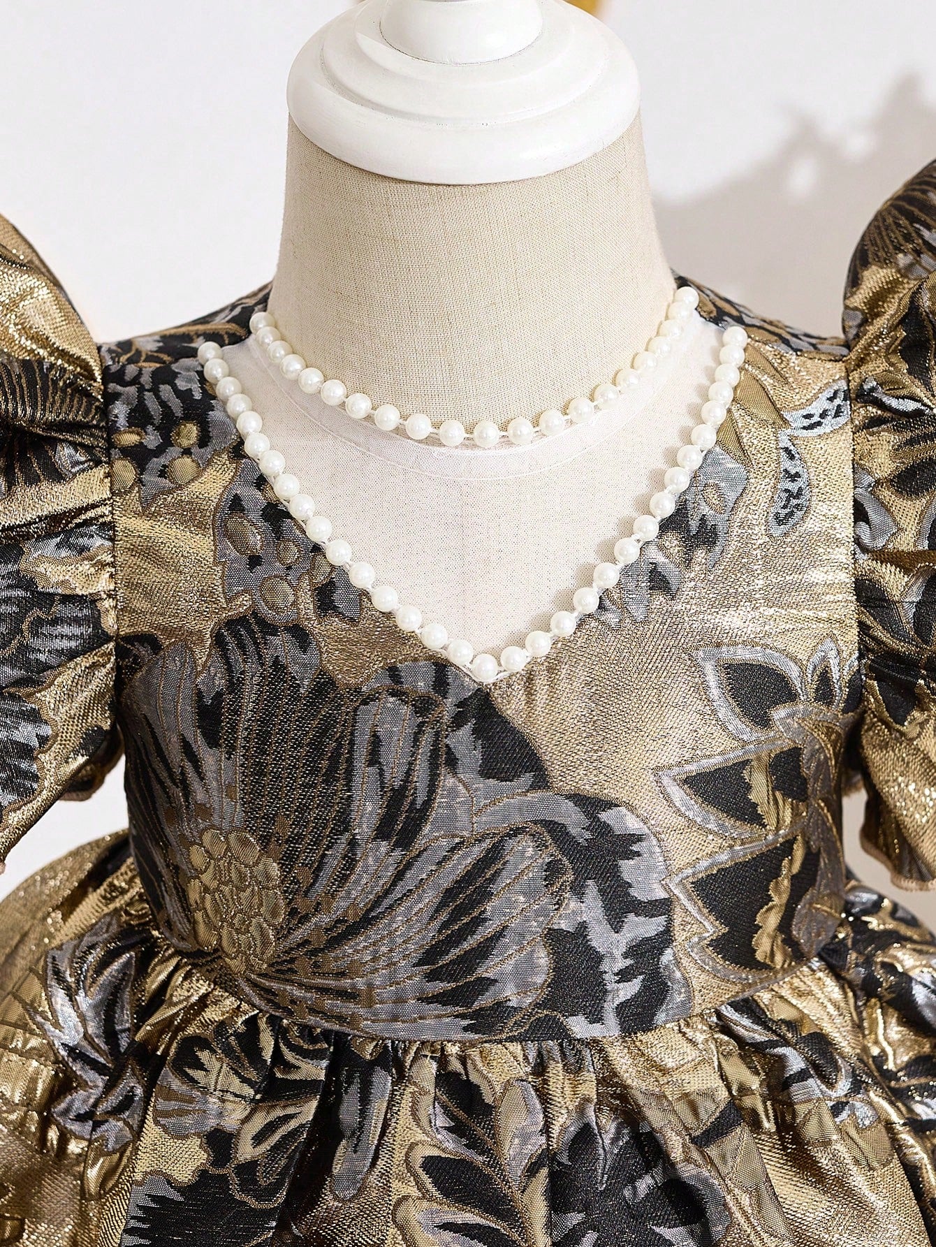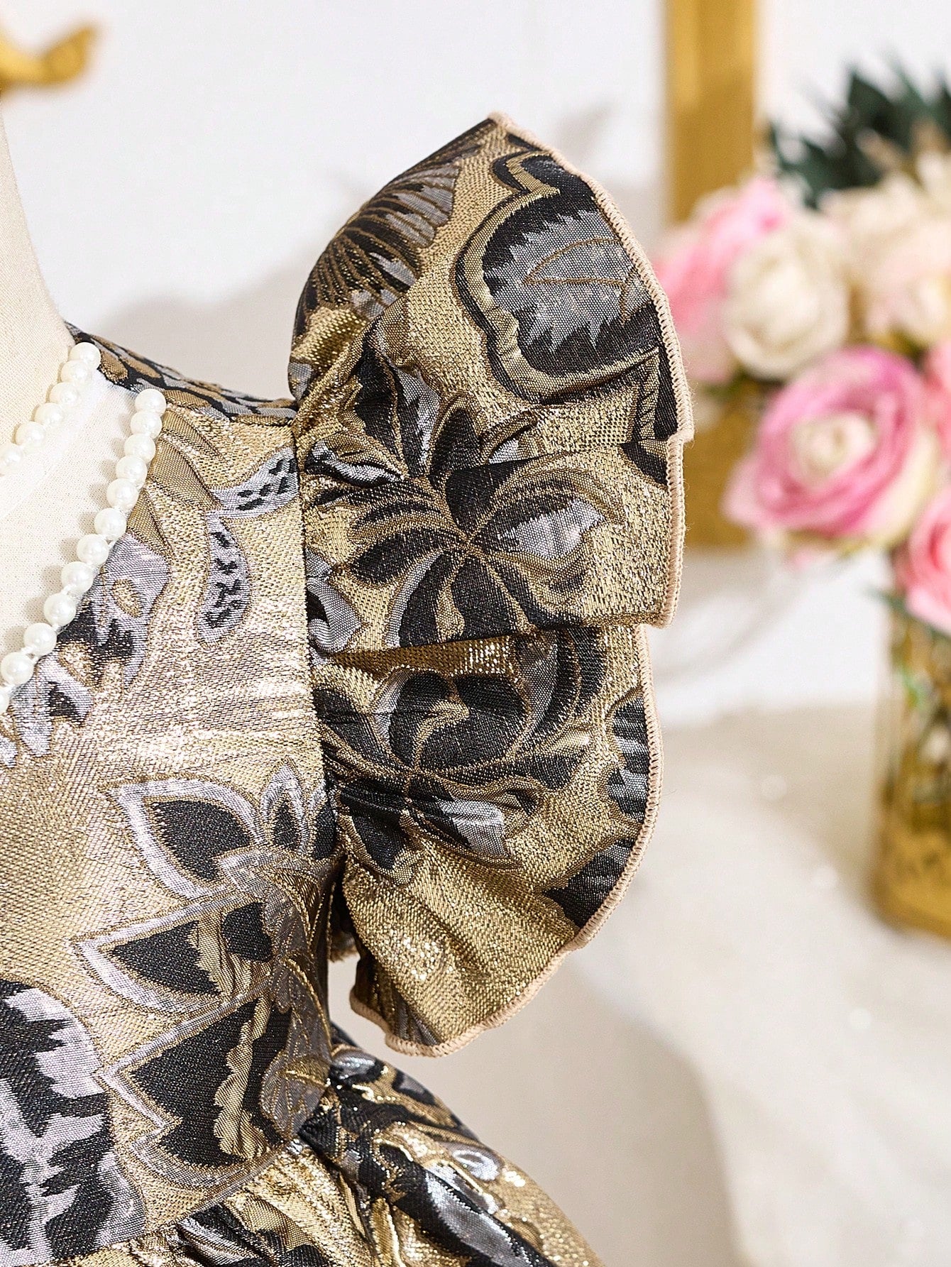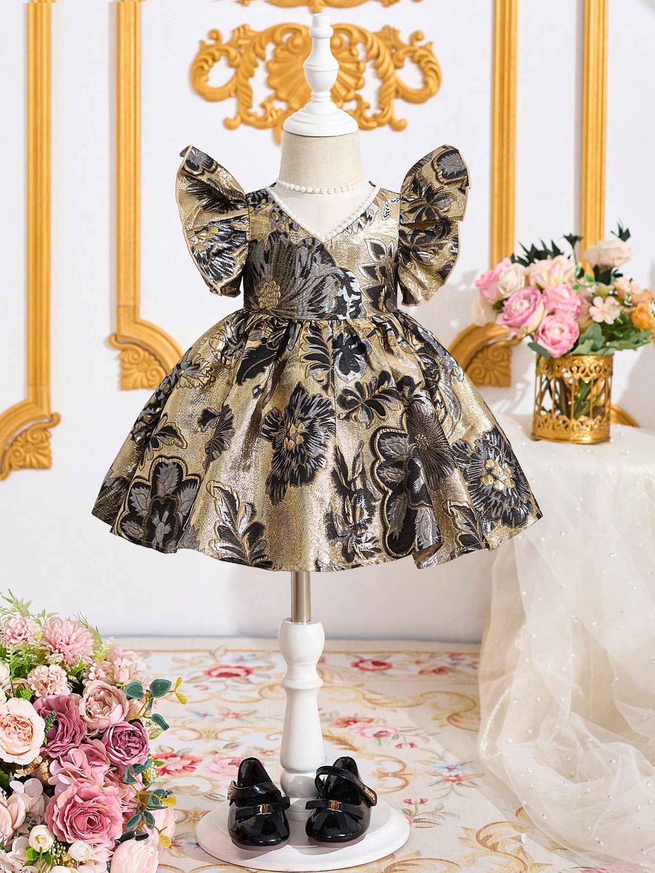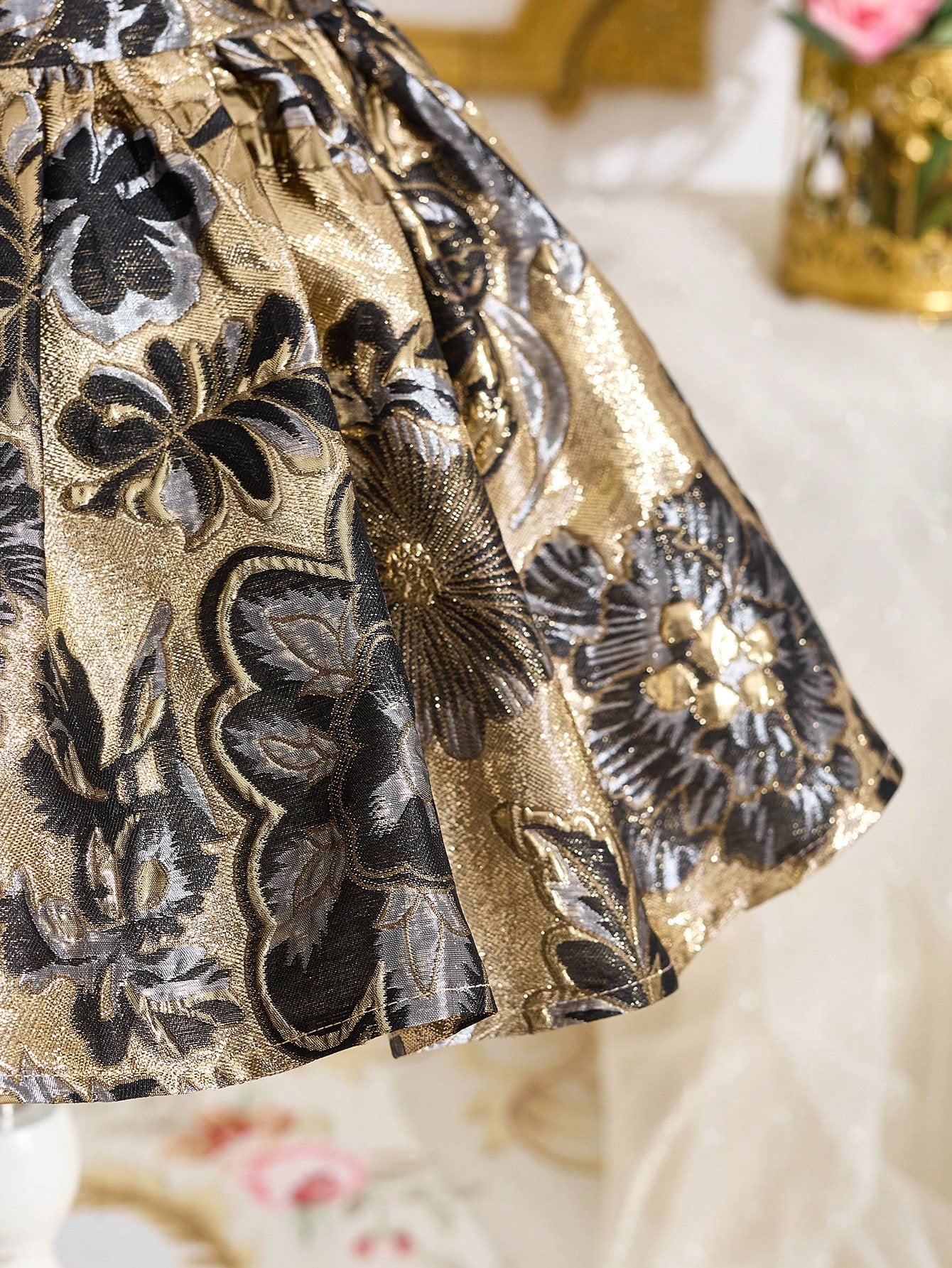 فستان حفلات بأكمام قصيرة وطبعة زهور لطيفة للبنات