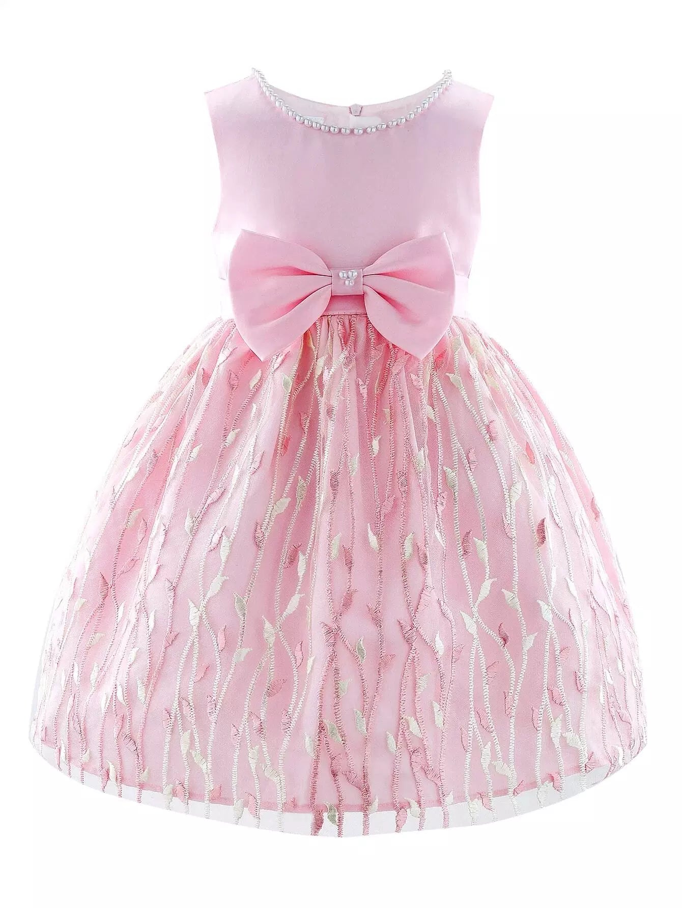 فستان حفلات الأطفال الرضع المطرز بسحّاب من الخلف وتطريز شبكي بحافة شبكية