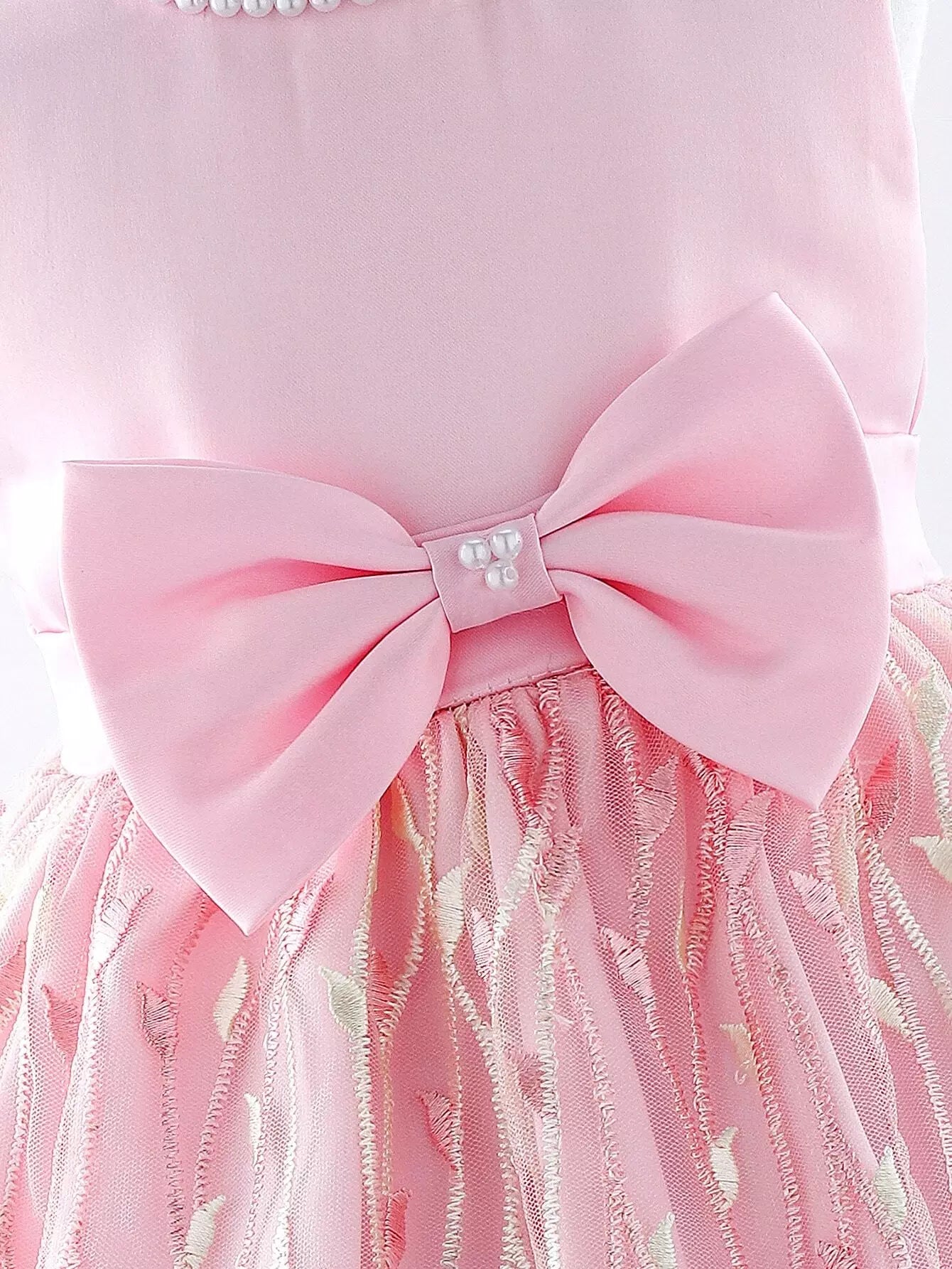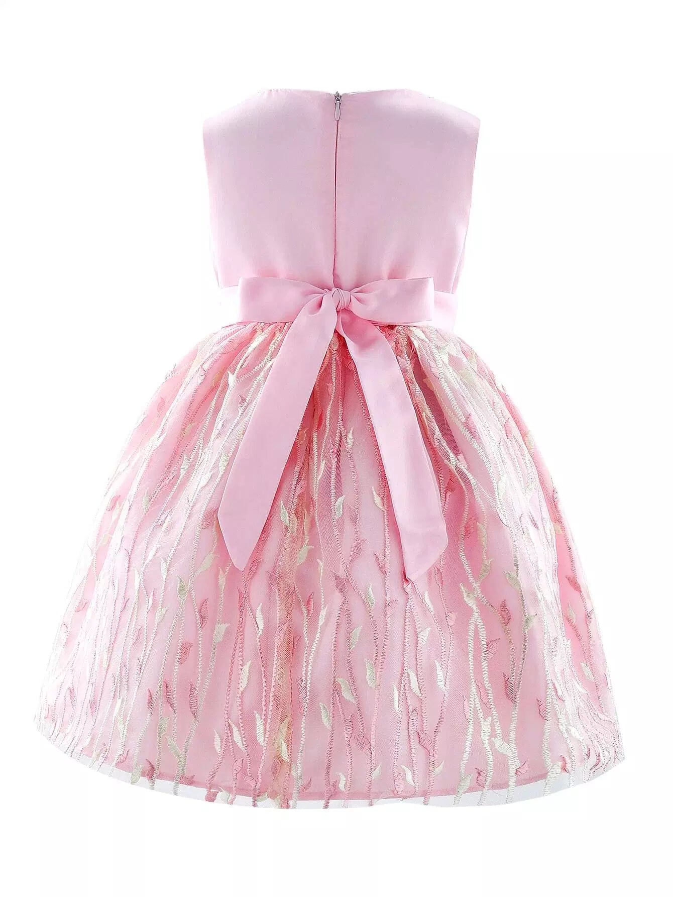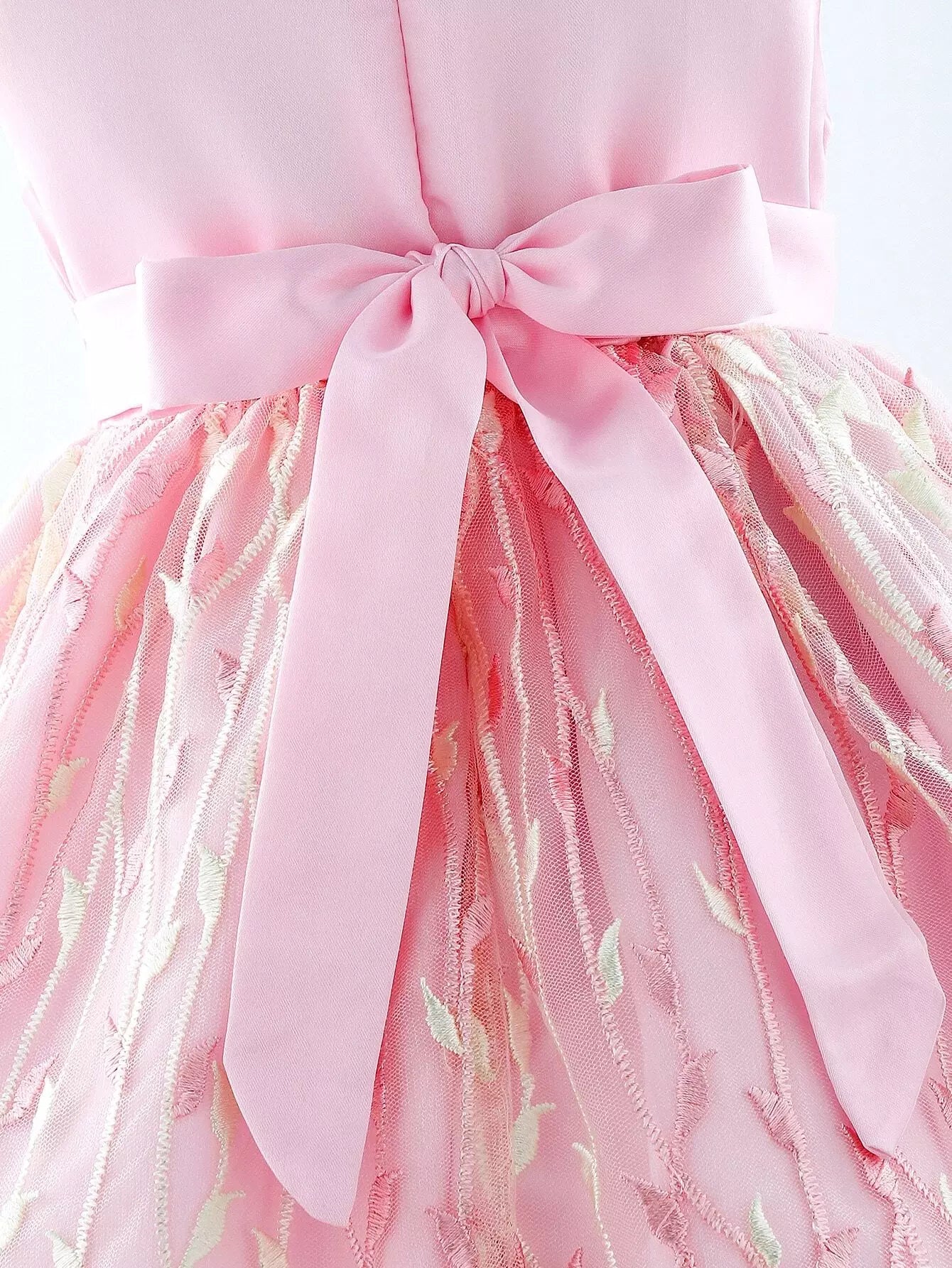 الأطفال - فستان حفلات بحاشية شبكية مطرزة بسحاب خلفي للأطفال