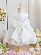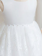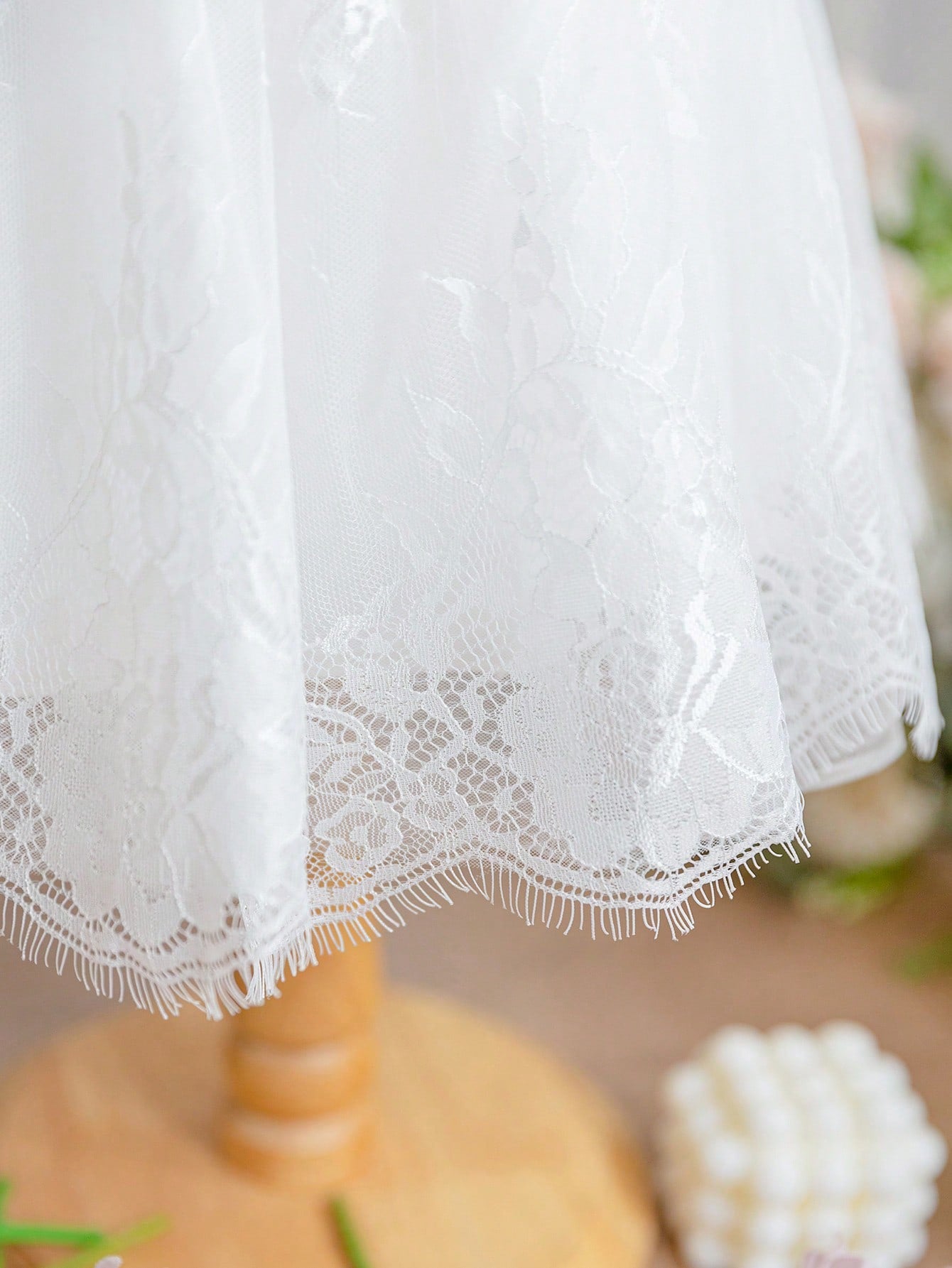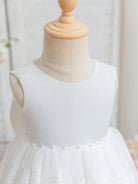 Glamorique Kids White Lace Trim Mesh Satin Flower Girl Dress, Wedding Guest Party Birthday Evening Gown