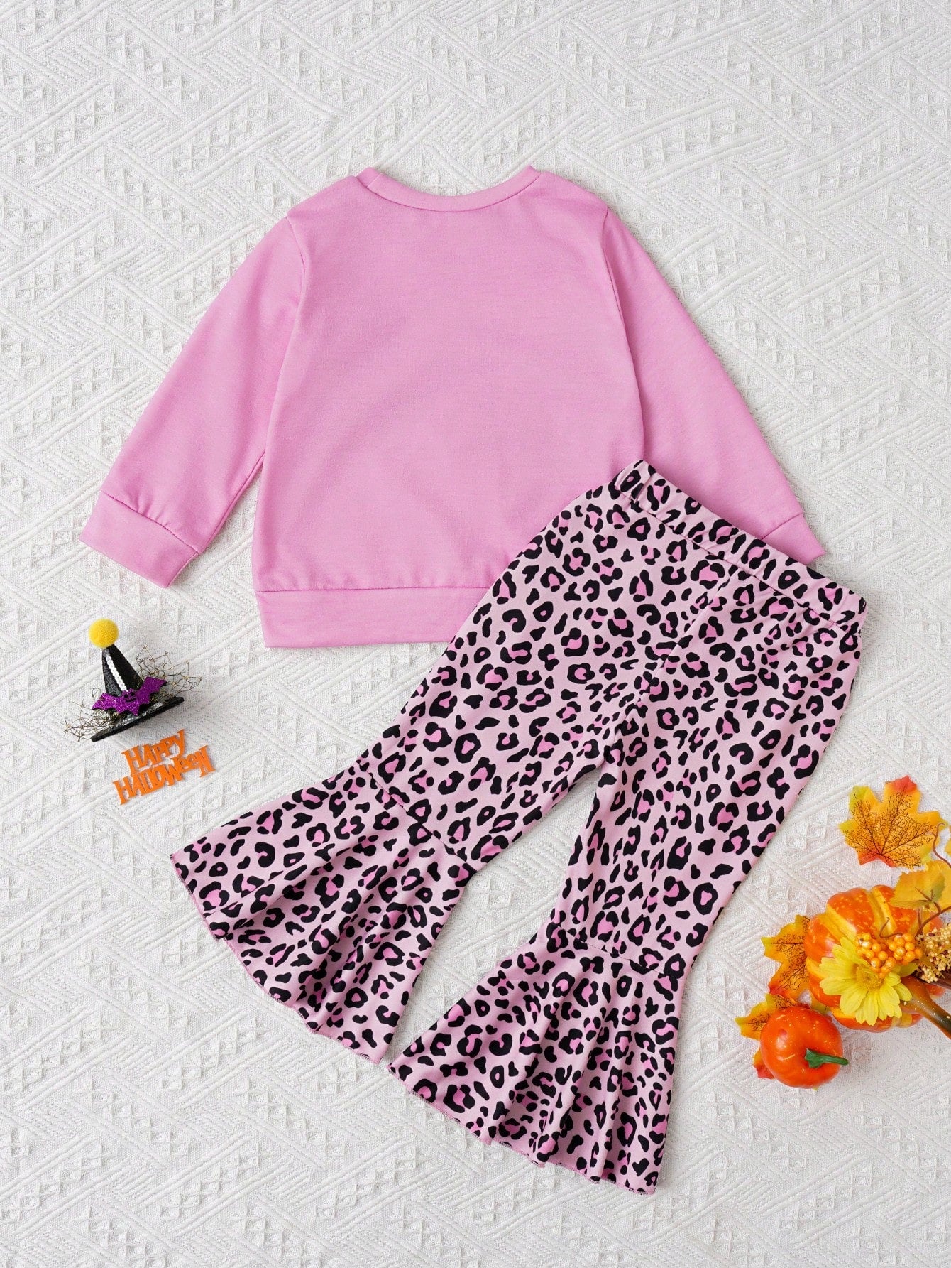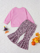 2pcs Baby Girls' Autumn Fun Printed Long Sleeve Top & Leopard Flared Pants Set For Daily Casual Wear