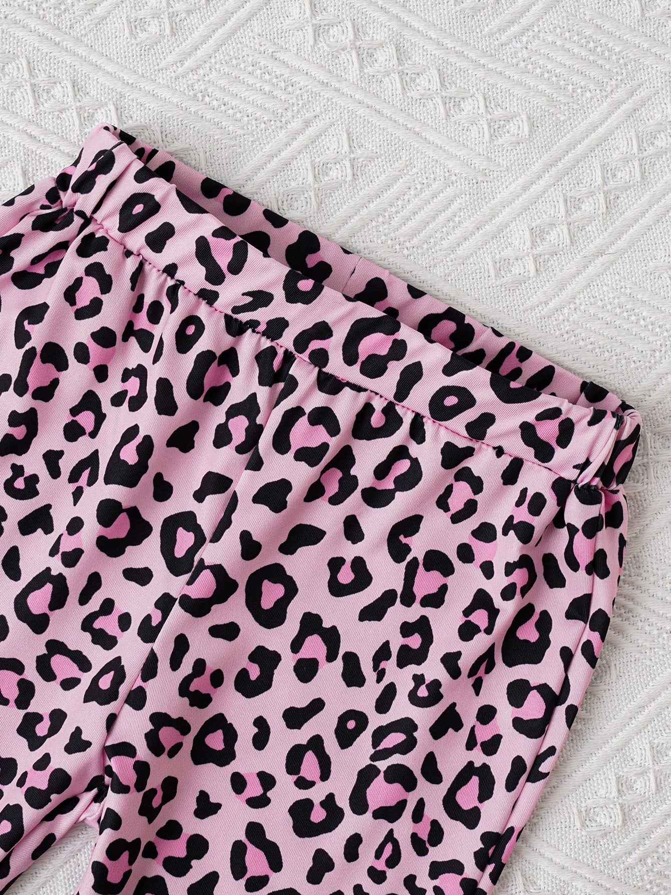 طقم من قطعتين من توب بأكمام طويلة وبنطال واسع بنقشة جلد النمر للفتيات الصغيرات، مناسب للارتداء اليومي غير الرسمي