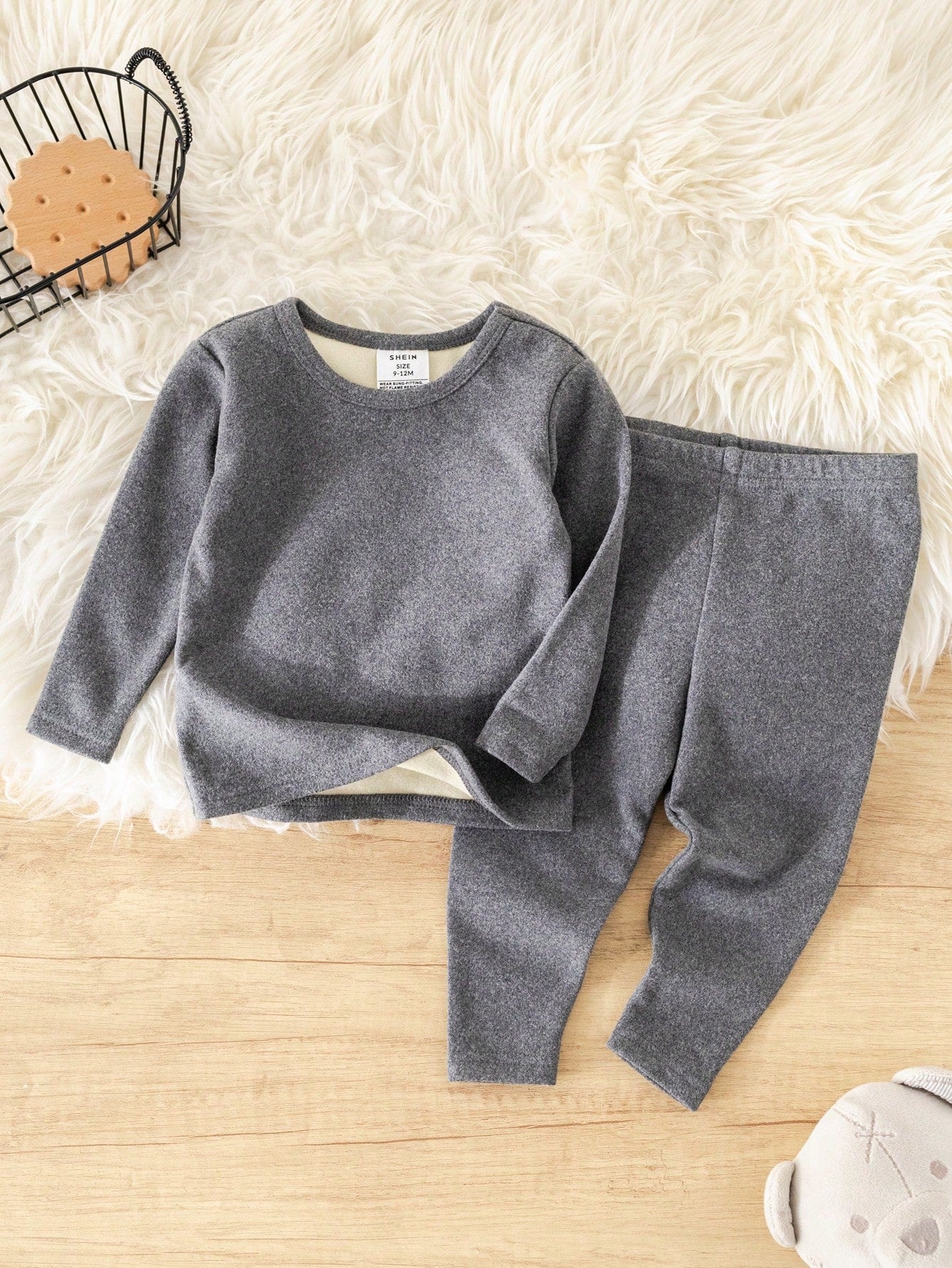 2pcs/Set Baby Boy Casual Round Neck Long Sleeve Jumpsuit, Soft Comfortable Skin-Friendly Tight Fitting