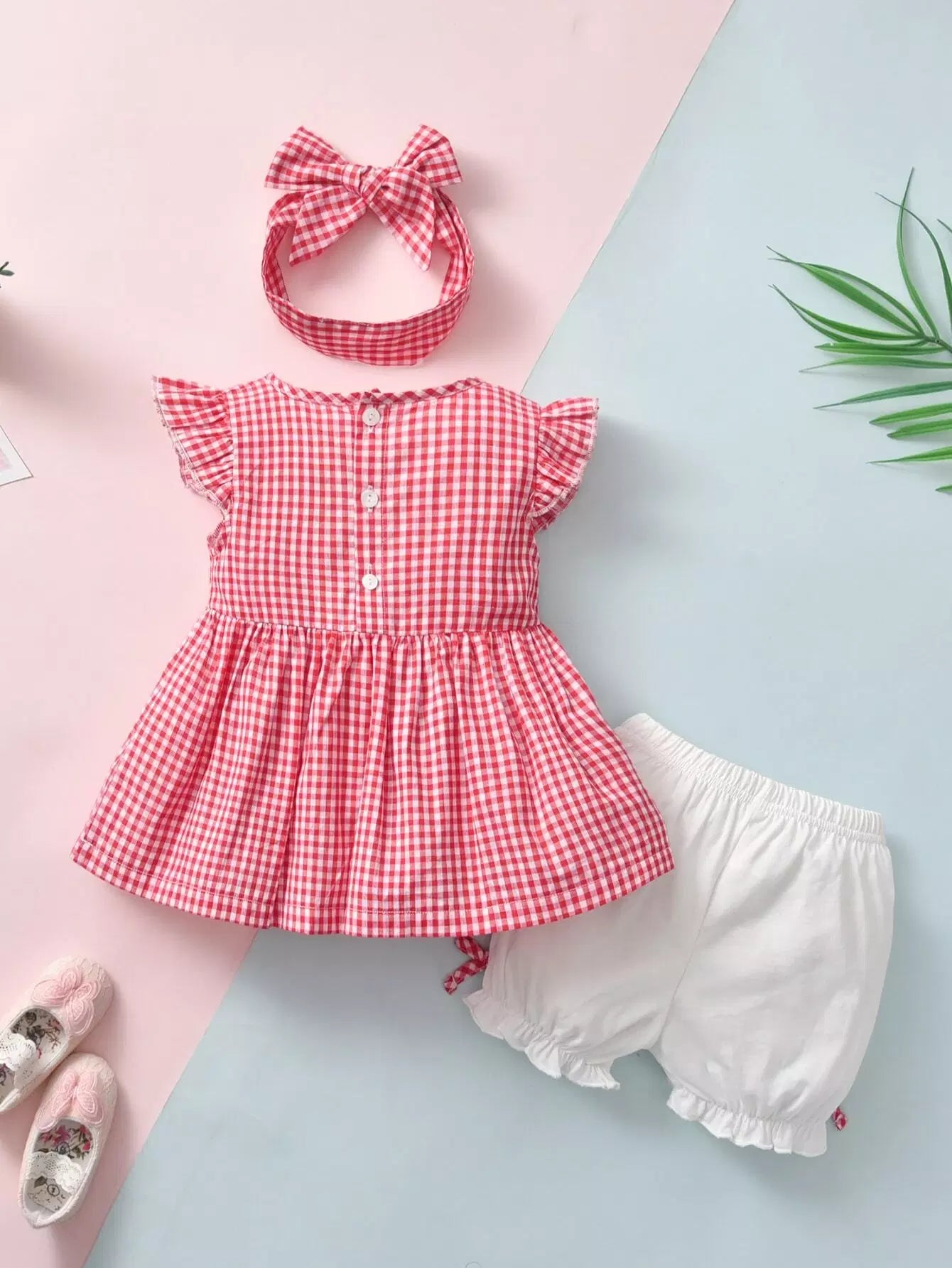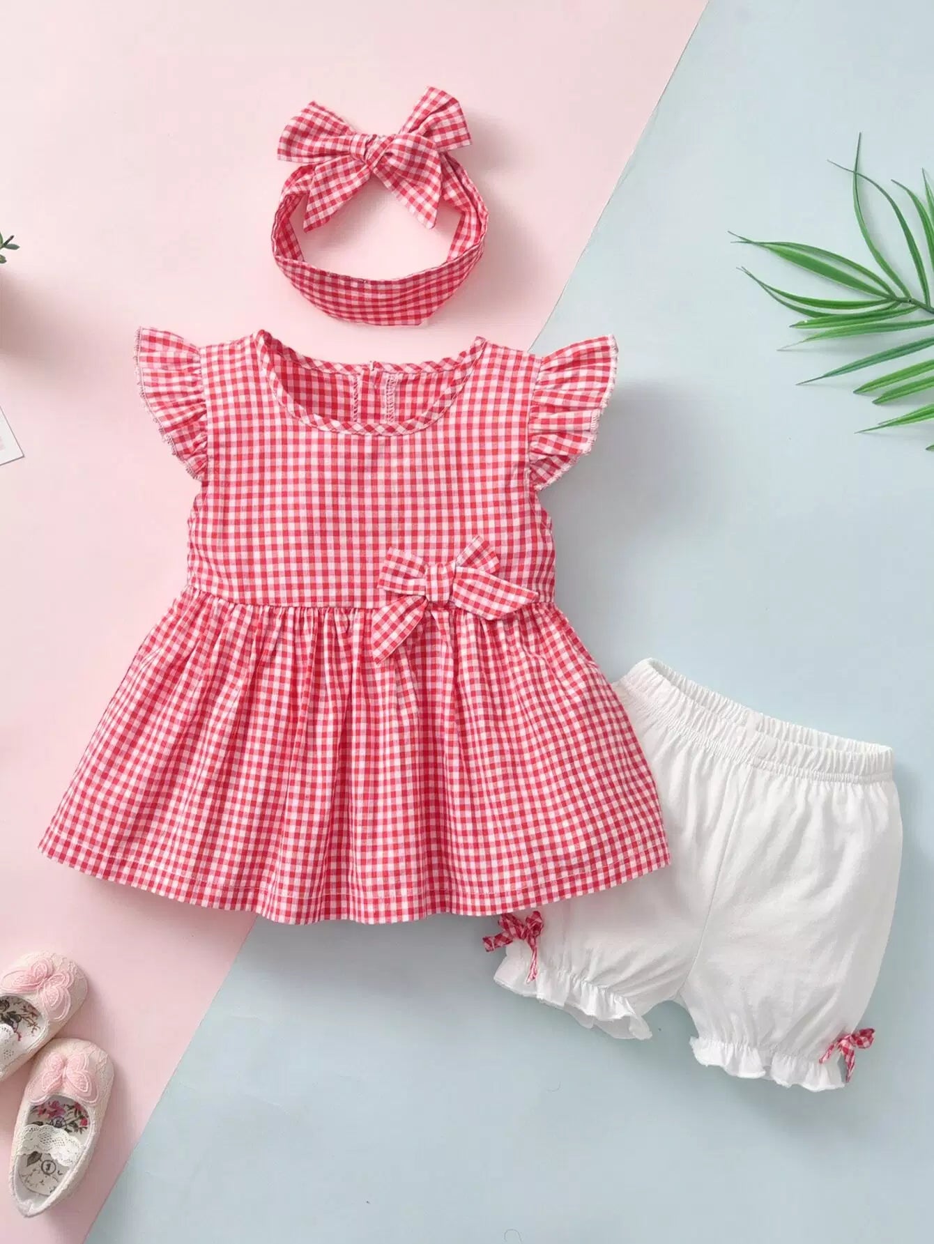 بلوزة وشورت قصير وعصابة رأس بعقدة أمامية من القماش القطني للطفلة الرضيعة