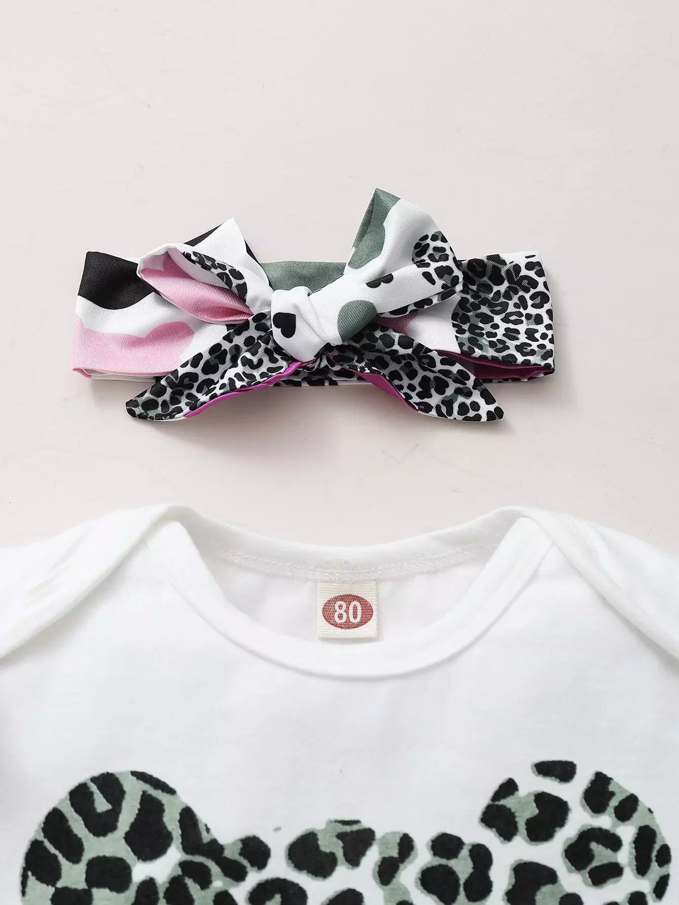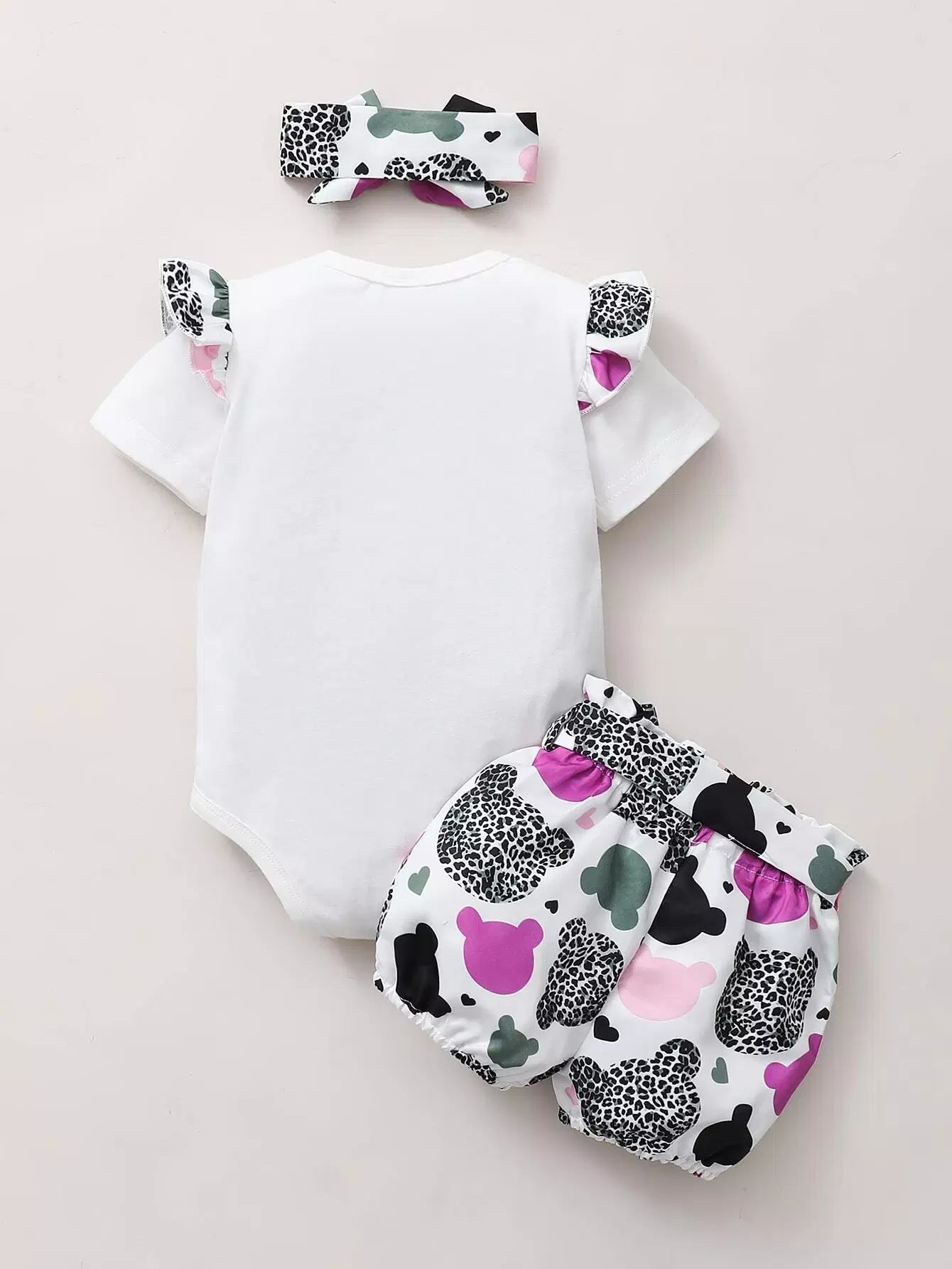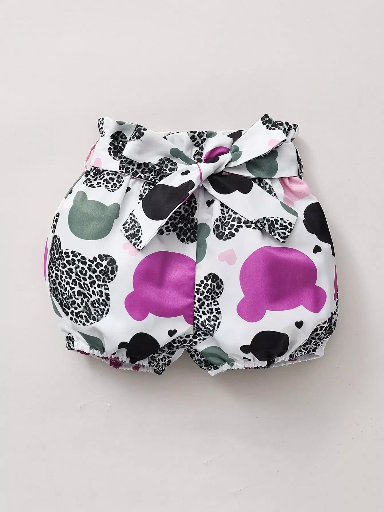 بدلة وسروال قصير وعصابة رأس برسوم كارتونية للفتيات الصغيرات بدون حزام
