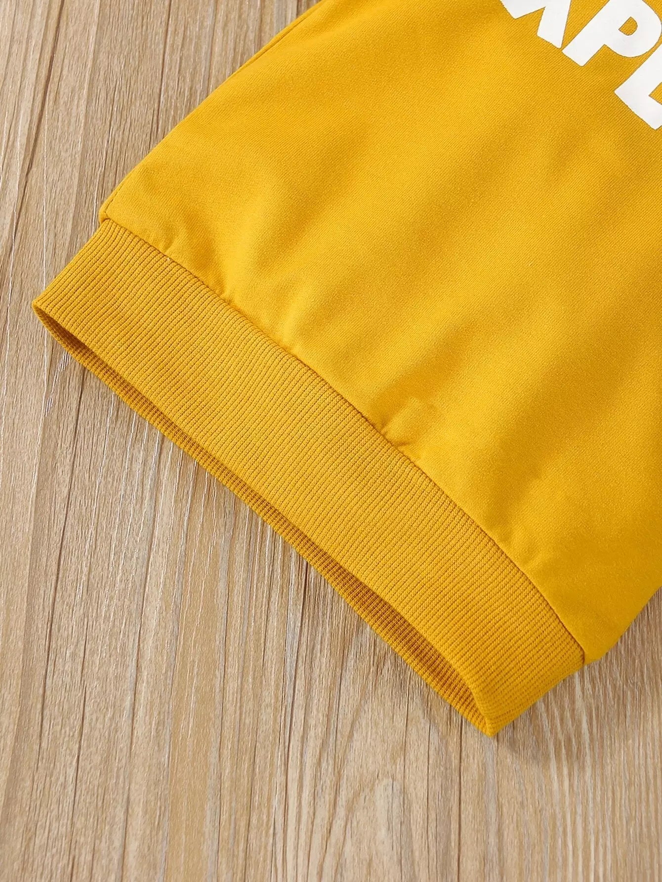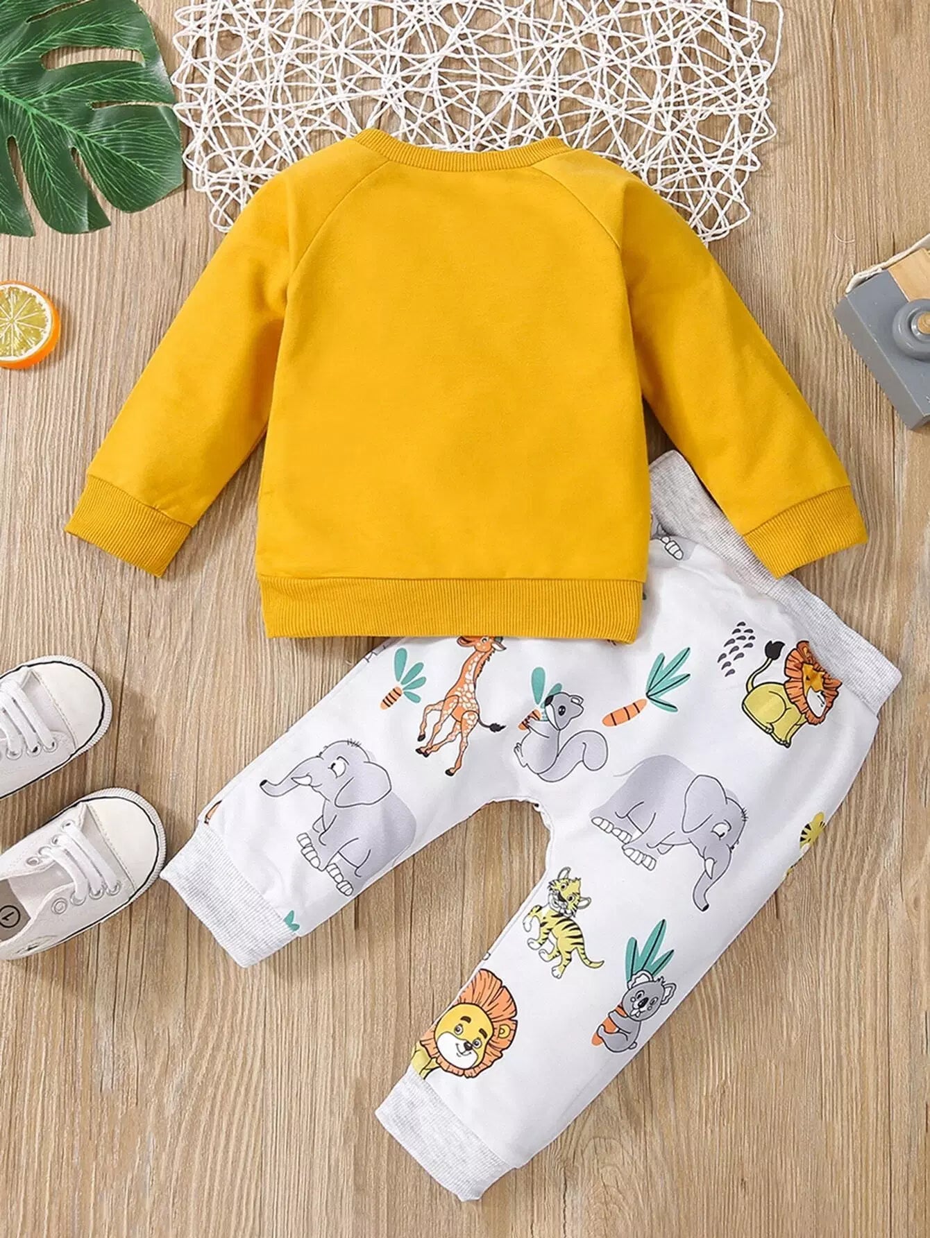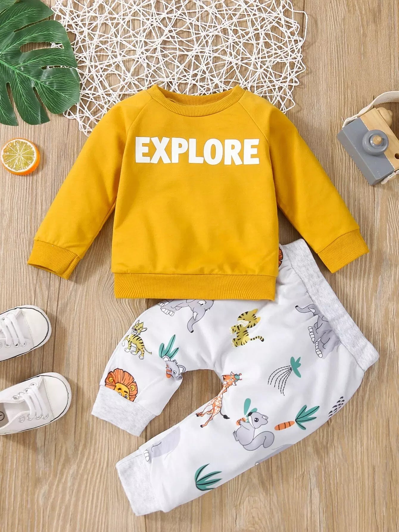 سويت شيرت بأكمام راجلان برسومات حروف للأطفال وبنطال رياضي برسومات كرتونية