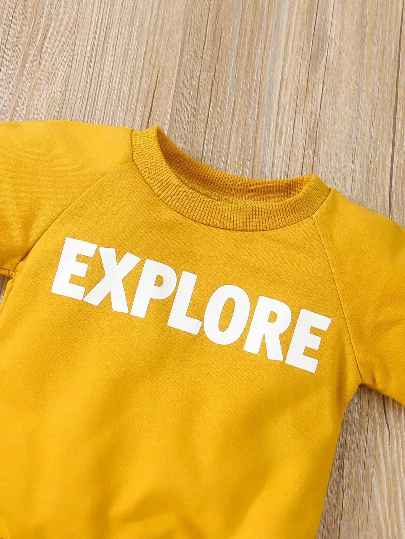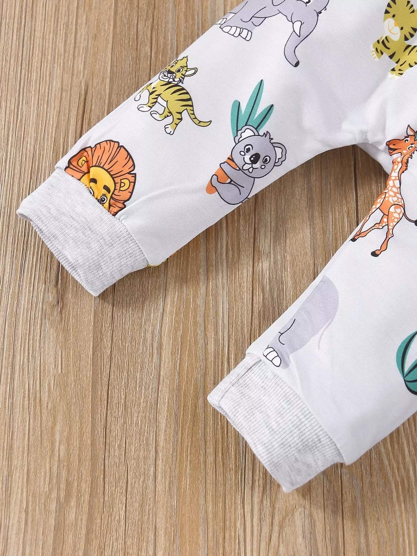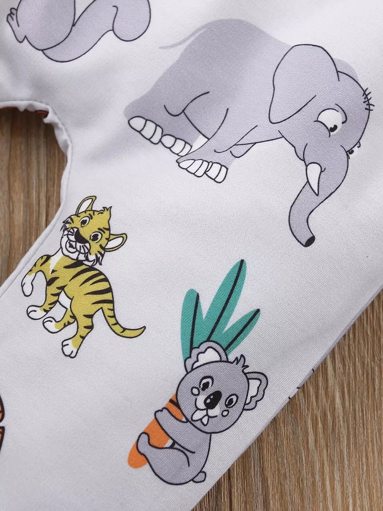 سويت شيرت بأكمام راجلان برسومات حروف للأطفال وبنطال رياضي برسومات كرتونية