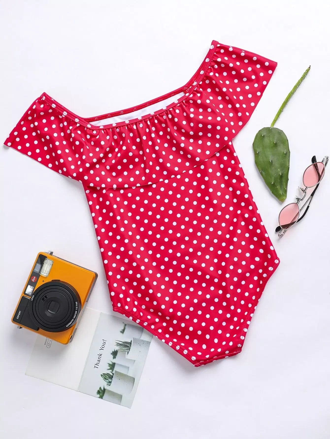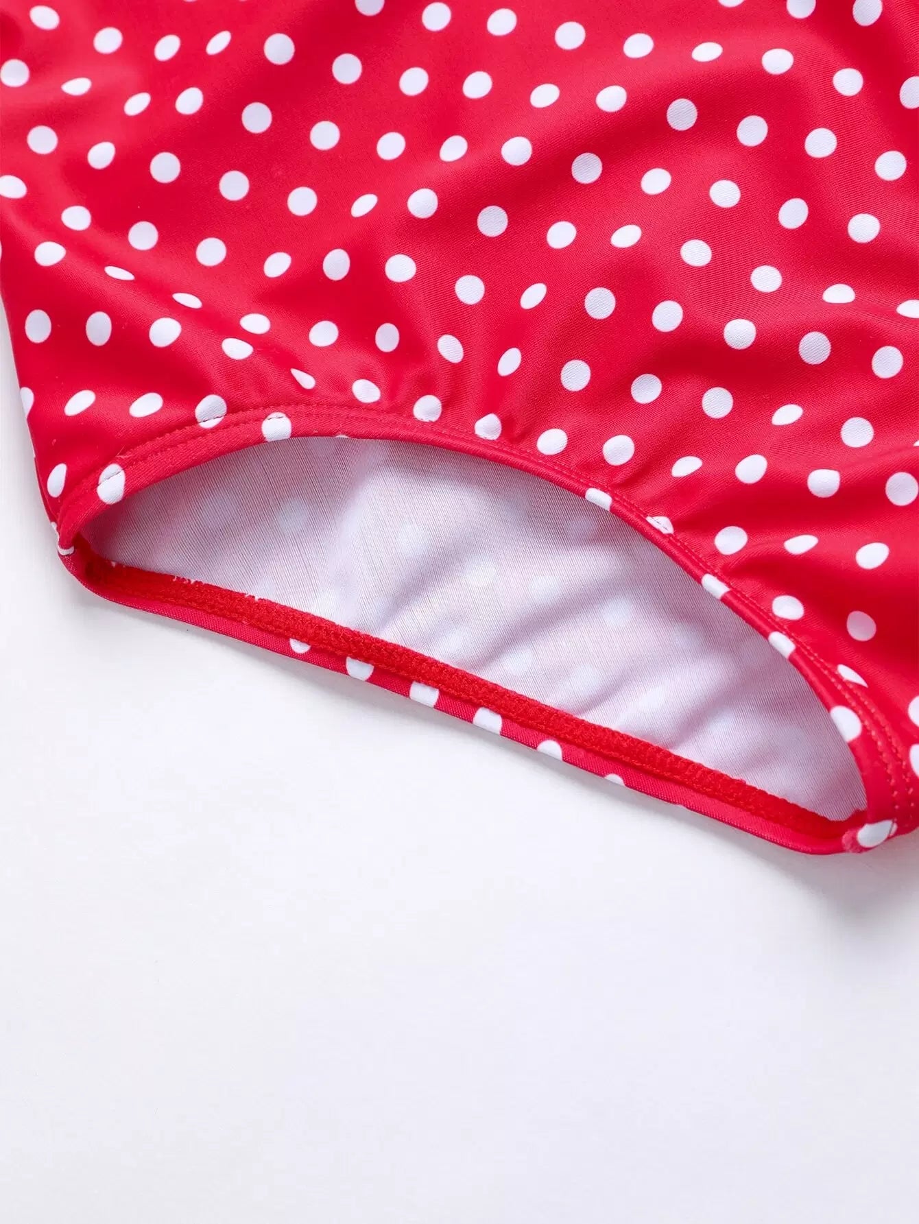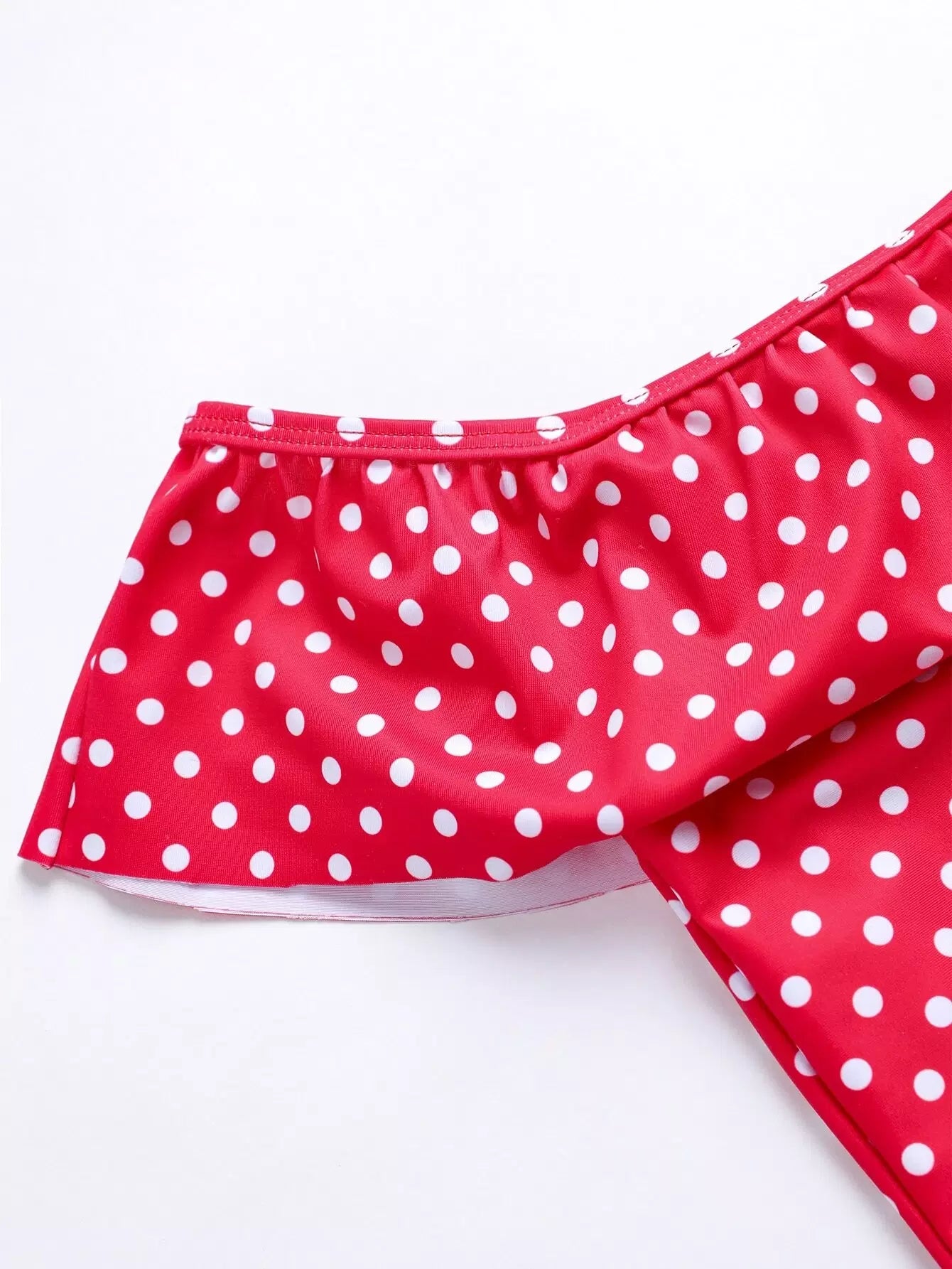 بدلة سباحة بقطعة واحدة مكشكشة منقطة للطفلة الرضيعة