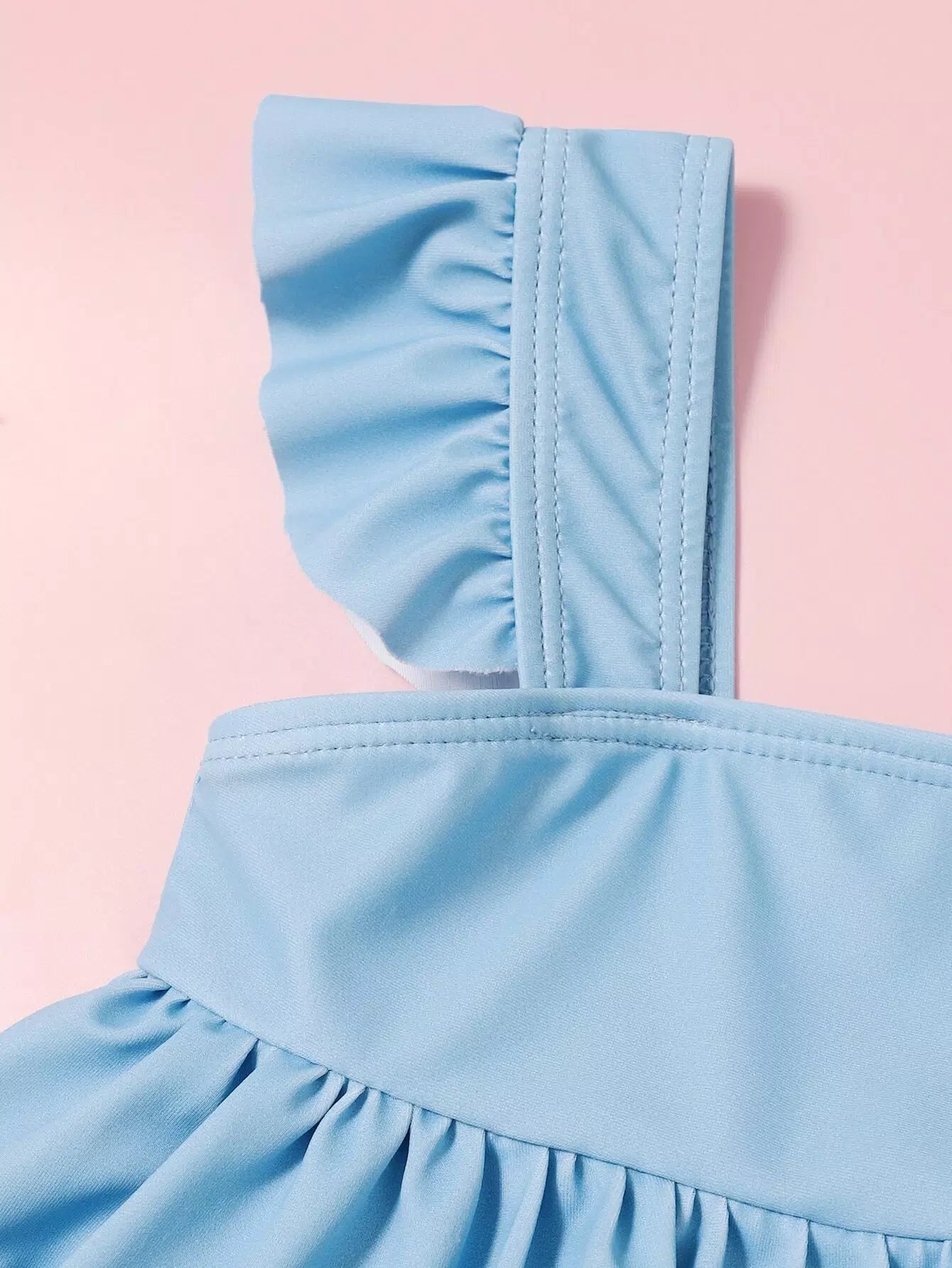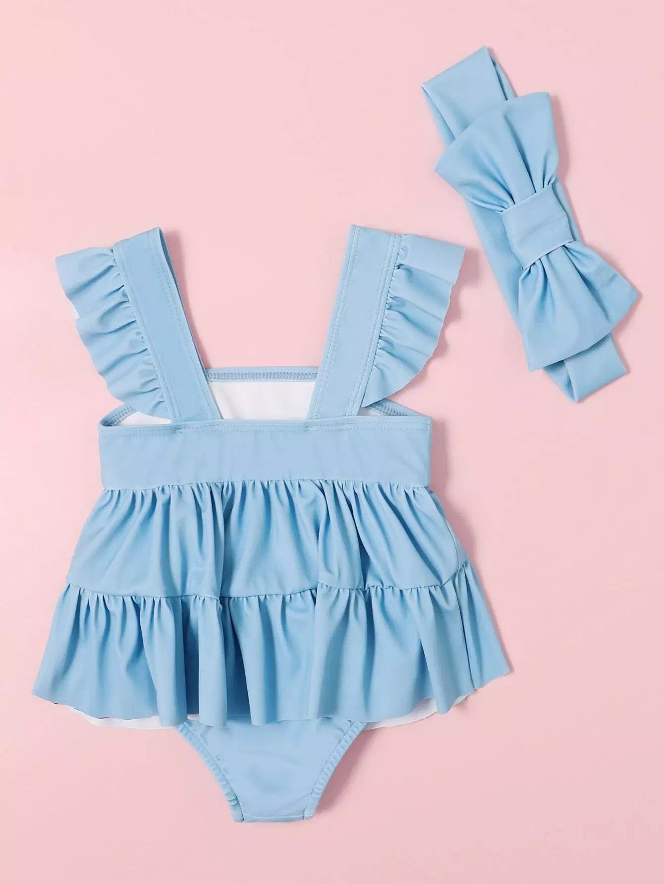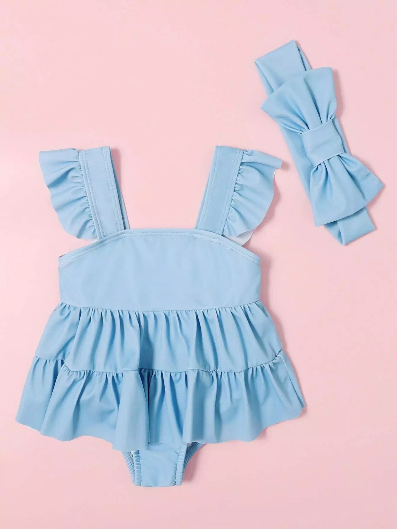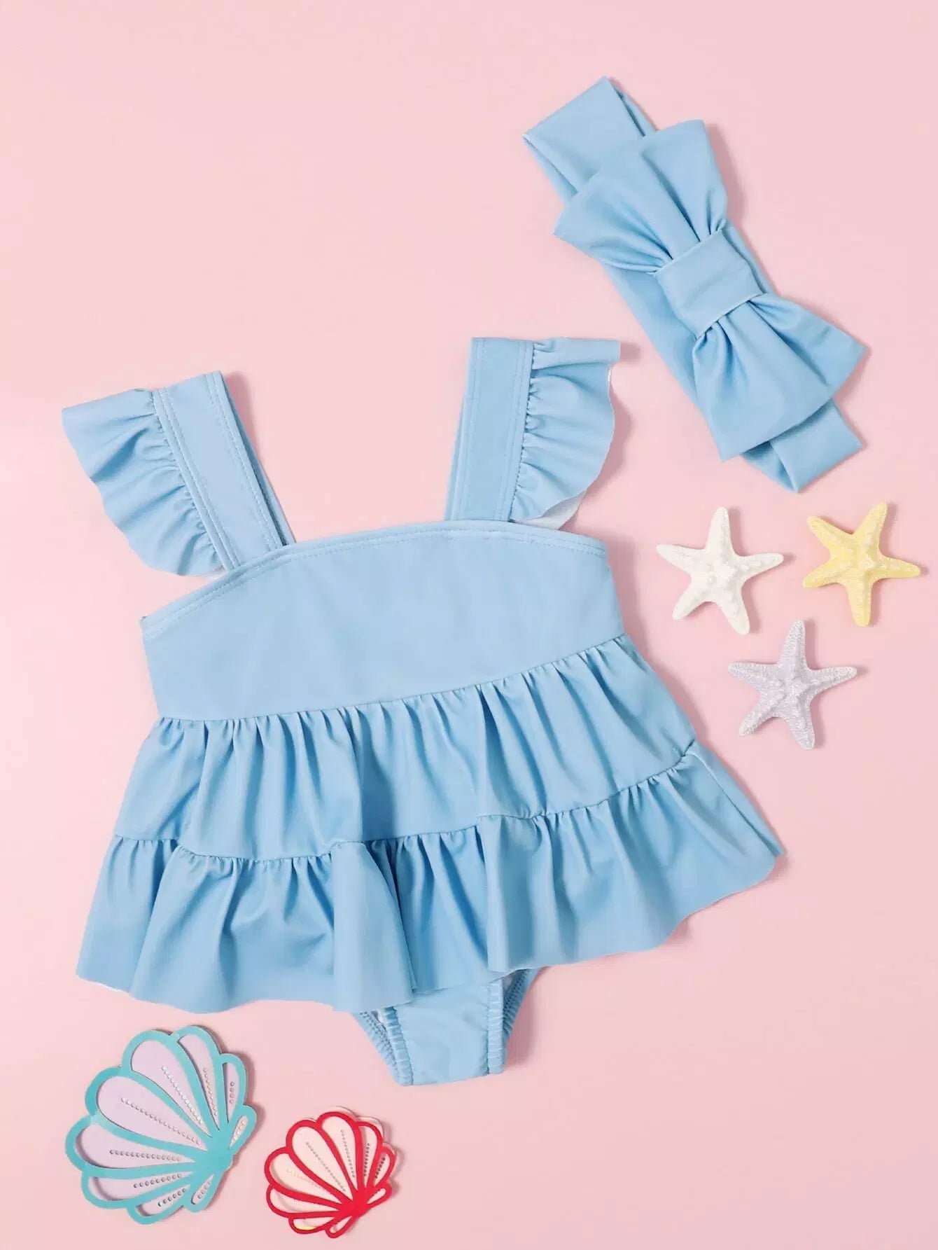 بدلة سباحة بقطعة واحدة مكشكشة للطفلة الرضيعة وعصابة رأس
