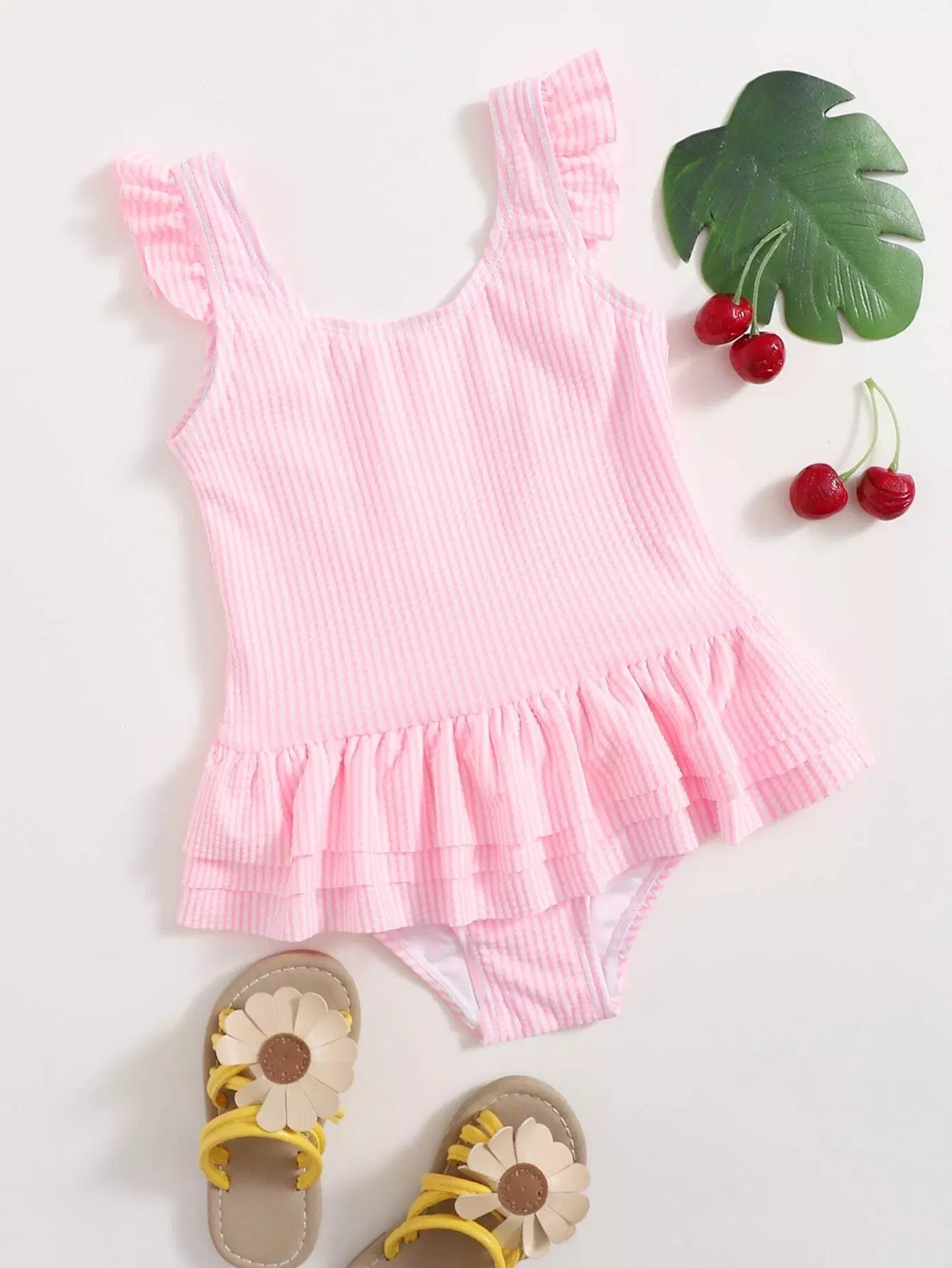 بدلة سباحة بقطعة واحدة مكشكشة للطفلة الرضيعة