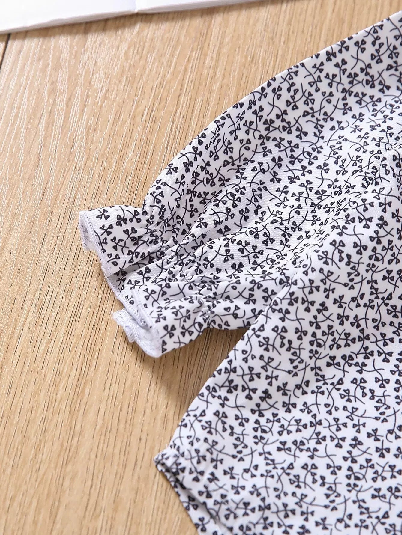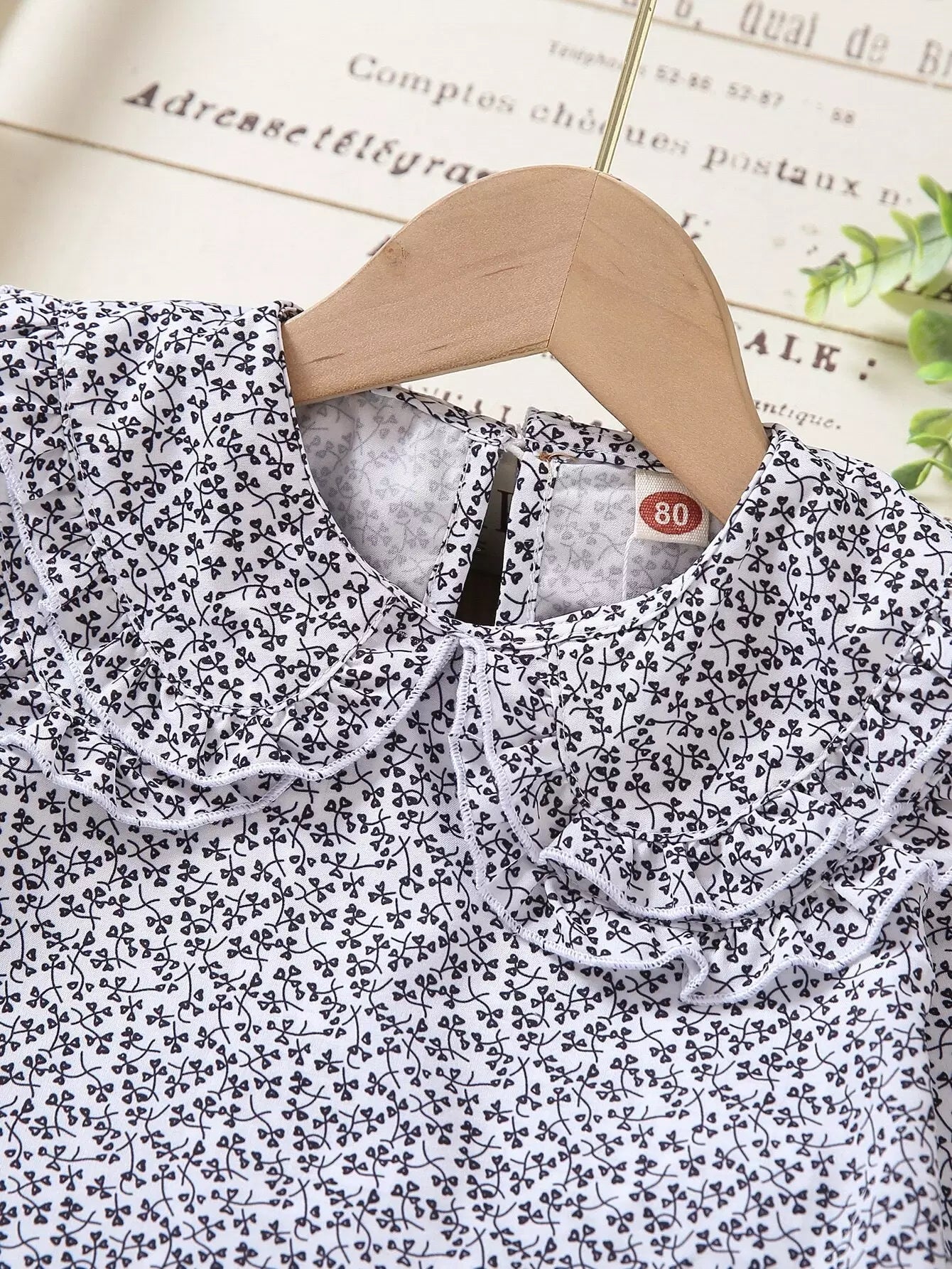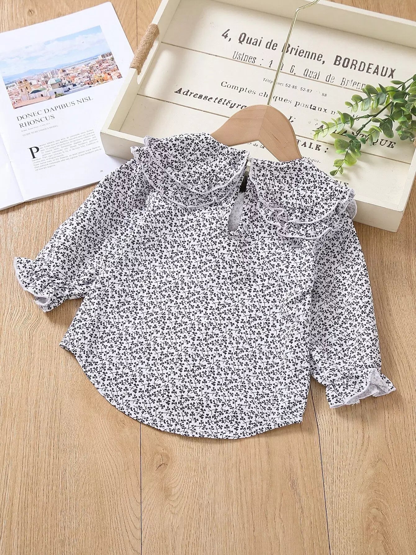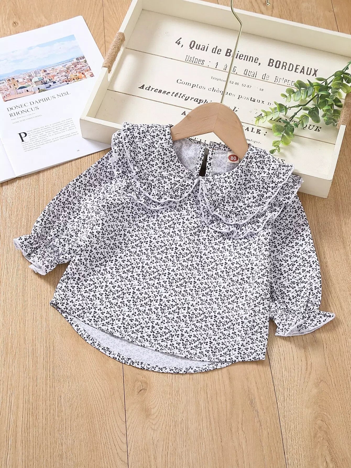 الأطفال - بلوزة بياقة بيتر بان مزخرفة بالزهور للفتيات الصغيرات
