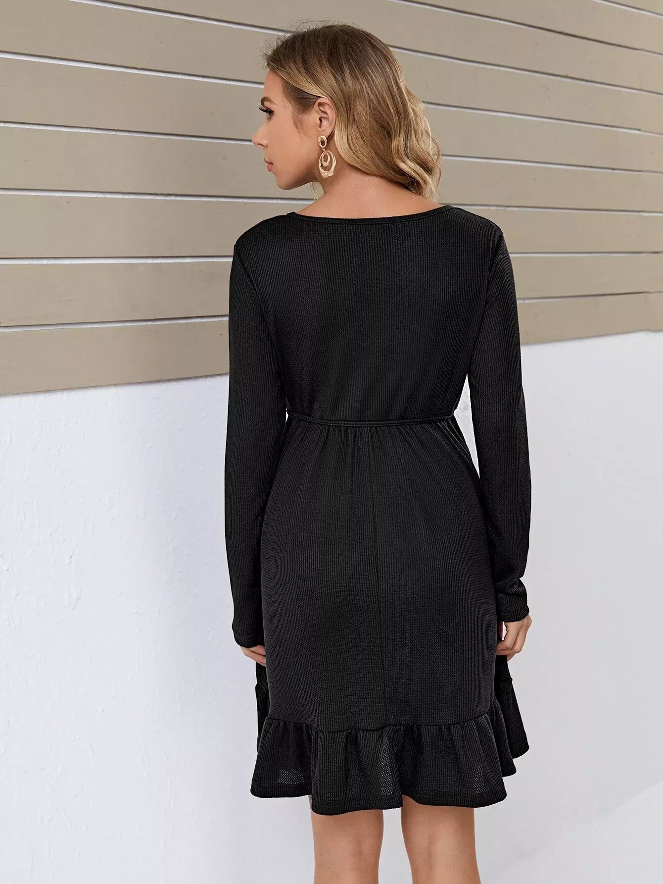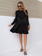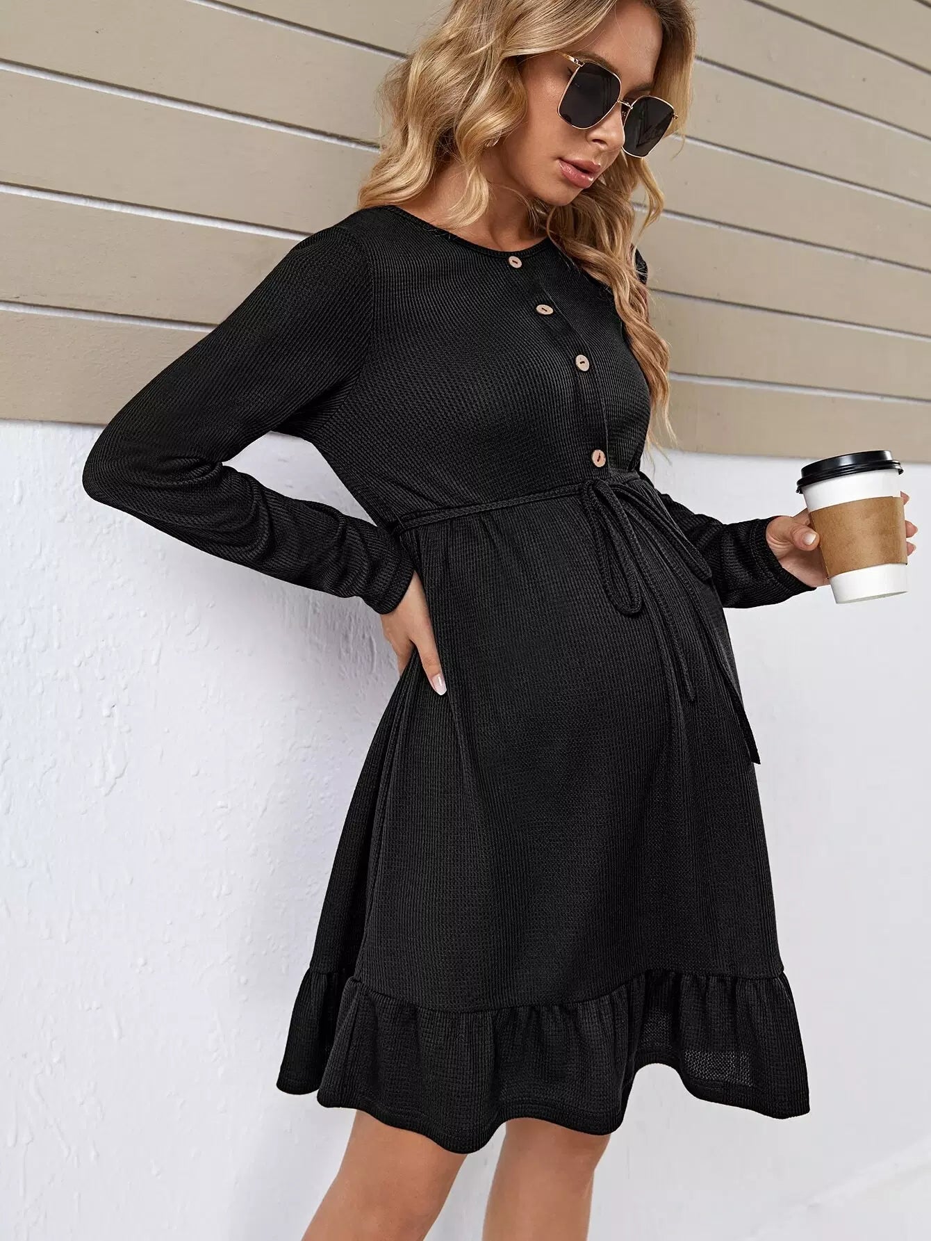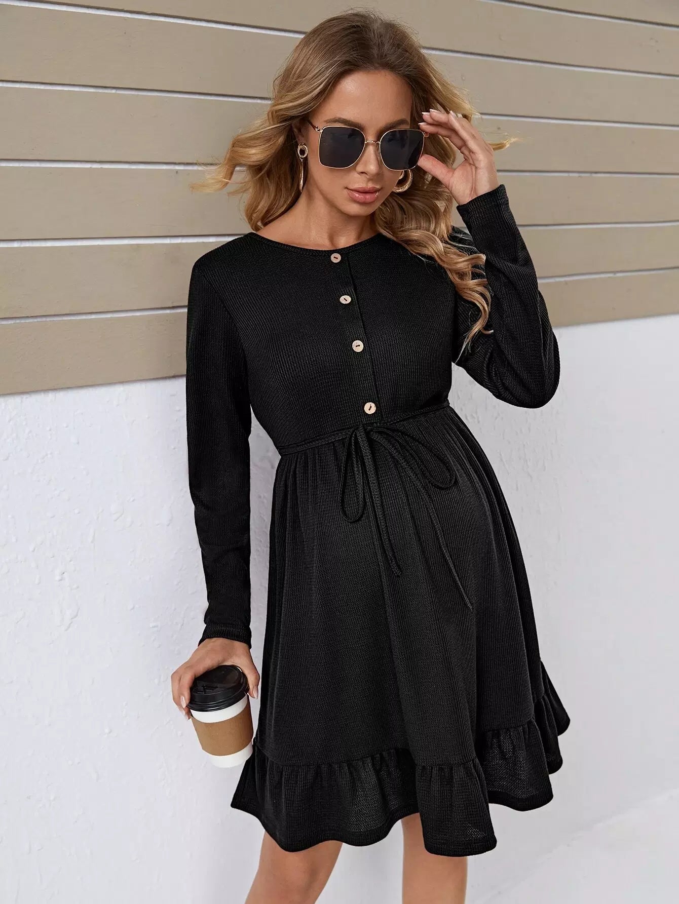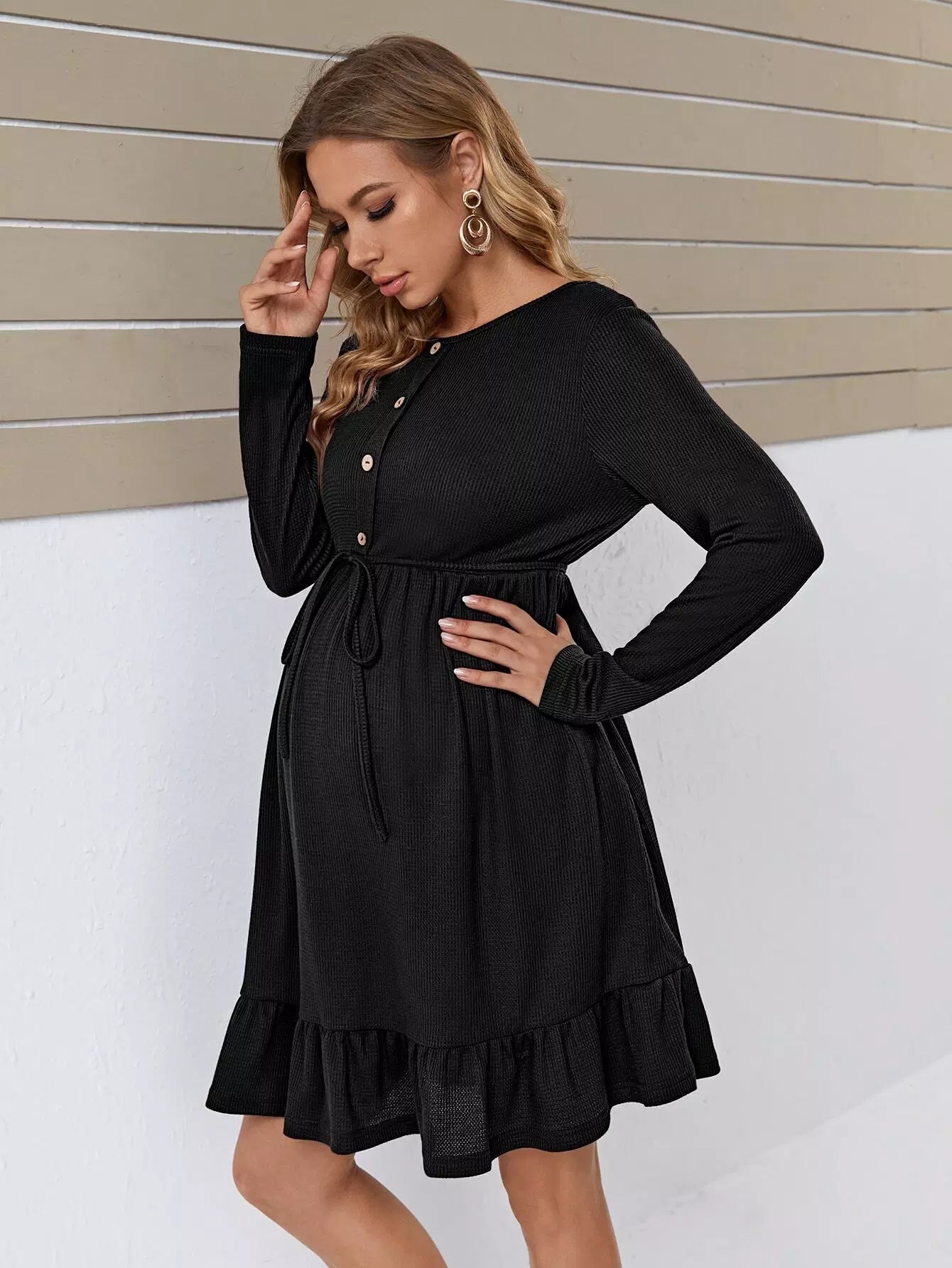فستان حمل بأزرار وحافة مكشكشة بدون حزام