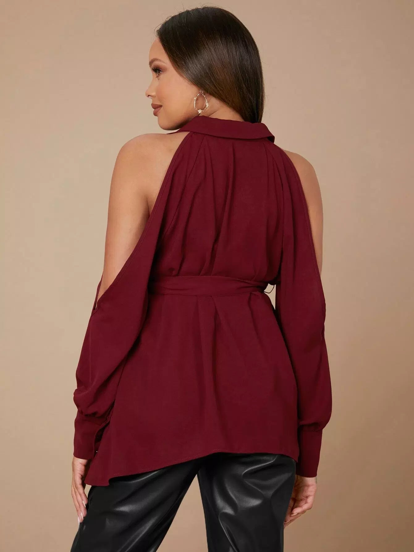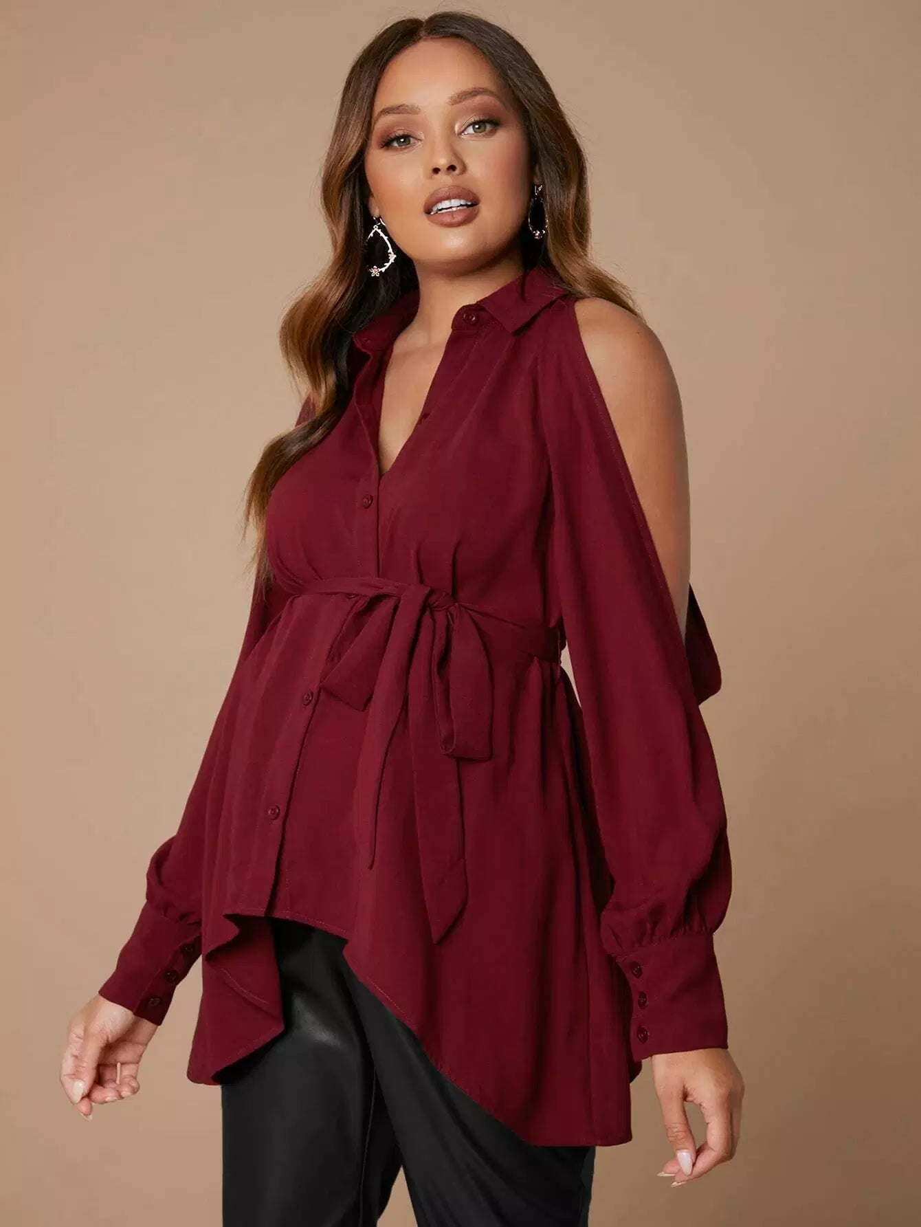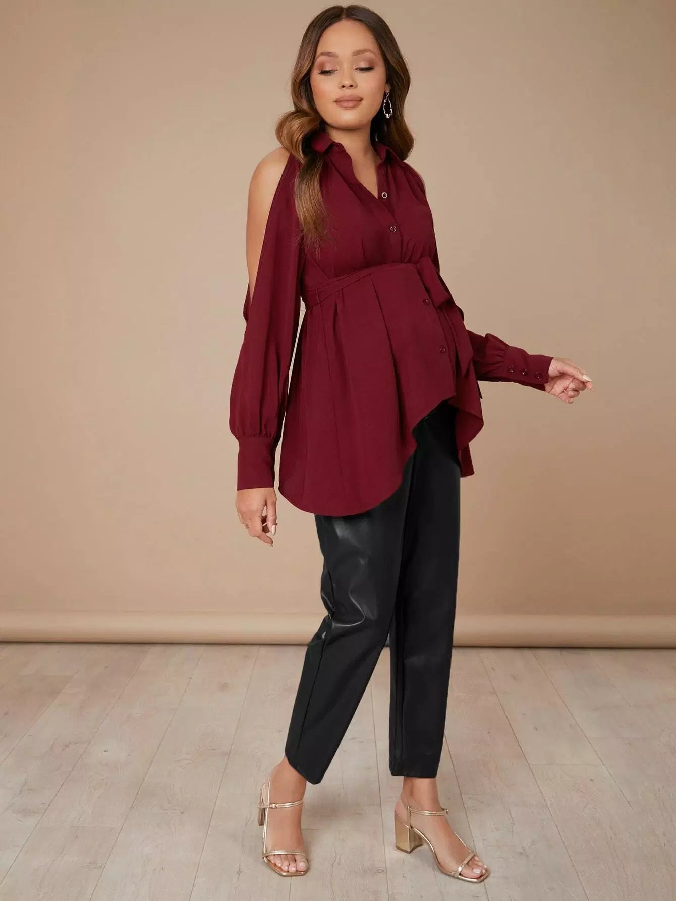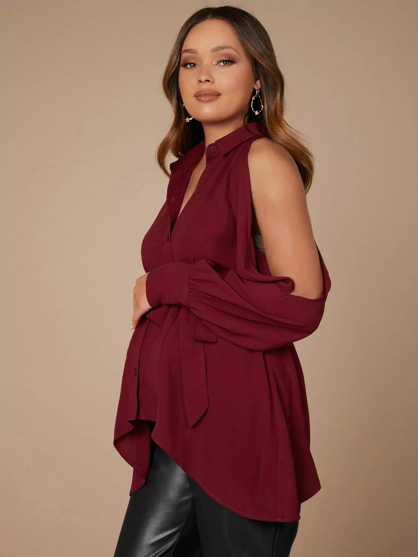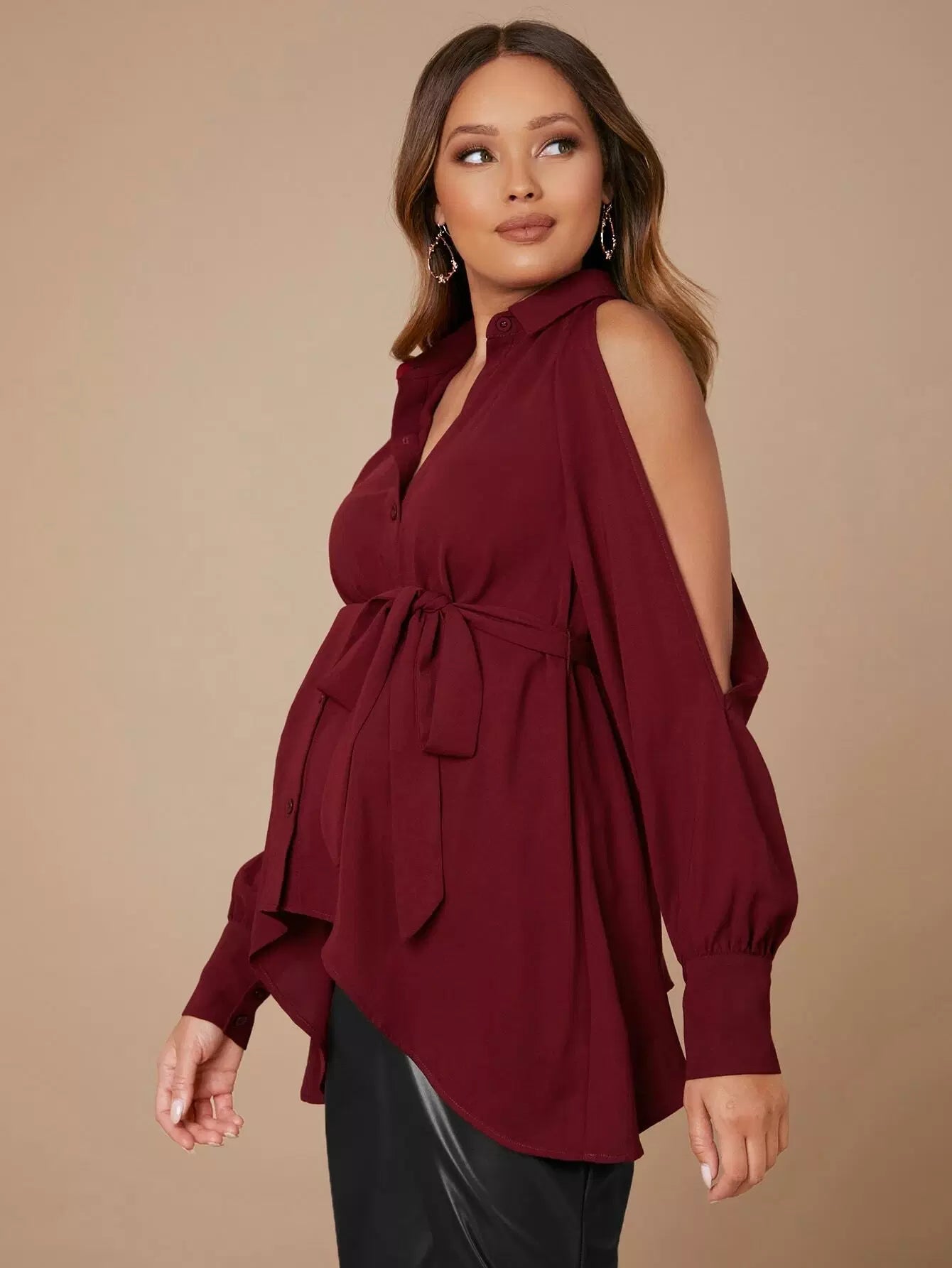 بلوزة الأمومة ذات الكتف البارد بدون حزام