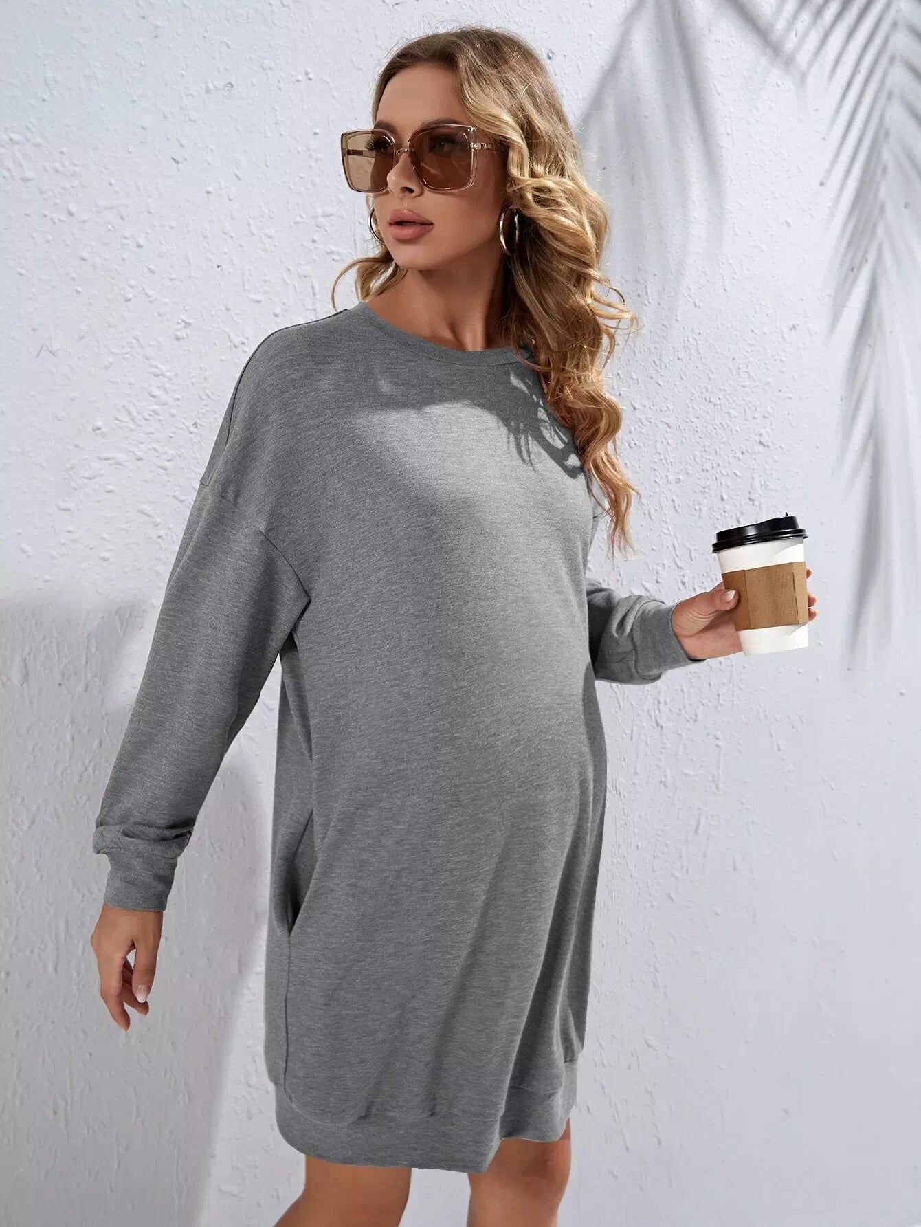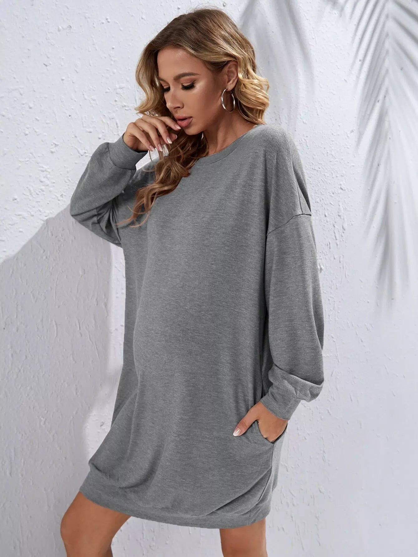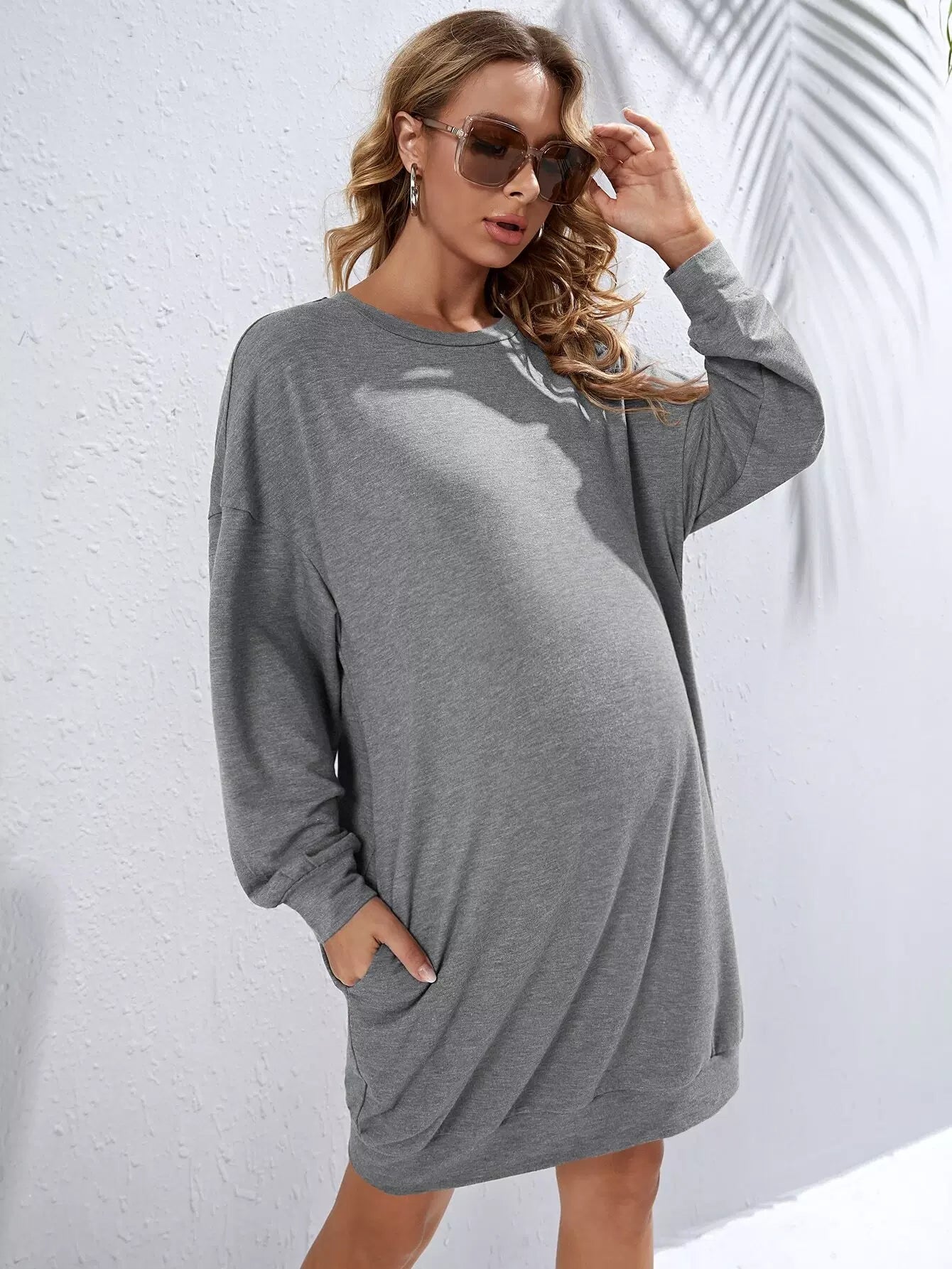 فستان سويت شيرت بجيب مخفي منسدل على الكتف للحوامل