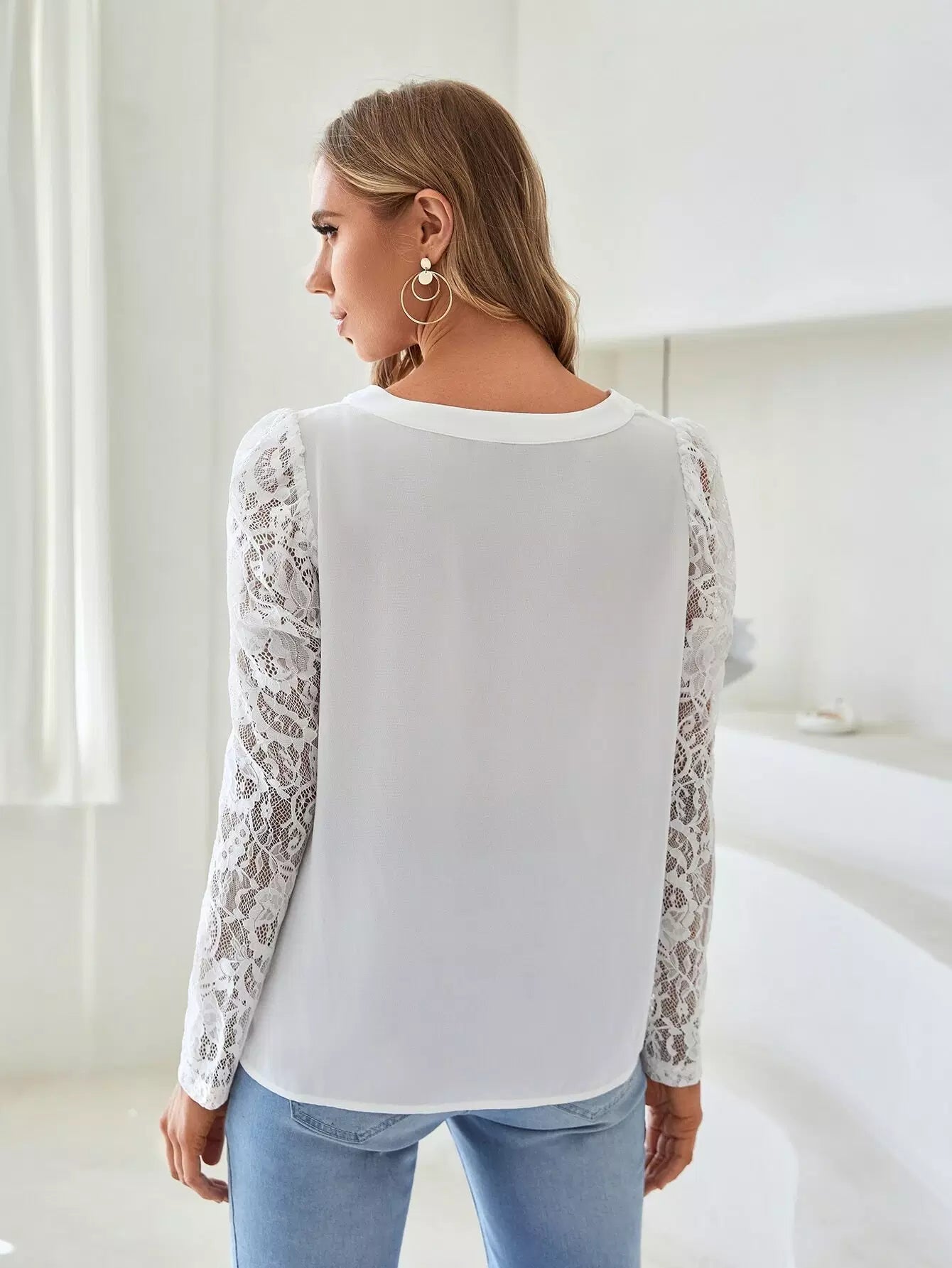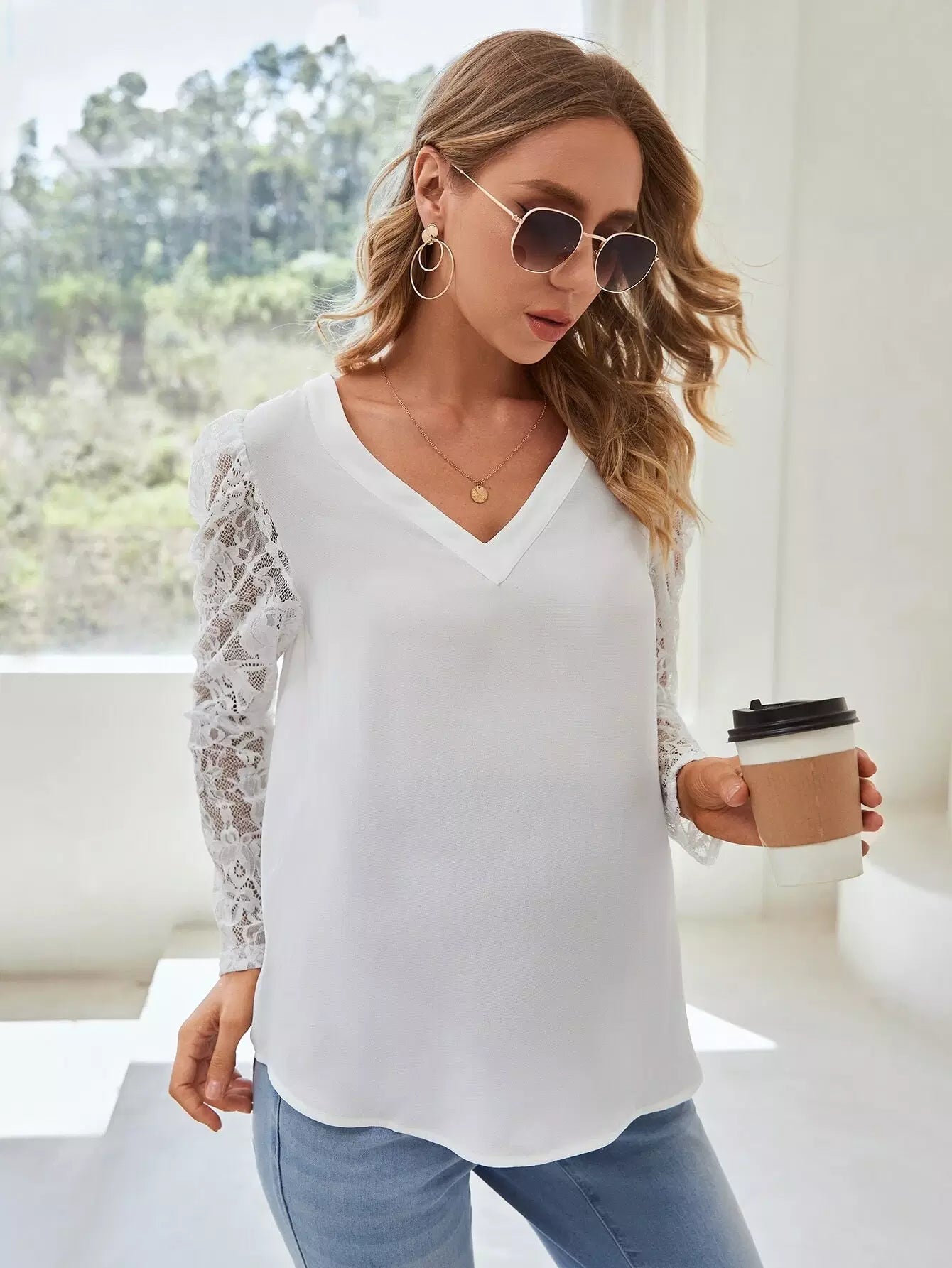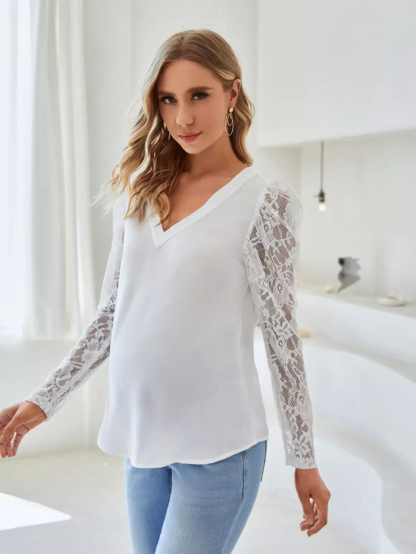 بلوزة بياقة على شكل V برقبة على شكل دانتيل للحوامل