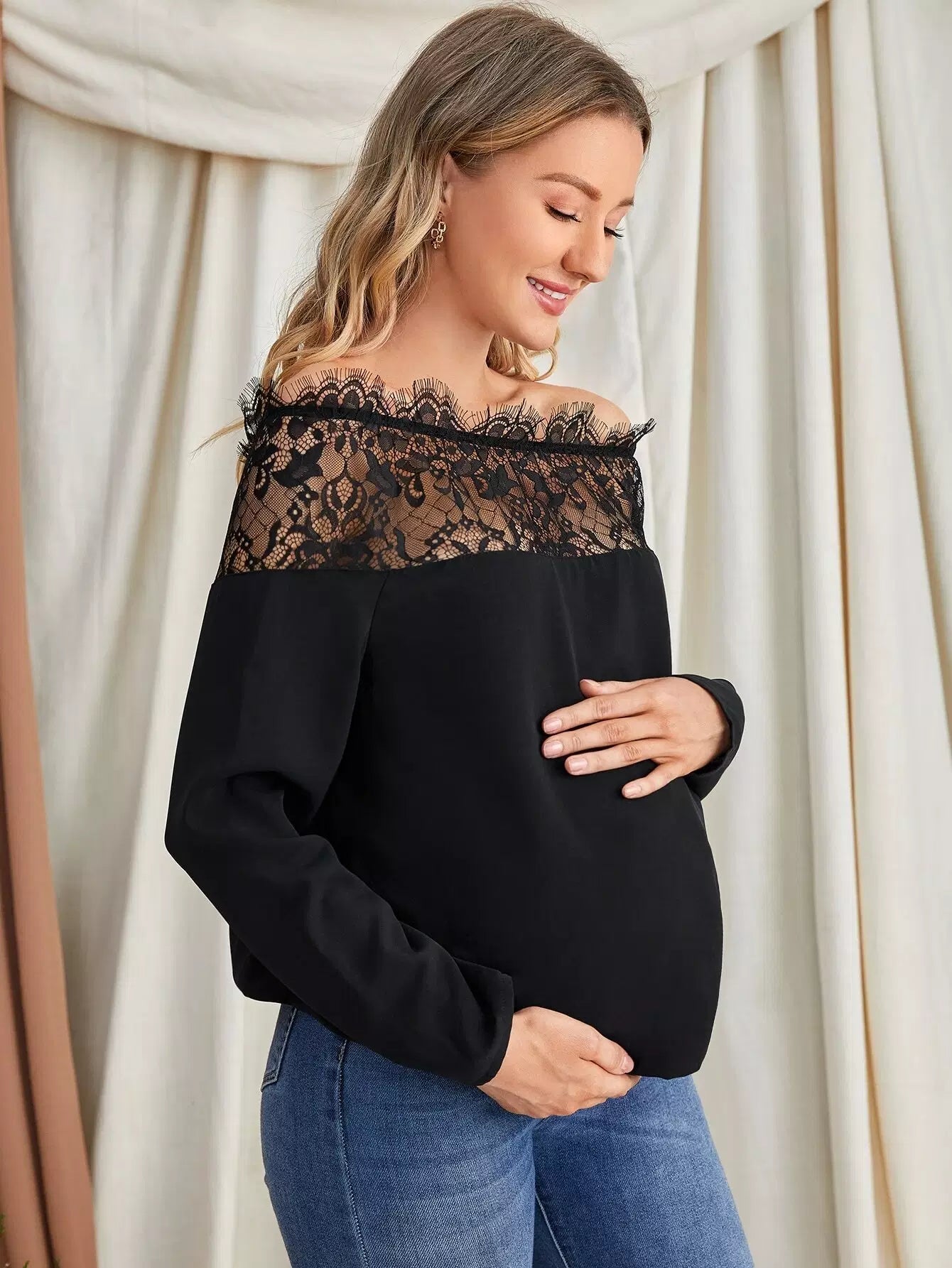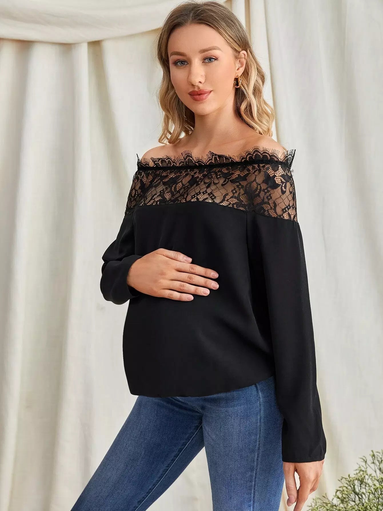 بلوزة بدون أكتاف بتفاصيل دانتيل للحوامل