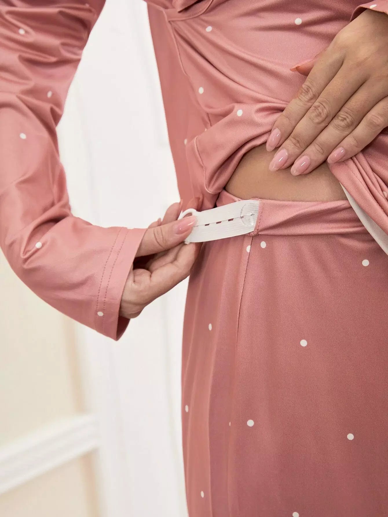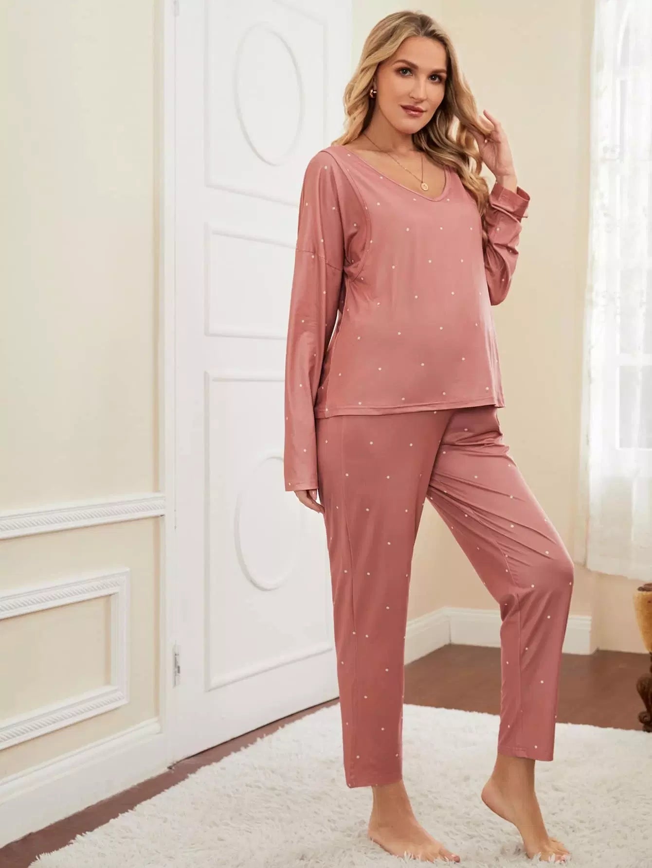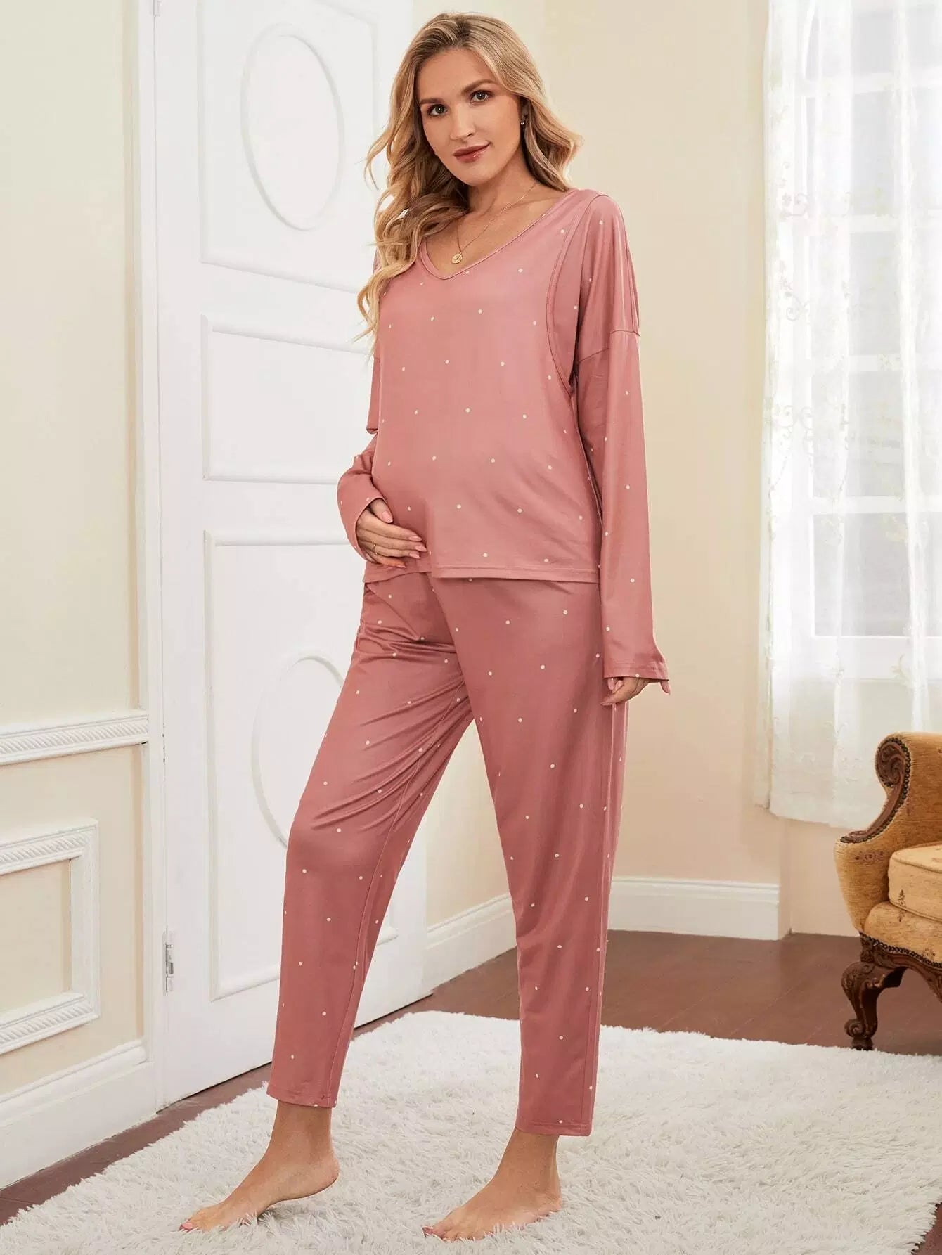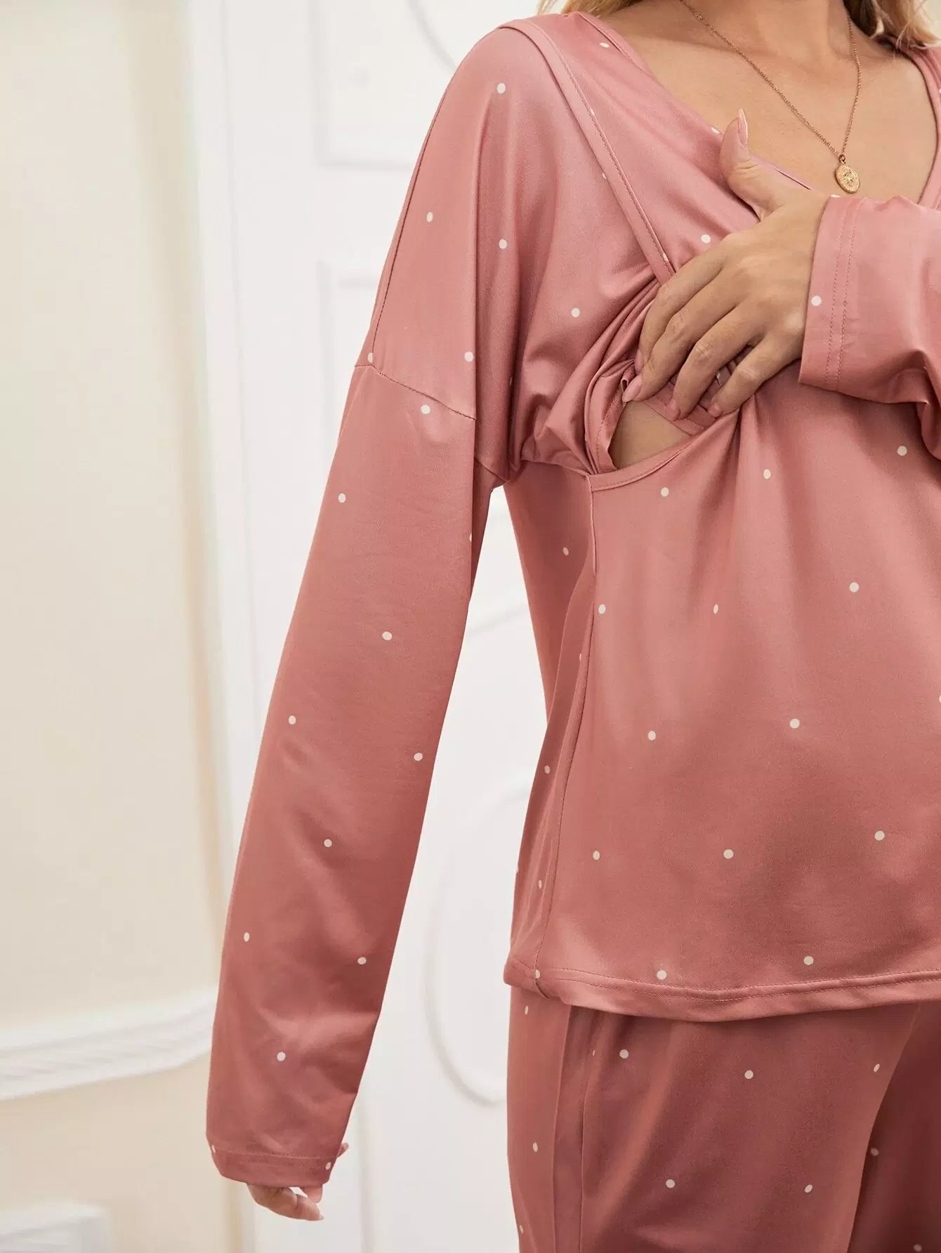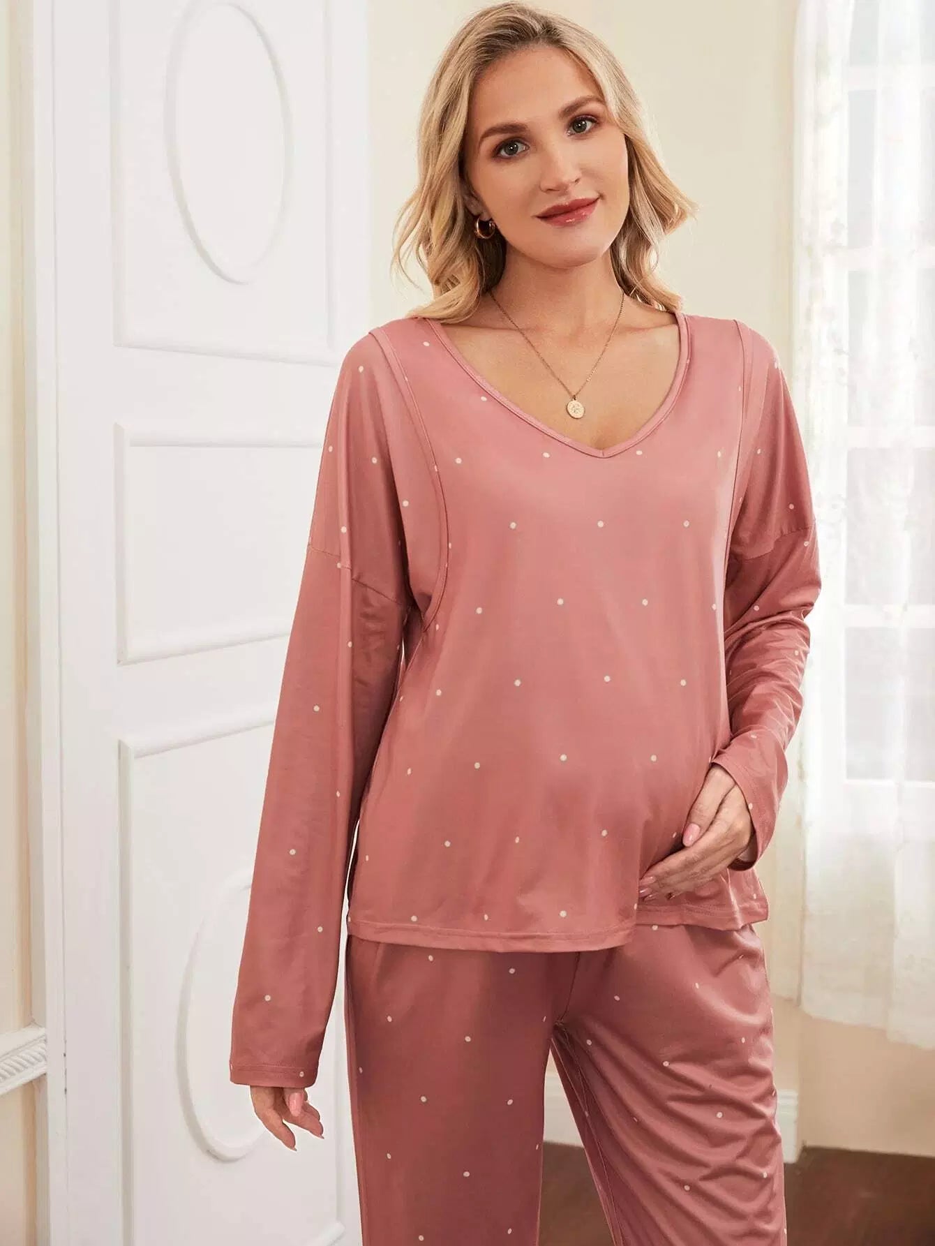 طقم تي شيرت وبنطلون للرضاعة منسدل الكتفين مطبوع عليه طبعة بولكا دوت للحمل