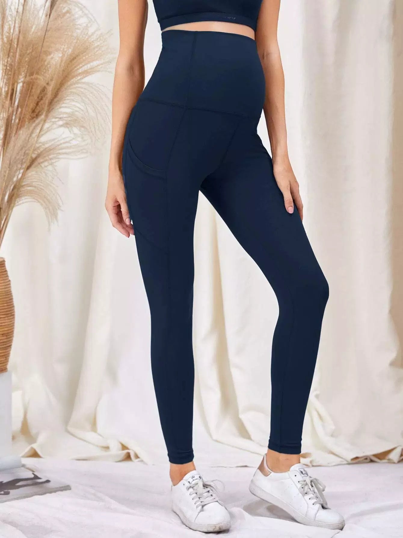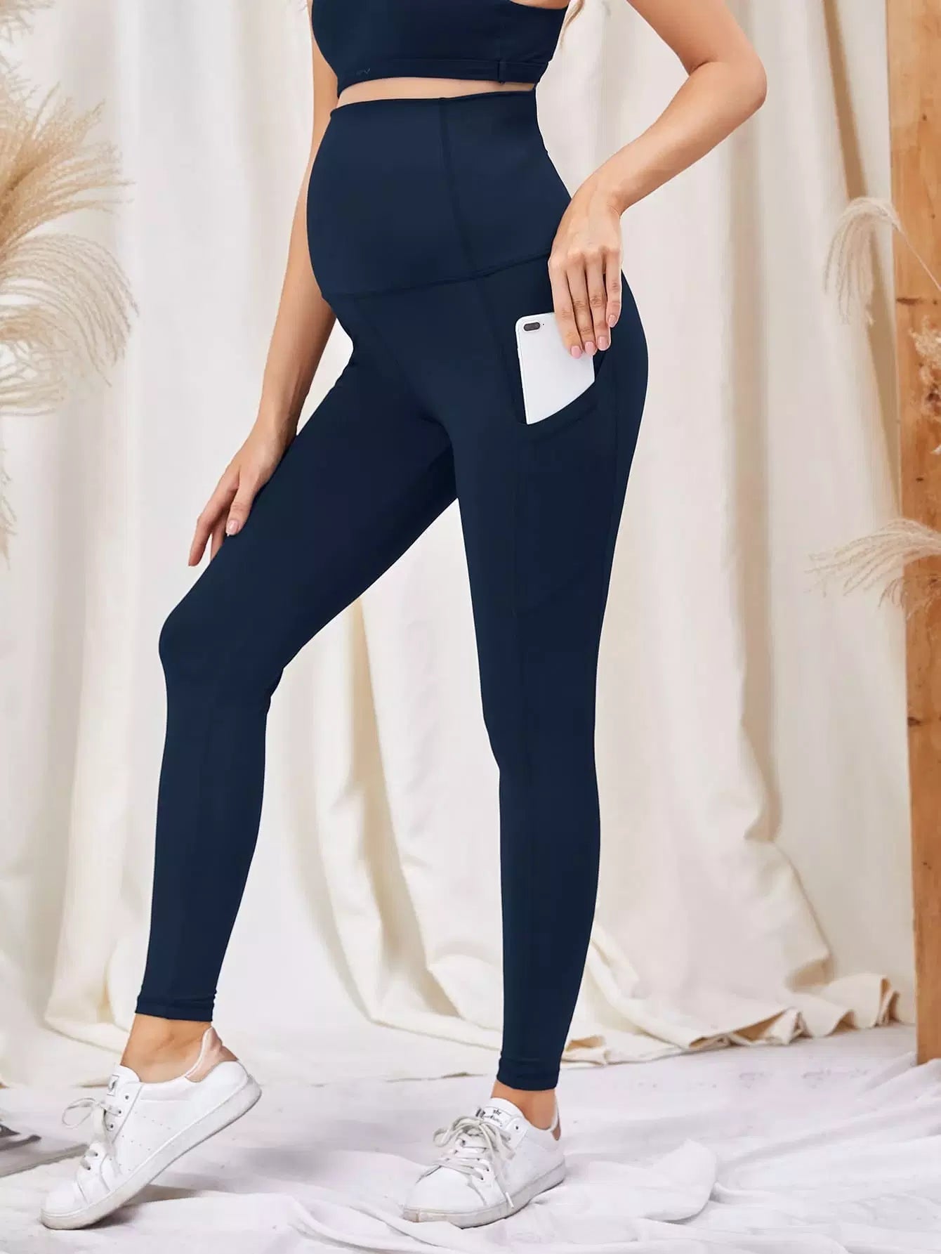 بنطال ضيق رياضي سادة للحوامل بجيب للهاتف