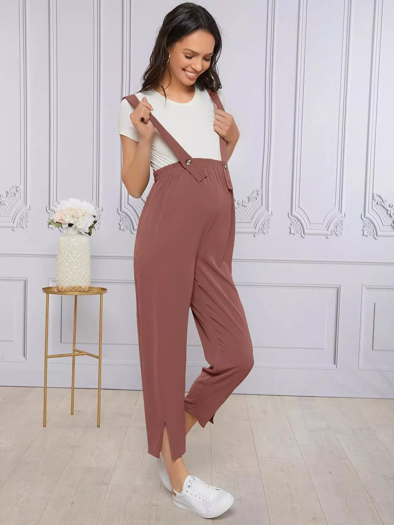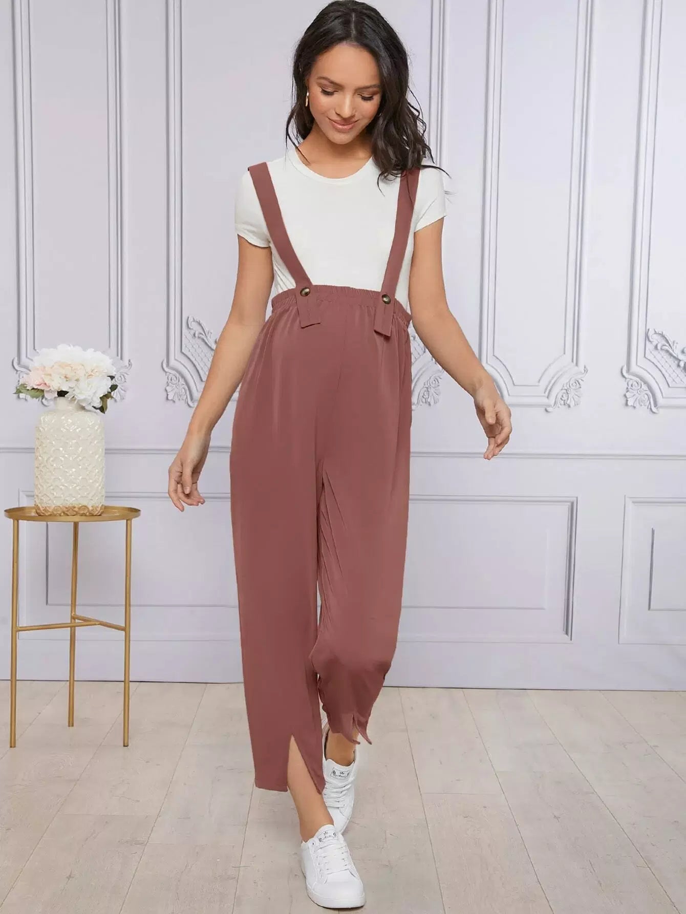 بنطلون بحمالات بحافة مشقوقة للحوامل