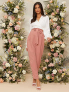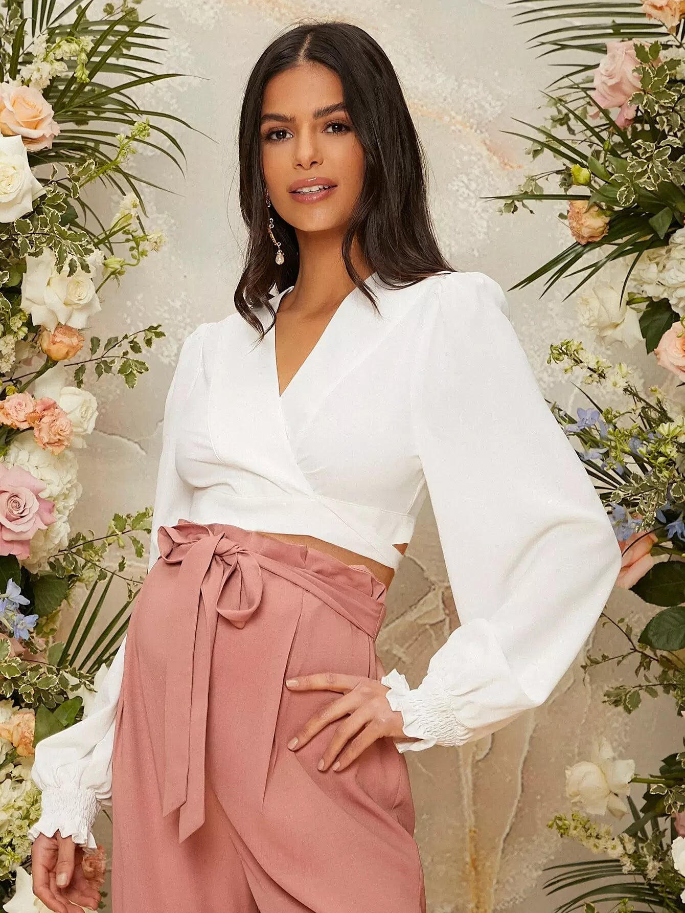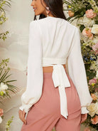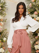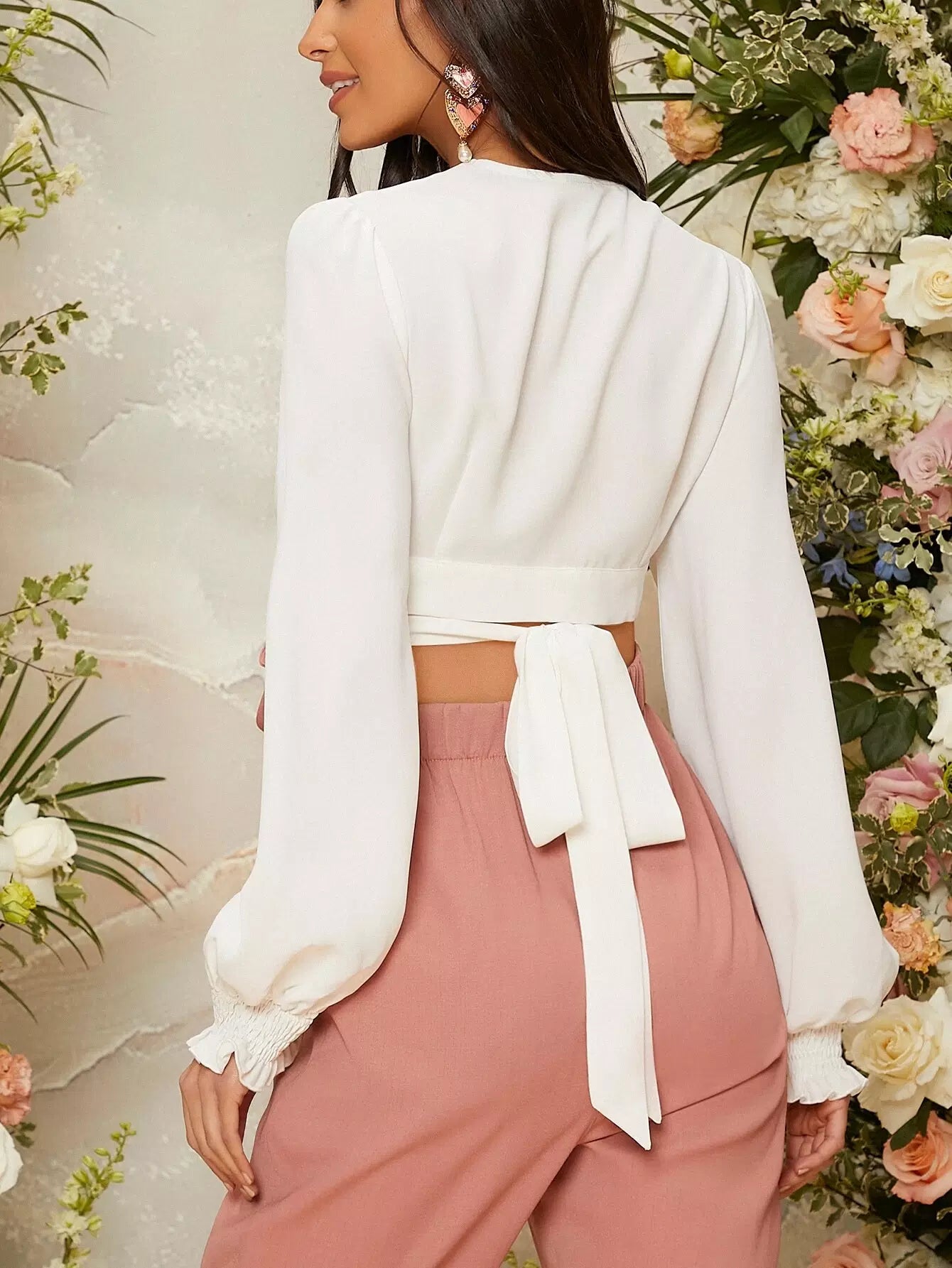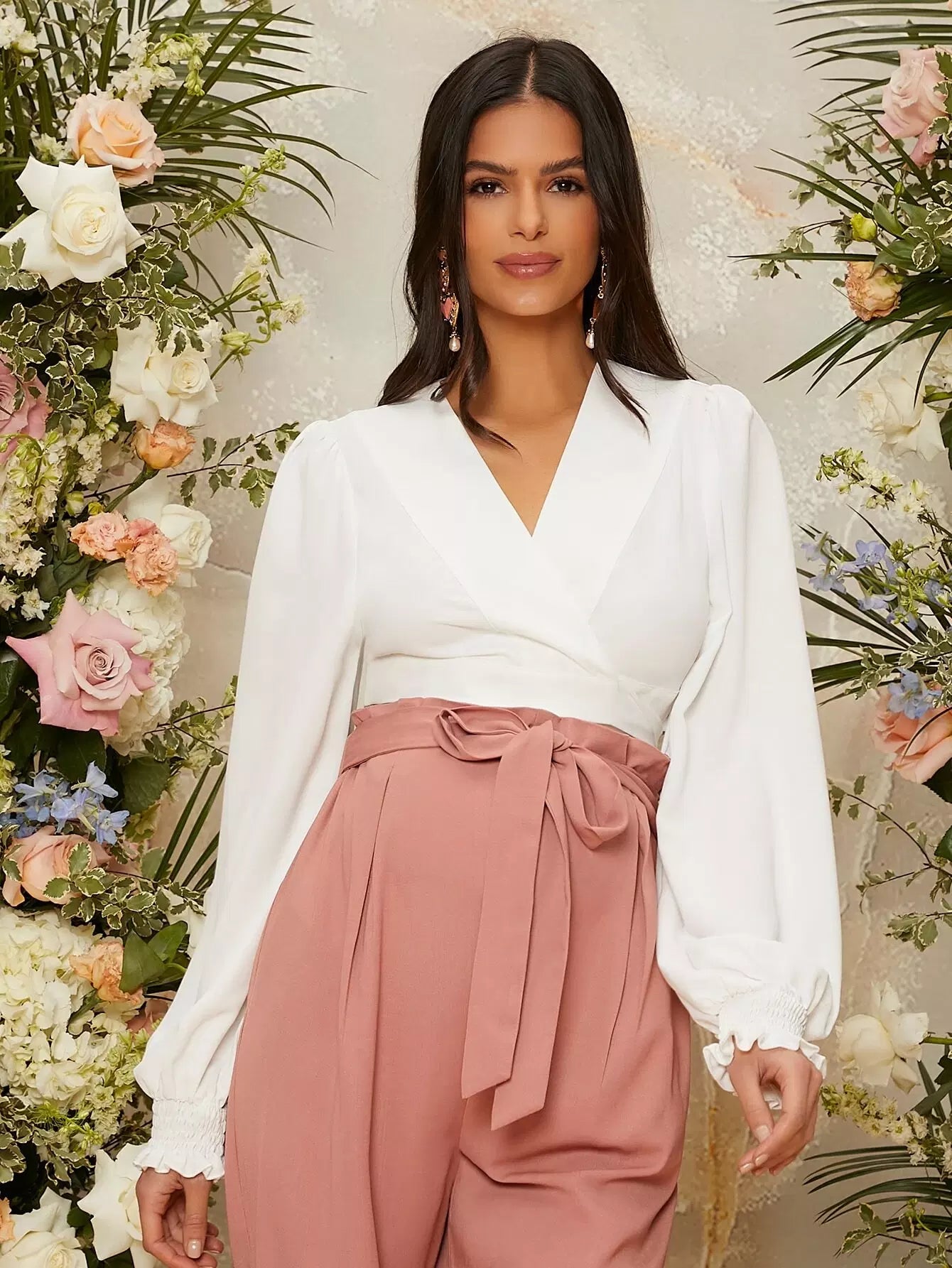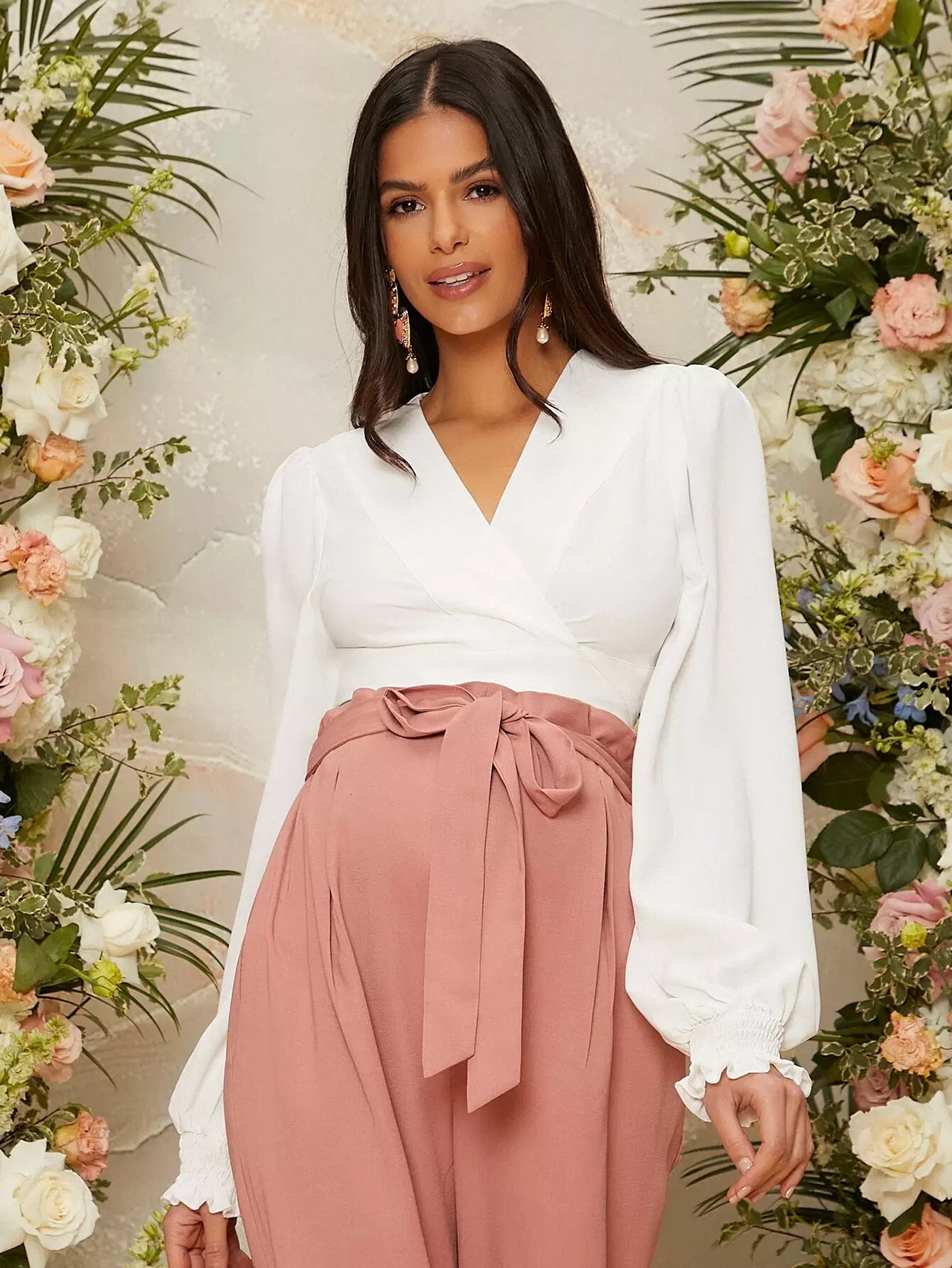 بلوزة بأكمام أسقفية بياقة برباط من الخلف وربطة عنق للحوامل