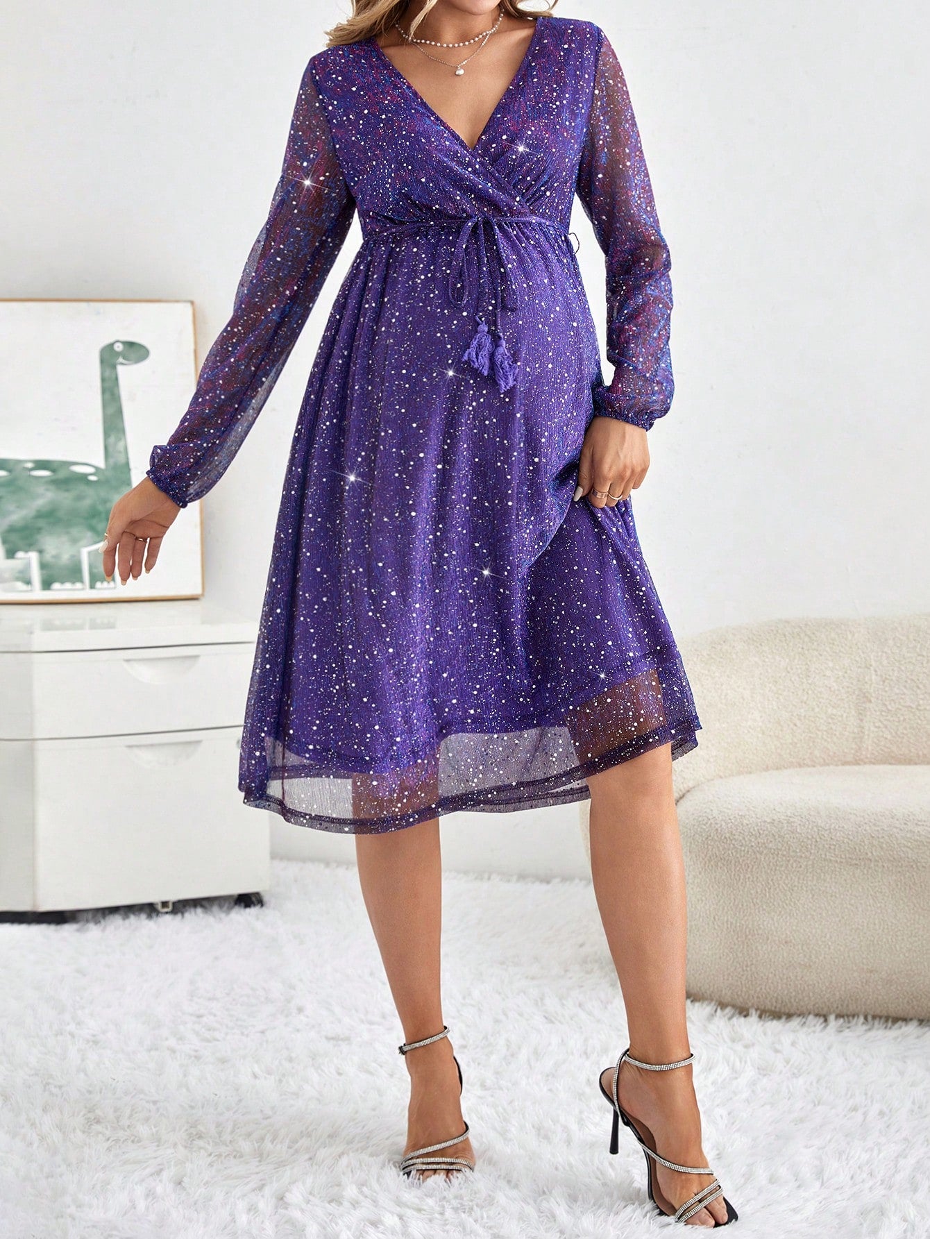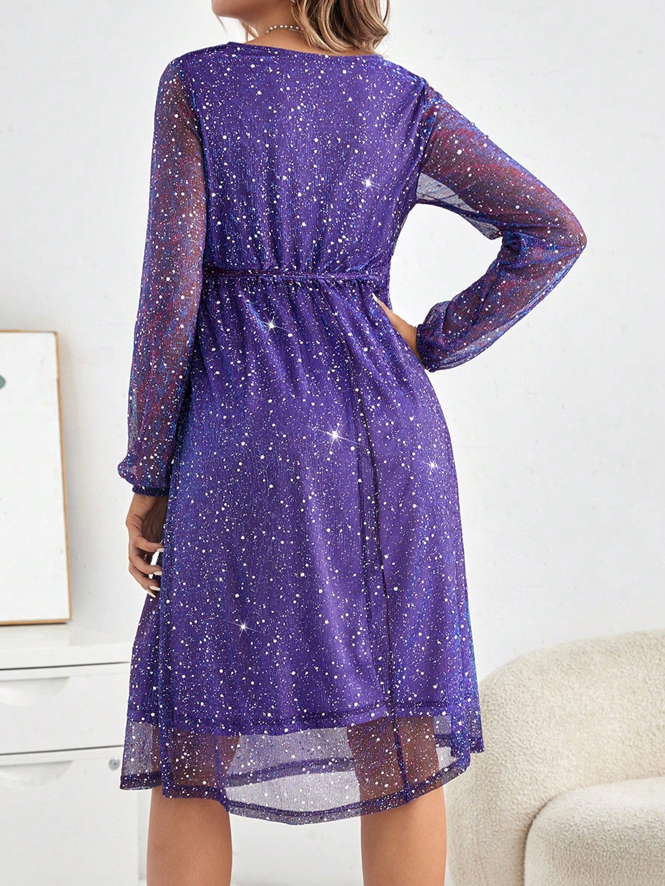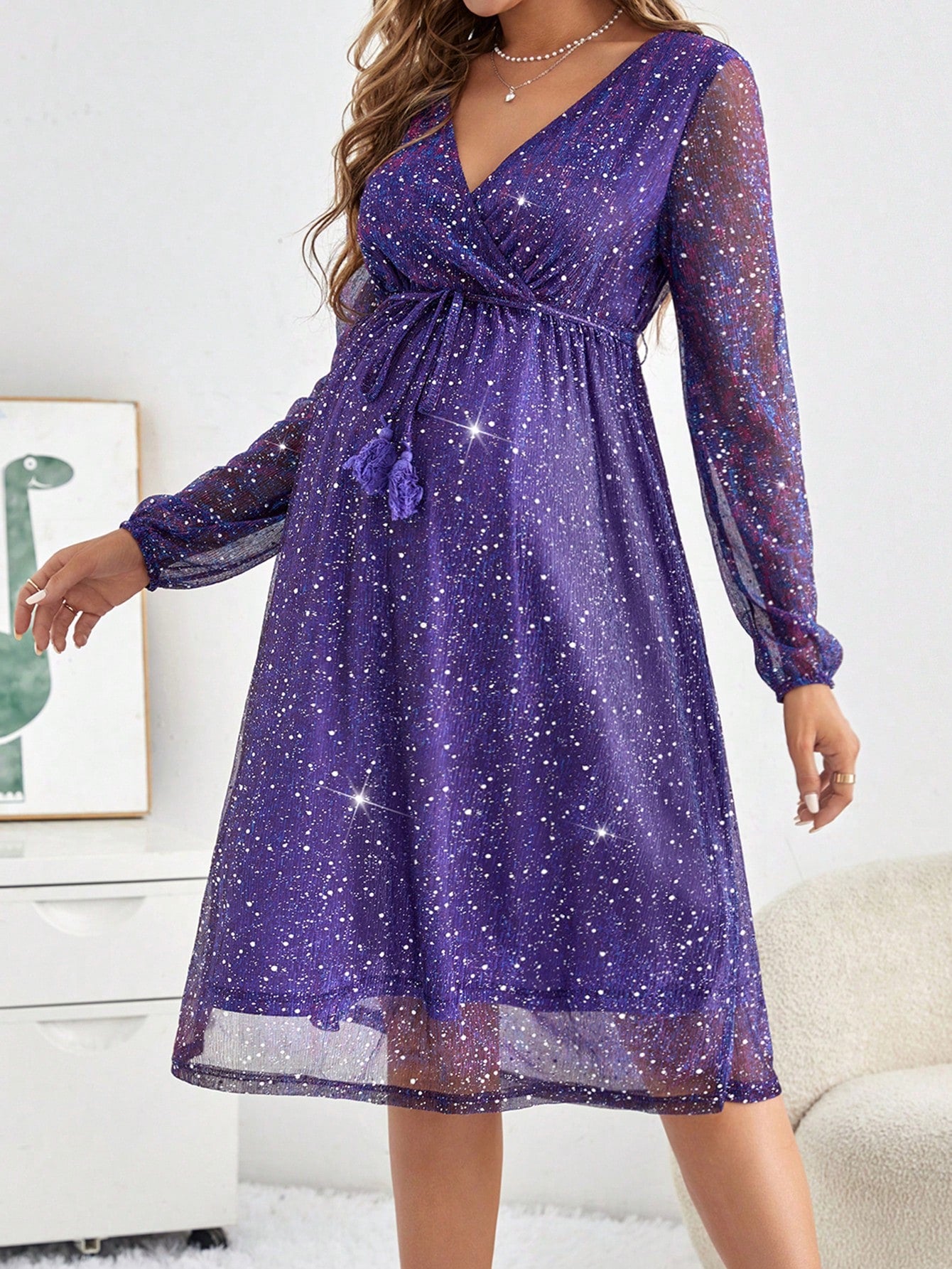 فستان حمل برباط على الخصر وفتحة رقبة على شكل حرف V