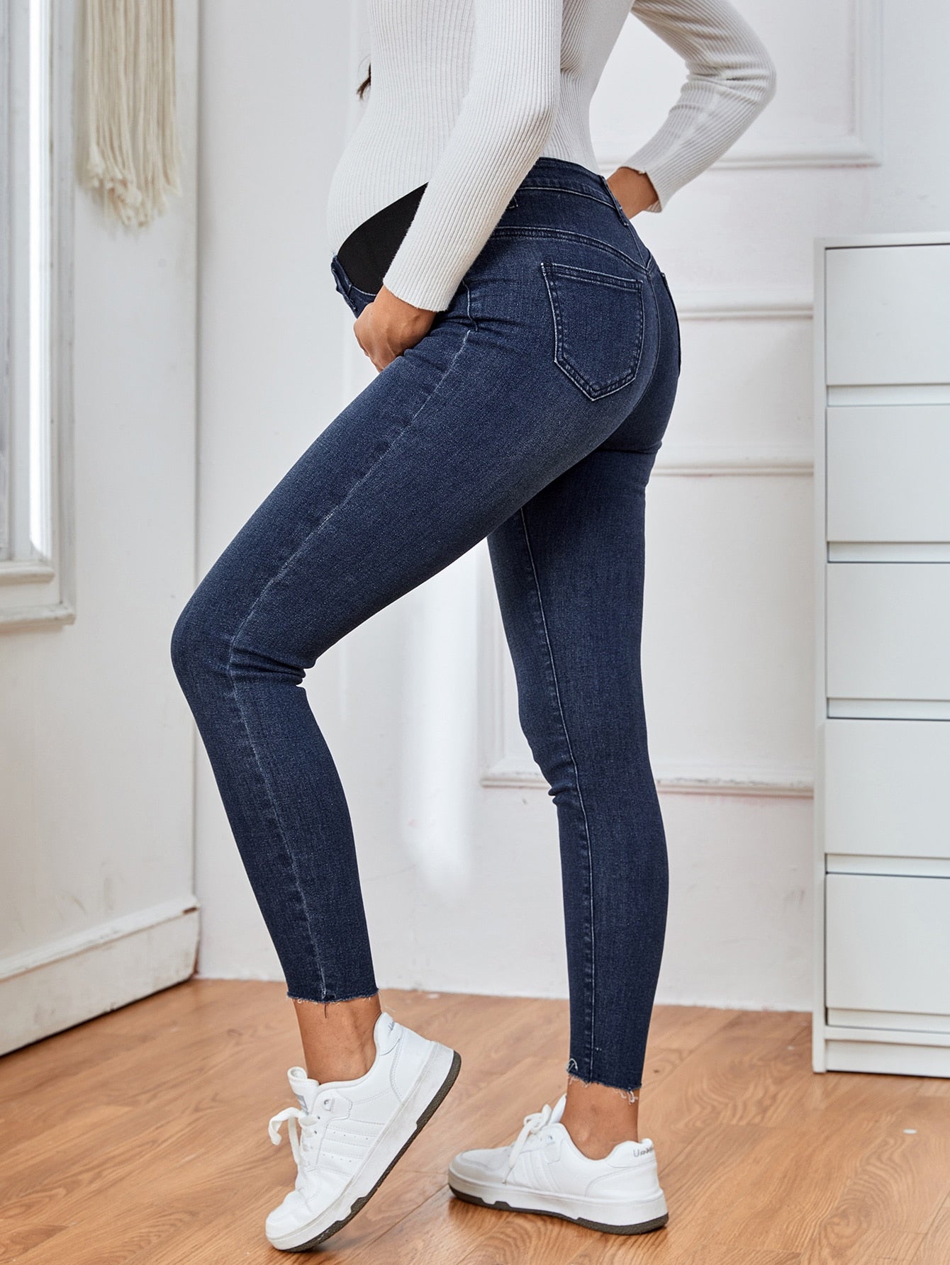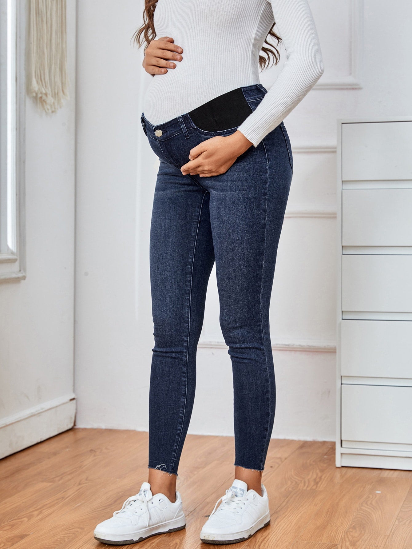Maternity Wideband Waist Frayed Hem Skinny Jeans