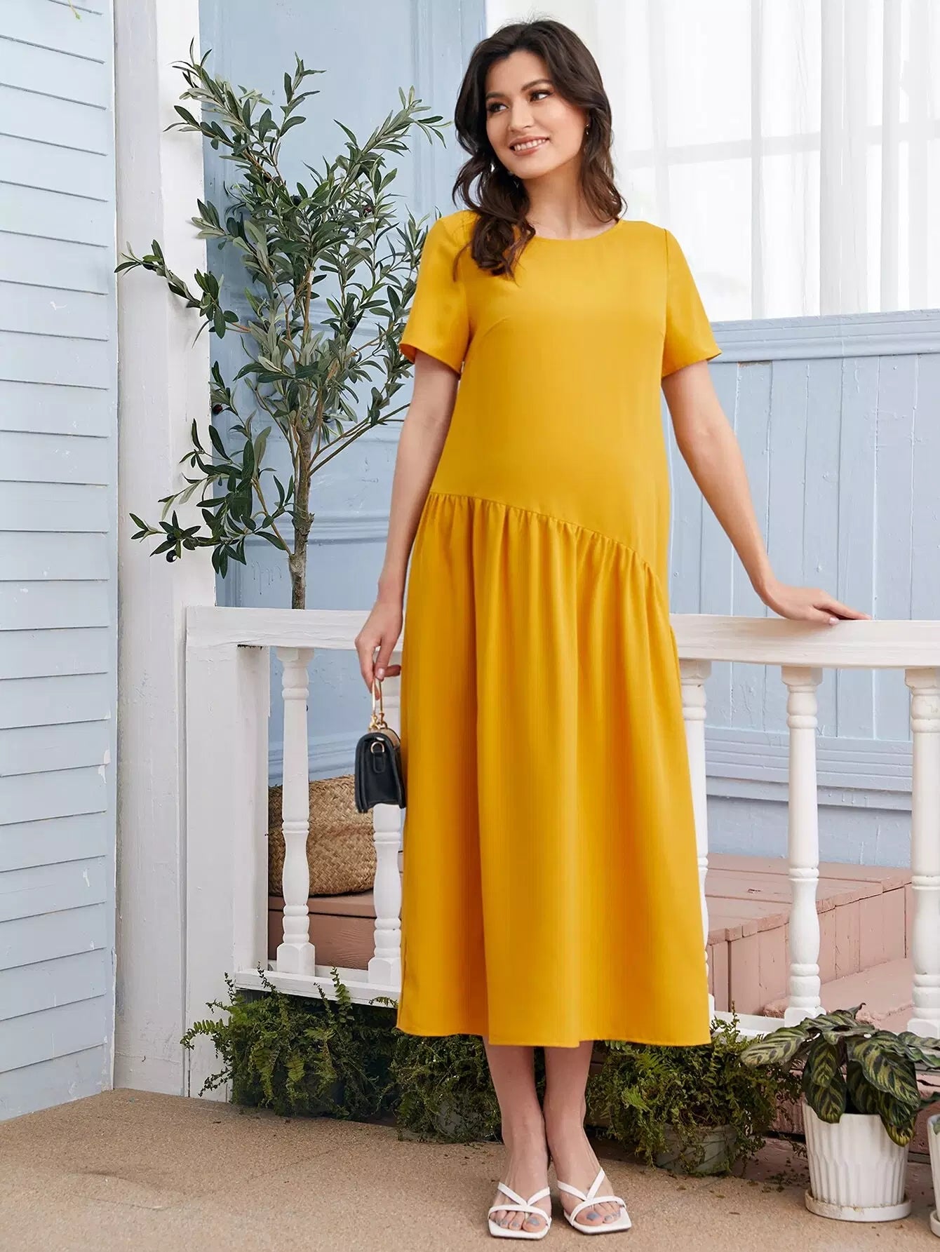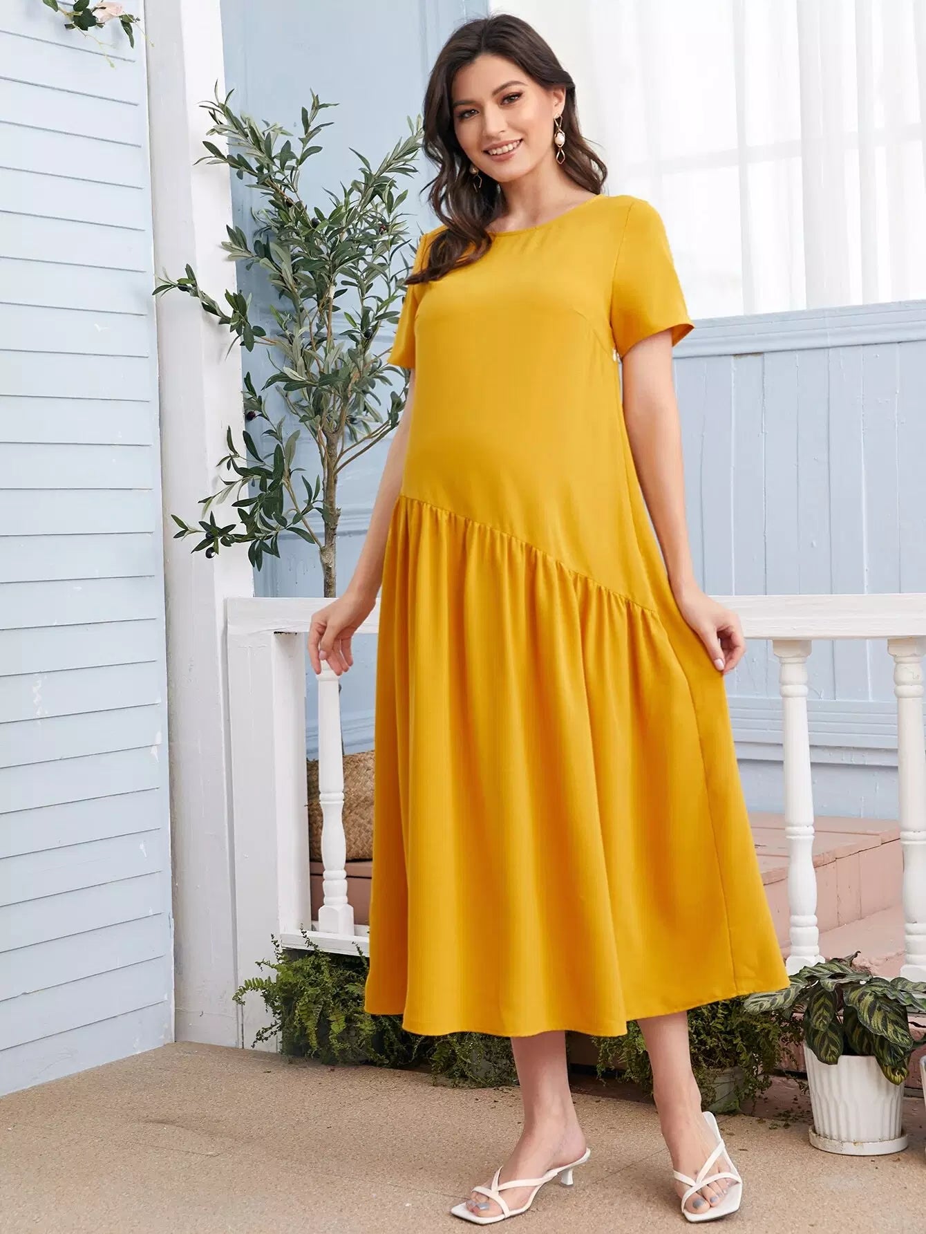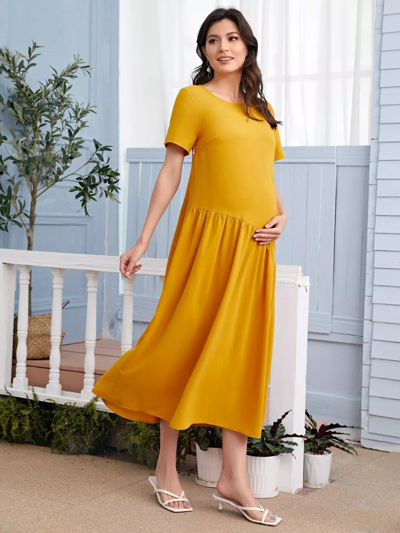 فستان حمل بسحاب جانبي للرضاعة الطبيعية سادة