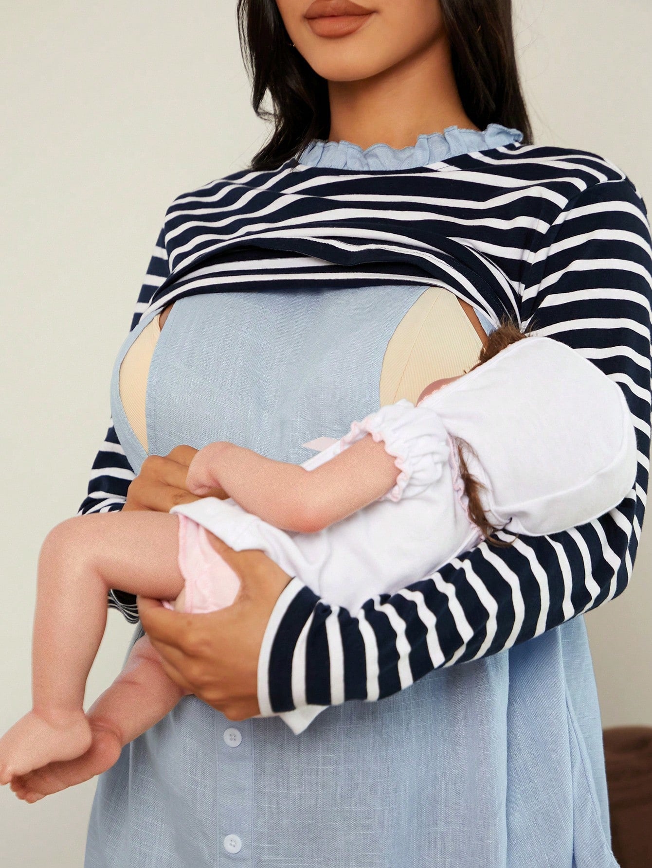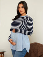MaterniWear Maternity Striped Print 2 In 1 Nursing Top With Long Sleeve